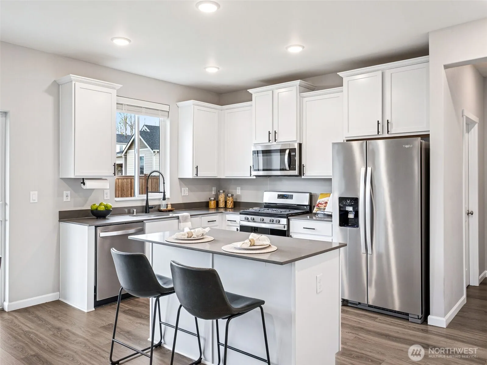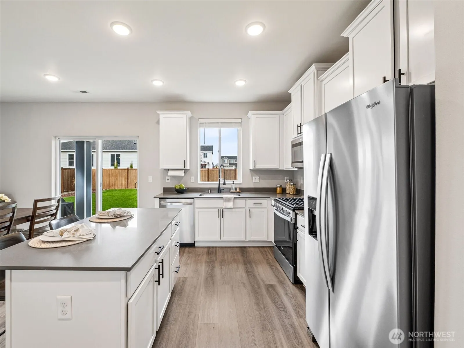 NEW PRICE!! Don’t miss this sought-after Home in the Prairie Creek Farms community! Built in 2022, this stunning home has plenty of room to enjoy! Luxury vinyl plank flooring spans the main floor. The kitchen has stainless-steel Whirlpool® kitchen appliances, wood cabinets and quartz countertops overlooking the dining & living room. The den offers a quiet space to work from home. Upstairs, two secondary bedrooms each include a walk-in closet, plus a generously sized bonus room adds even more space for entertaining, AND a conveniently located laundry room. The owner’s retreat has a luxurious soaker tub, walk-in shower & large walk-in closet. Outside, the fully fenced, landscaped backyard includes a covered patio, perfect for outdoor living.