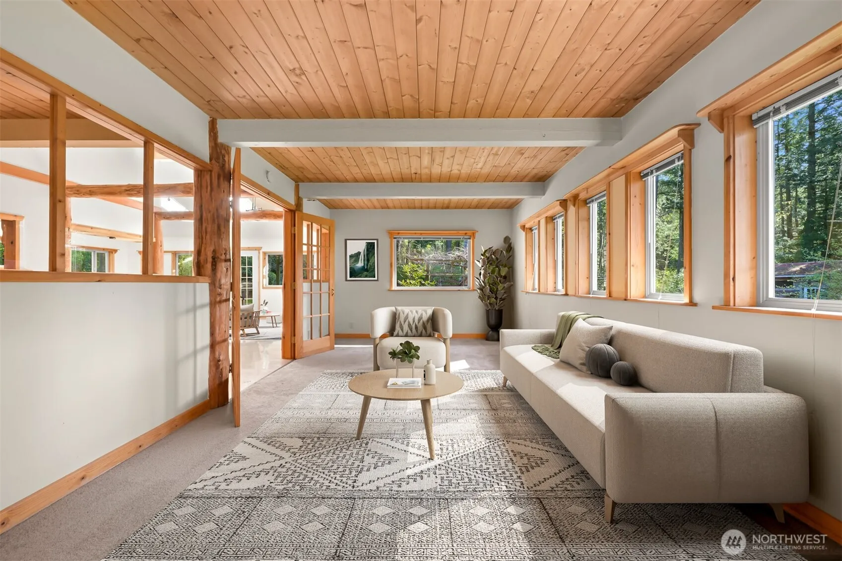 Down a tranquil country road find this recently updated home with character and charm, opening to stunning views of Hales Passage and Mt. Baker. Situated on a level 1.21 acres, find an orchard, fenced raised garden beds, and a chicken coop, if desired a sustainable and self-sufficient lifestyle. The addition of a separate apartment suite provides privacy and convenience for guests or potential rental income. Flexible living spaces within the light-filled interior with walls of windows and skylights. This versatile property caters to various lifestyle needs and multi-generational living. Step outside the dining area to a large patio with a Kiwi arbor for entertaining al fresco. Backup generator. Large garage, great storage and workshop area.