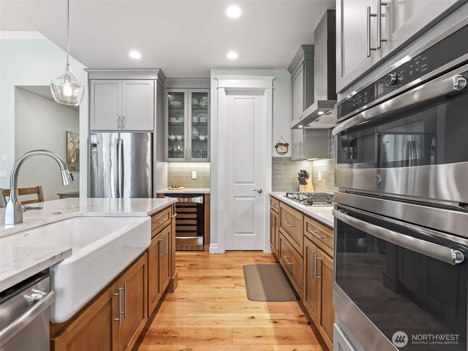 Seven Wells neighborhood! Located at the end of a quiet dead-end street, this property backs to greenspace. 3 spacious bedrooms and a dedicated office, the home offers a thoughtful layout with the primary suite and a second bedroom on the main level. Engineered HW floors, solid core doors, plantation shutters, and soaring vaulted ceilings in the office. The great room showcases a floor-to-ceiling brick fireplace, custom built-ins, and a sliding door that opens to the covered patio and fully fenced backyard with peaceful tree views. Additional highlights include a water softener, leaf guard gutters, and HOA-maintained front yard. With easy access to I-5 and close proximity to shopping, dining, and other amenities, this home truly has it all.