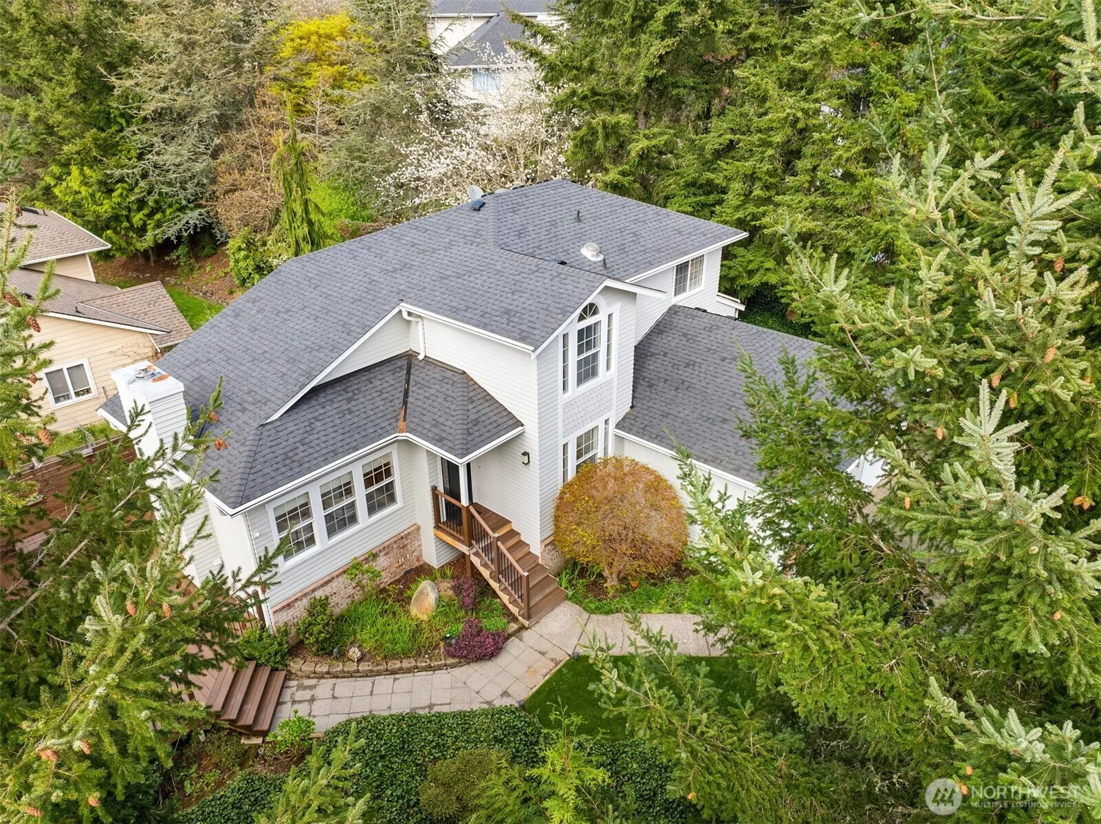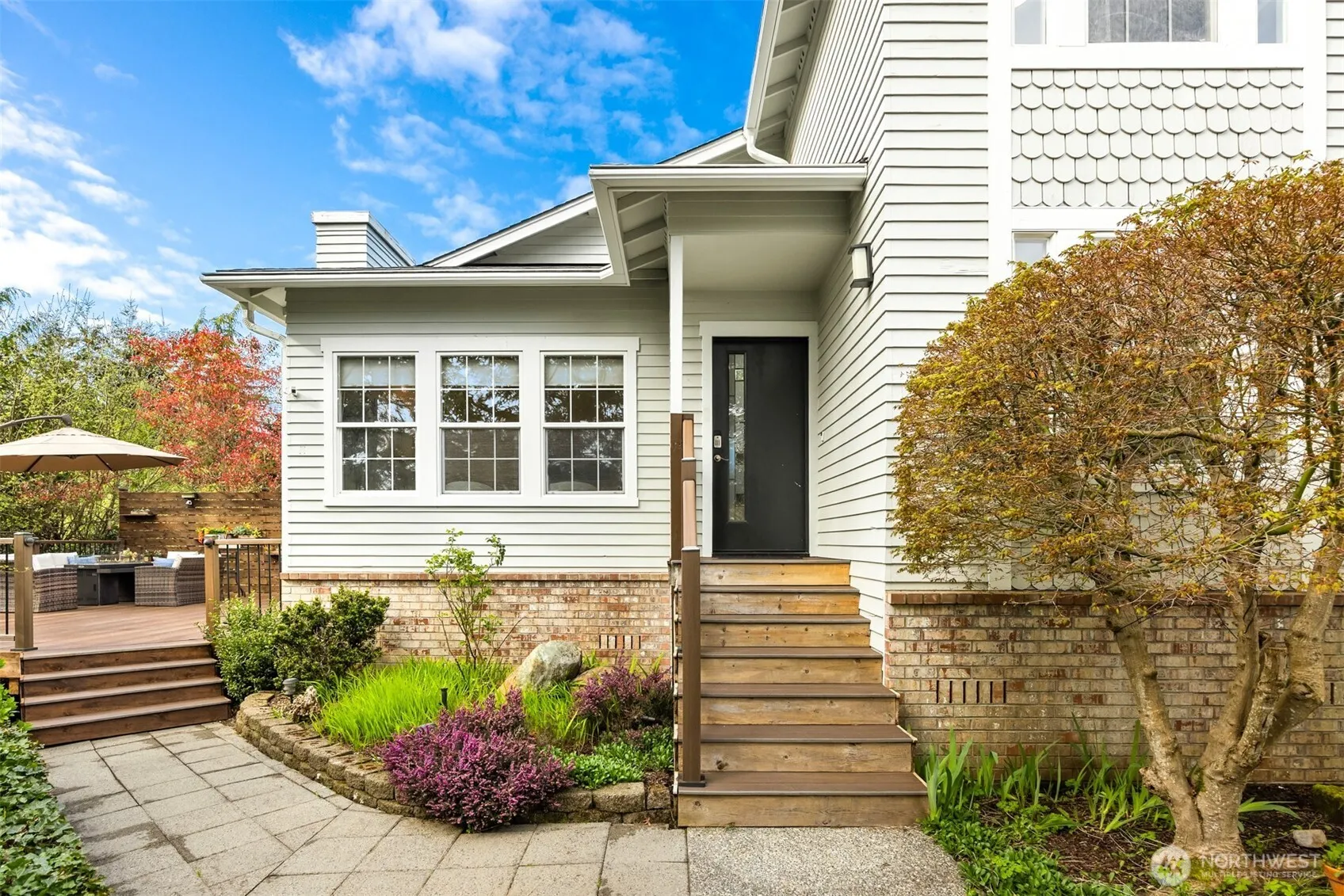 Ideally located on a sunny corner lot less than a mile from the Kingston ferry and close to schools, this move-in ready gem offers comfort, style, and convenience. Step into a bright, west-facing living room filled with natural light, complemented by hardwood and tile flooring throughout the main level and fresh interior paint. The remodeled kitchen features sleek stainless appliances, while the updated bathrooms include a stunning primary bath with radiant heated floors. Outside, relax or entertain on the expansive deck overlooking a private, serene setting. A newer roof and updated exterior paint add to the appeal of this charming and turnkey Kingston Hills beauty!