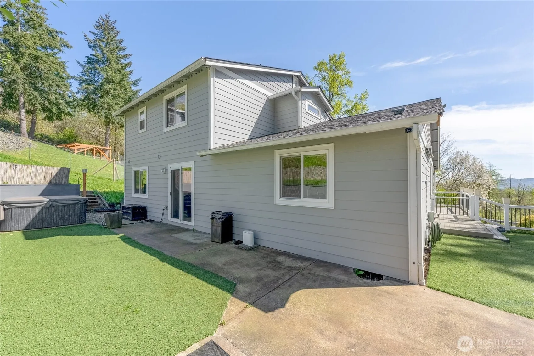 Perfectly maintained home with NEW roof & NEW heat pump! located in a country setting minutes from City of Kalama & I5 freeway. Sprawling lot w/tall fir trees, large front lawn & circular paved drive & 2 car garage. You’ll love the private fenced backyard w/patio & hot tub for BBQ’s & lazy days. Includes a welcoming entrance w/covered porch & wrap around composite deck & lap concrete siding. Enter the open concept main floor w/wood look vinyl flooring, vaulted living room, a family room, dining room & kitchen w/wood cabinets, eating bar & stainless appliances & a slider to your private patio. Upstairs is your comfy primary bedroom w/ full bath & dbl sinks. Includes 2 more bedrooms w/carpet & 2nd full bath. Kalama is a wonderful community!