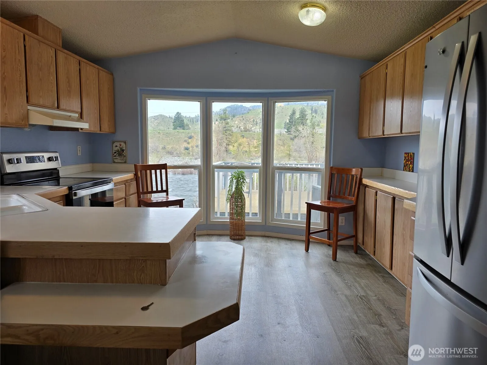 Welcome to the Riverbend Mobile Home Park and this cozy unit nestled on the Wenatchee River! This 2 bed/1 bath home features a nice sized kitchen with large picture windows to soak up the beautiful mountain & territorial views. All appliances are less than 3 yrs old and do convey. Sit out on your detached deck overlooking the river and bask in the abundant sunshine this area offers. Metal roof is 6 yrs old. New LVP flooring throughout main living areas & bathroom. New carpet in back bedroom along with a new hot water tank. Large 10’x10′ shed and a smaller one provide for your x-tra storage needs. Lot rent includes water, sewer, garbage, and snow removal. Come check out this wonderfully located home today!