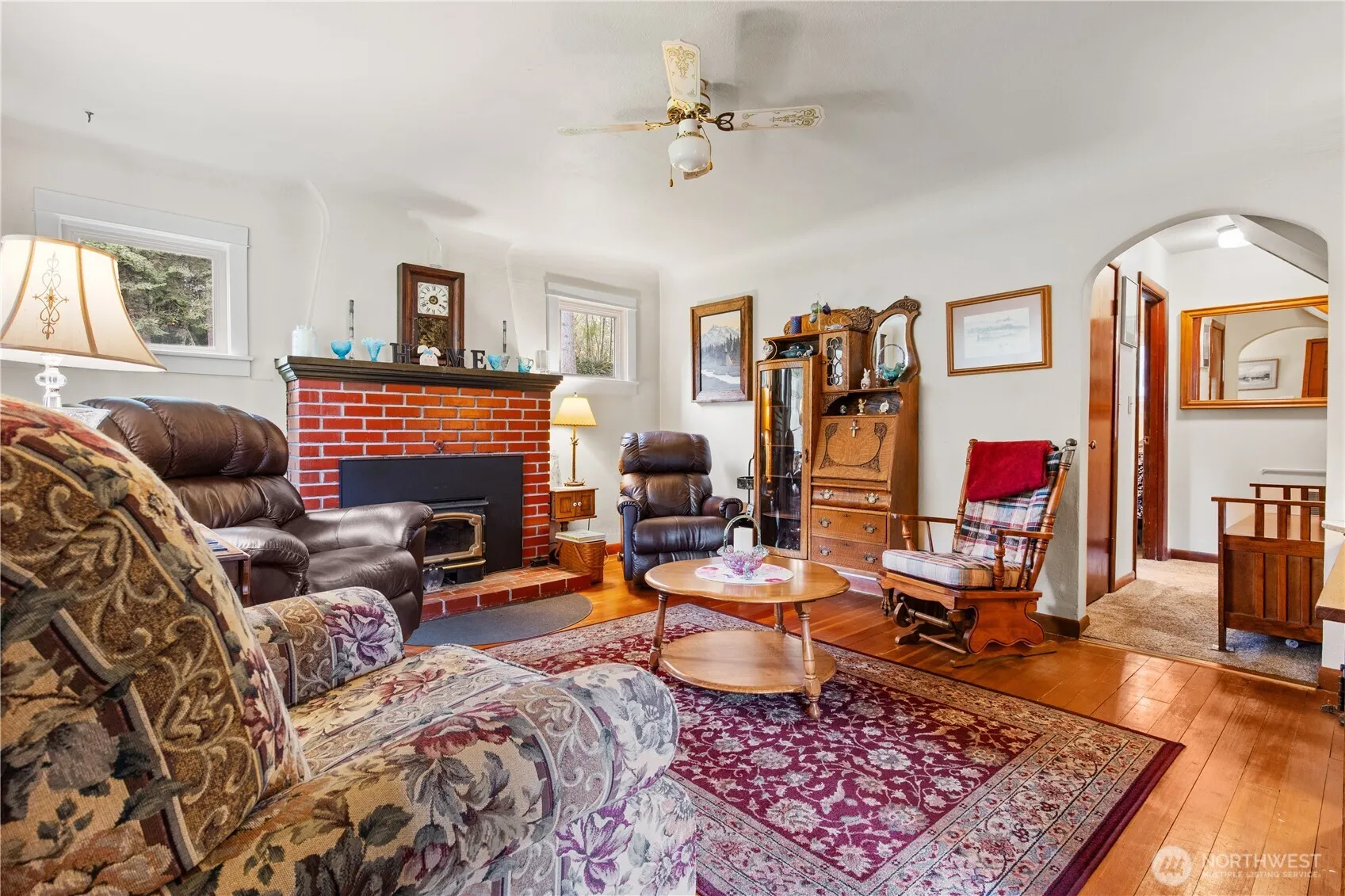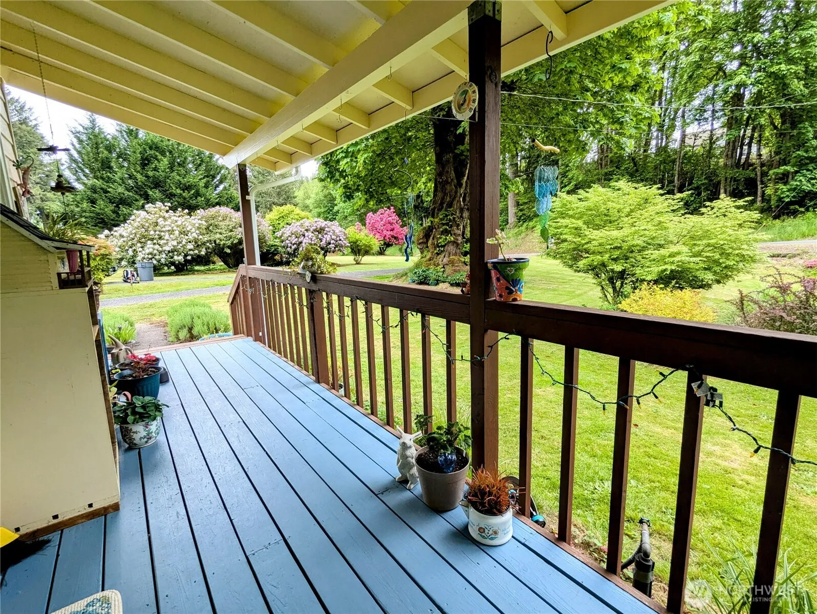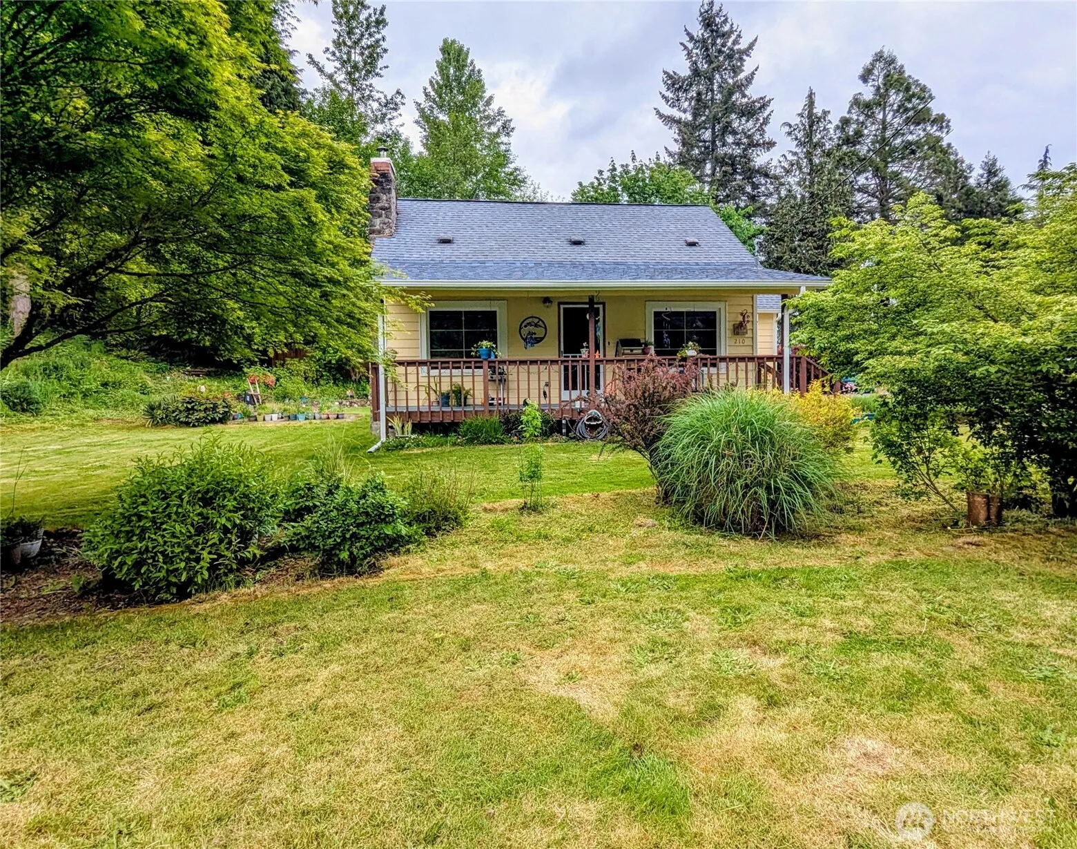 Picturesque, gardeners paradise charming 1933 two story farmhouse, minutes to town with almost 2 useable acres and a 1 acre buffer. Covered front porch with a new roof for all the sitting. Home has basic updates blended with classic built ins, original hardwood floors and arched doorways. A beautiful wood fireplace in the coziest living room with a coved ceiling! Separate dining nook attached to extra wide galley kitchen, 1/2 bath next to laundry with a wonderful open back door entry. Great sized main floor bedroom next to an updated full bathroom, 3 more bedrooms upstairs! Outside oasis with stunning landscaping, gardens, greenhouse. NEW SEPTIC! Two carports, single car garage with 220 amp, work area and its own covered patio!