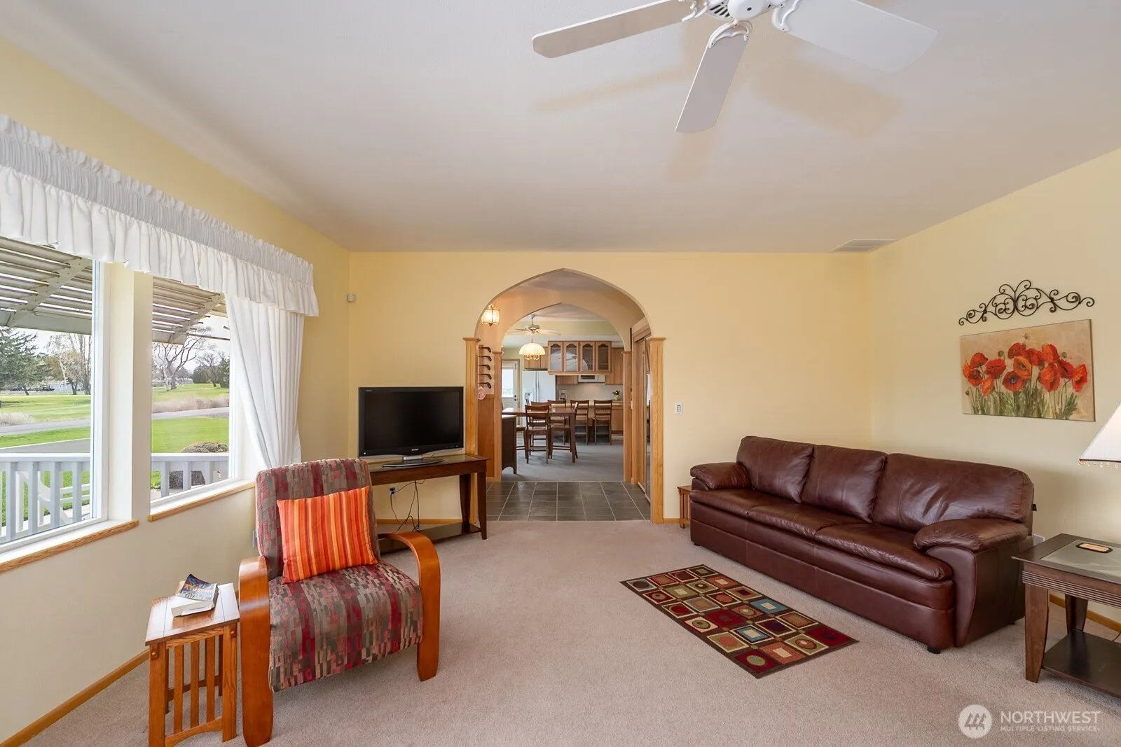 Golf Course Living Meets Country Serenity. Experience the best of both worlds with this immaculate 1990s home offering a blend of comfort, functionality, & location. Enjoy golf course views from the front, while the rear offers peaceful agricultural field views. Property boasts a heated, oversized 3-car garage (1520 sq ft) w/14′ bay & work benches, ideal for hobbyists or car enthusiasts. Inside, discover exceptionally sized rooms throughout, incl: primary suite w/5-piece bath/ jetted tub; walk-in closet. Ideal floor plan features family rm; dining rm; eat-in kitchen w/walk-in pantry; laundry room; separate utility rm w/ extra storage; central vacuum. Outside, revel in easy landscape maintenance. Option to purchase the home fully furnished.