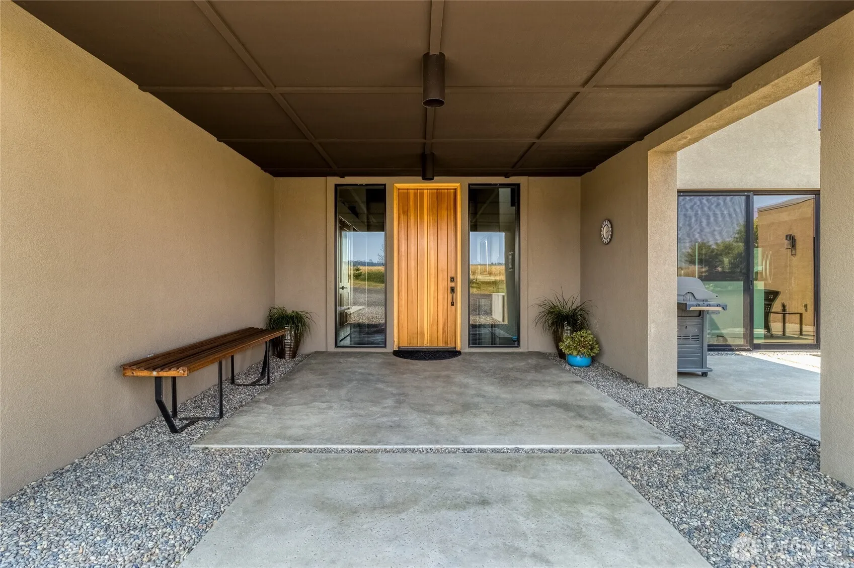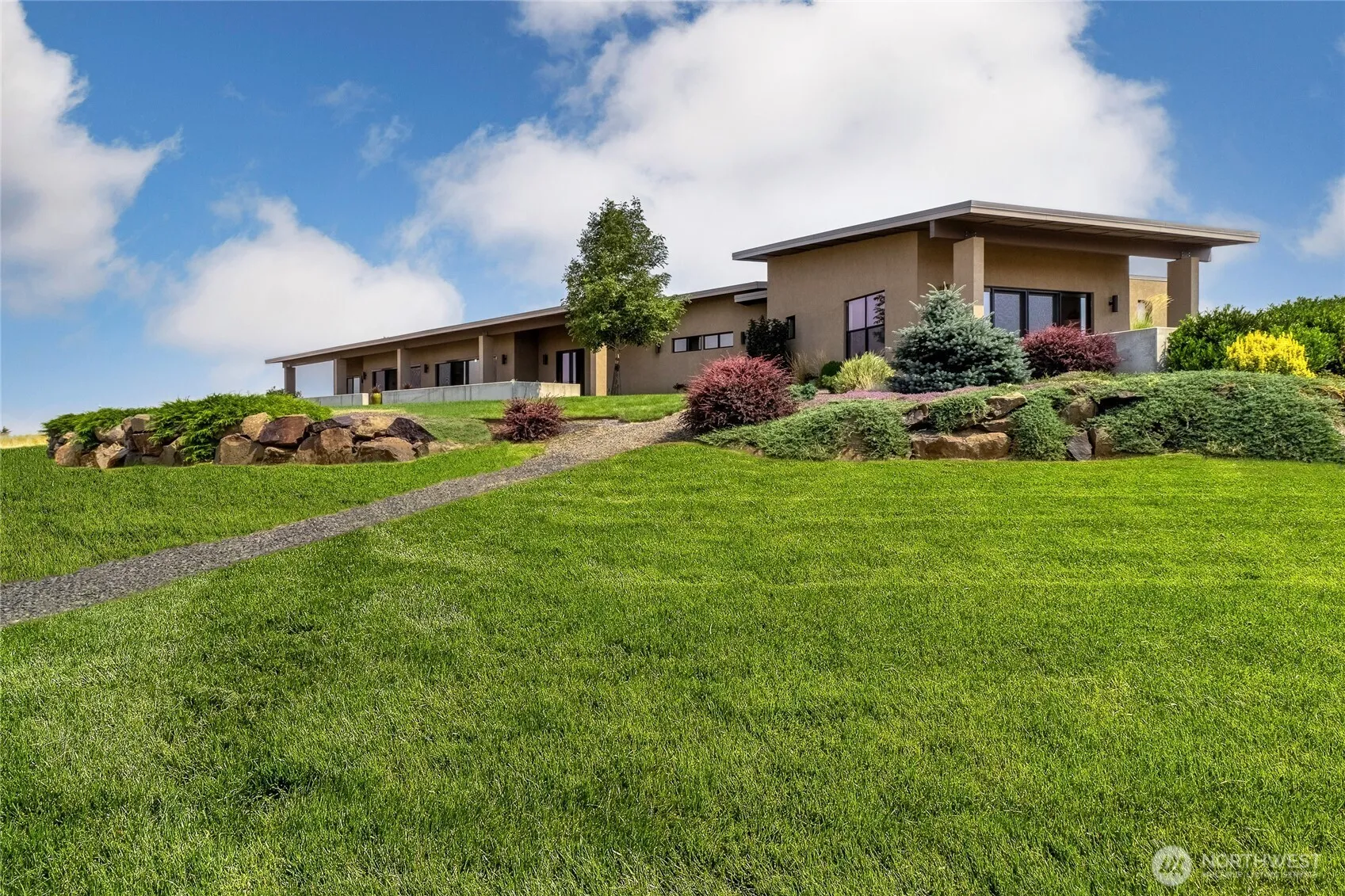 Experience sustainable luxury w/breathtaking views. This 40-acre estate, designed by architect Phillip Christofides, features 8-inch thick ICF walls for superior insulation & energy efficiency. Enjoy year-round comfort w/ a geothermal system, 3-zone radiant floor heating, & A/C. The 7,000 sq ft roof w/ deep eaves offer excellent sun protection & super insulation. Windows & doors designed for cross ventilation. All bedrooms have patio access, & the laundry/mud room includes a dog washing station. A 22K generator & a 700-foot deep well ensure reliability & pristine water. Includes extra 2 garage, greenhouse, & landscape irrigation. Just 21 minutes from downtown w/ panoramic views of the Walla Walla Valley, Cascade & Red Mountain.