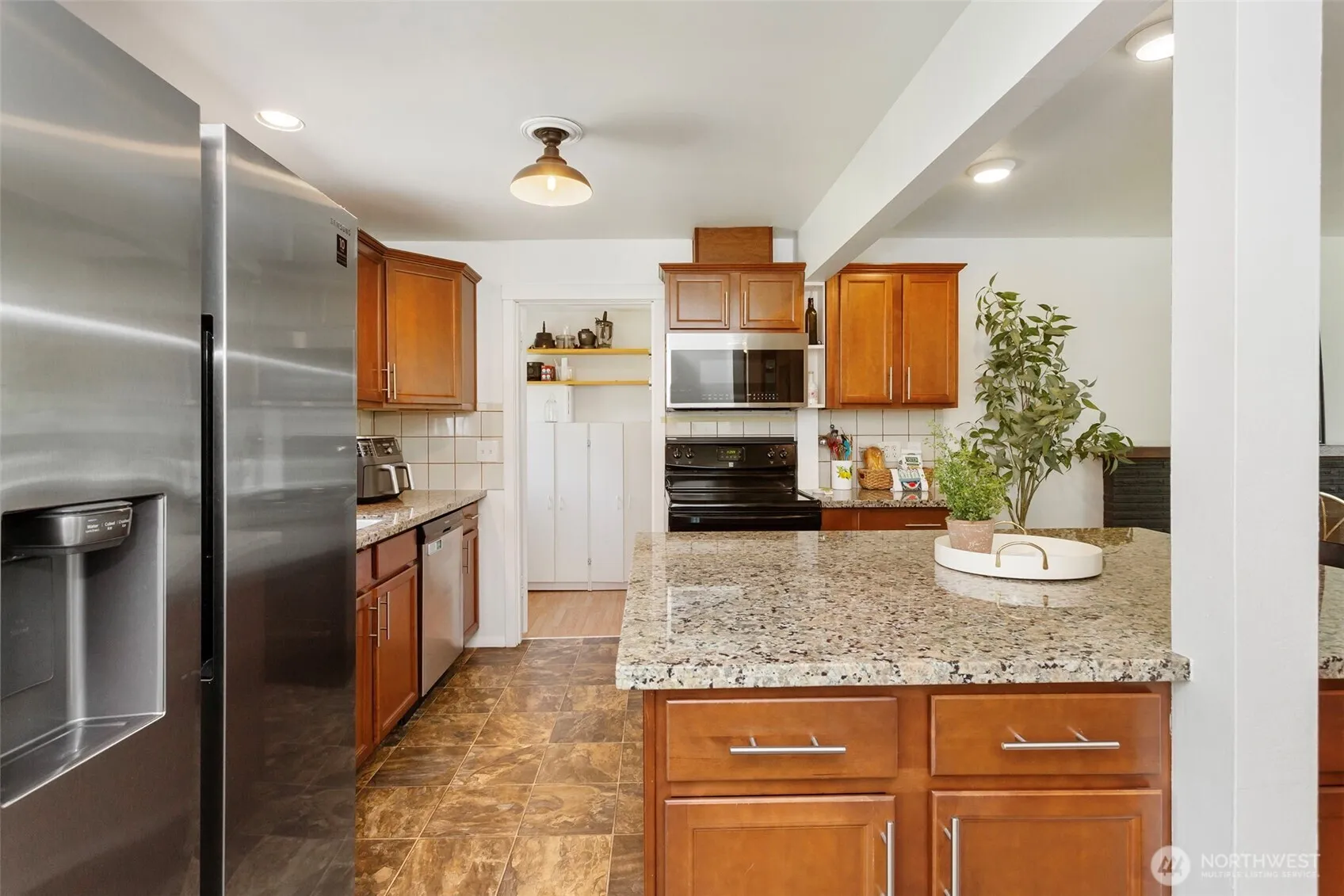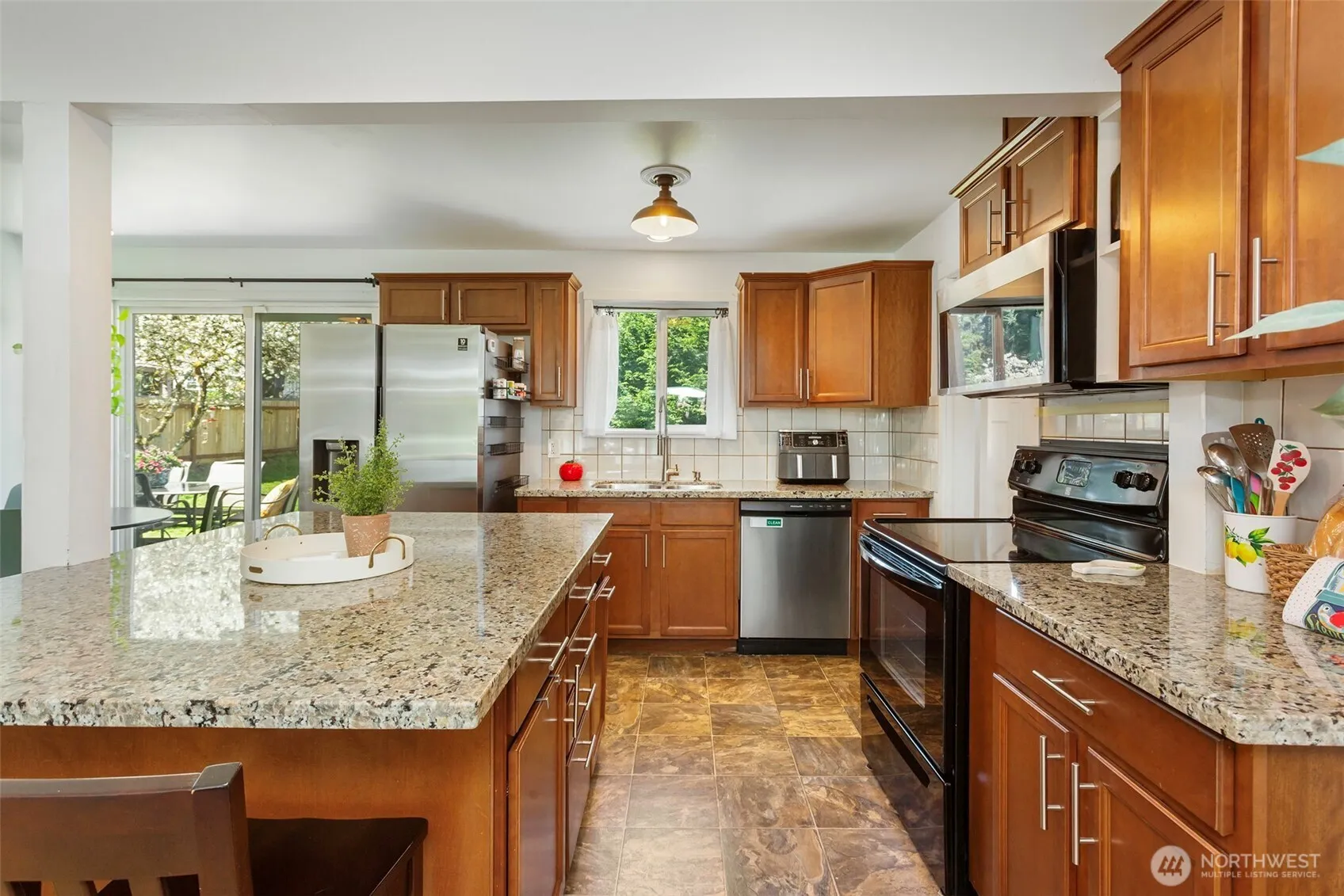 Look no further!! Charming home features a beautiful park-like shy quarter acre! Features well-sized 4 bedrooms and 1.75 baths. Ample living spaces created with a Great room with large kitchen, slab granite island and SS/Blk appliances and includes Living room with cozy wood burning Fireplace. Home has updated plumbing, counters, vinyl windows, doors, baths, interior & exterior paint. 4th Bedroom bonus is tucked privately above the garage! Relax & entertain in the fully-fenced backyard w large patio for BBQs & newer storage shed. Super convenient location near I-5, Transit Center and Light Rail. Superb for both north or south commutes. Excellent starter home or Buyer to verify the potential to add ADU, DADU and/or other options. A must see!