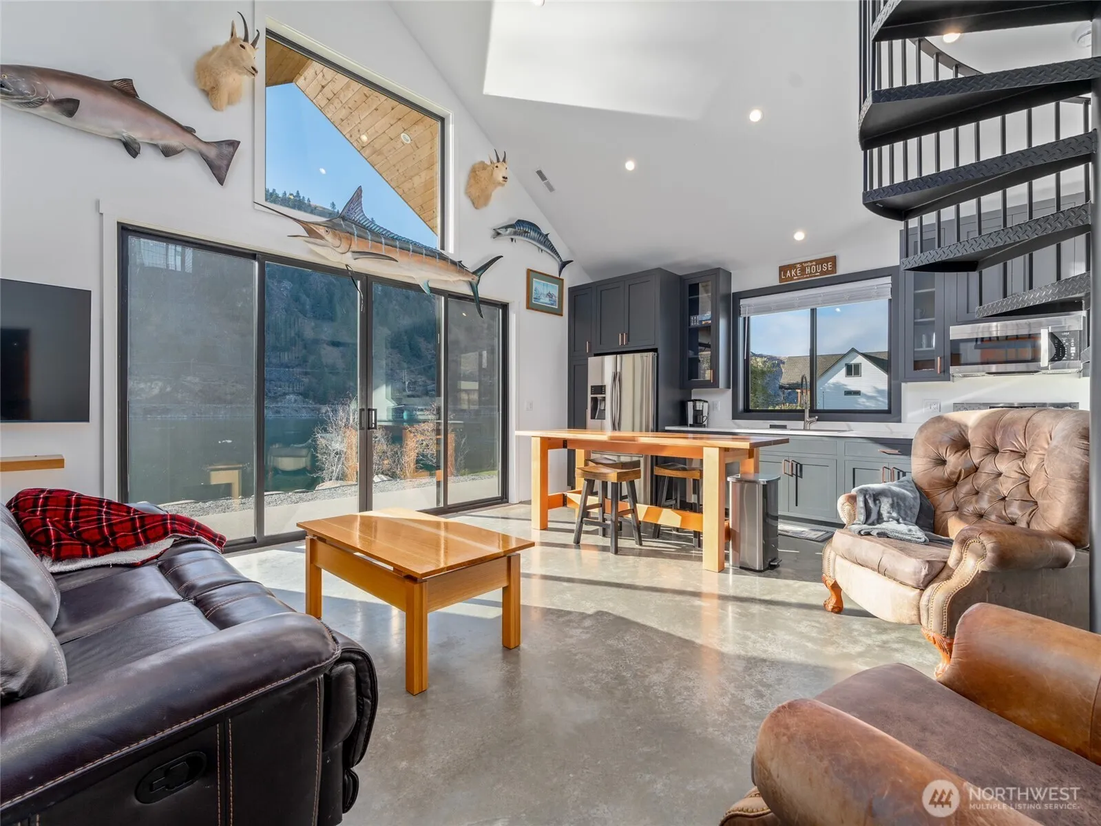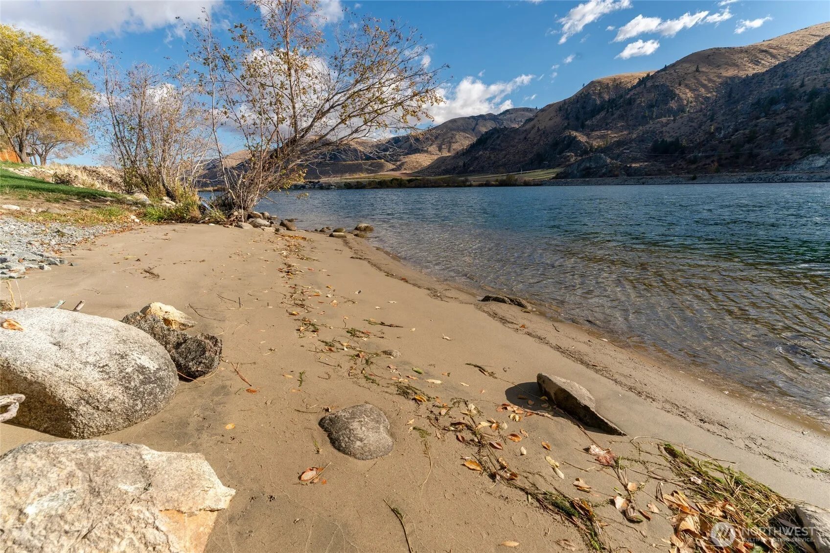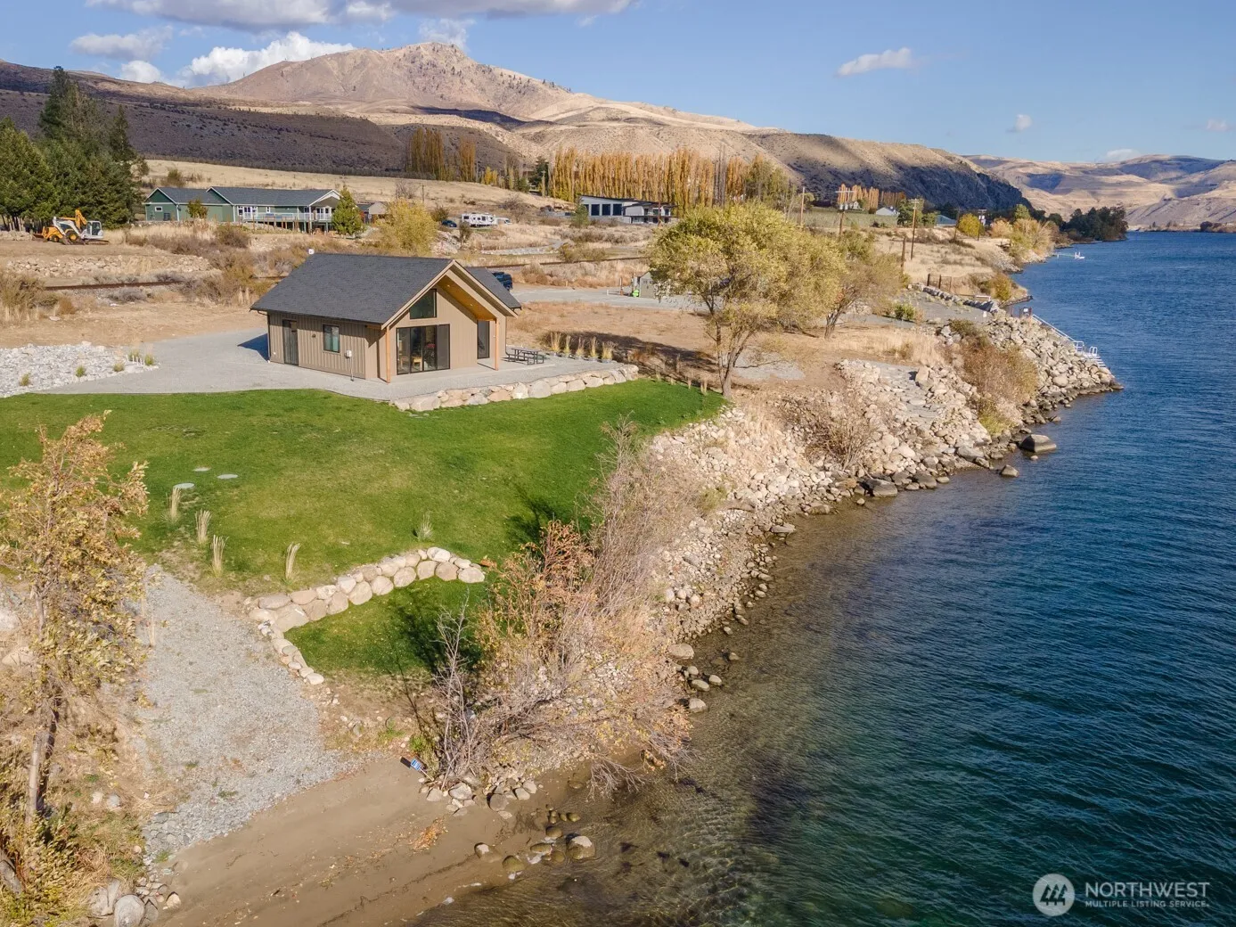 Riverfront retreat nestled on the Columbia River, perfectly situated between Chelan and Entiat. 874 sq ft home features an open layout, custom kitchen cabinetry, a beautiful walnut island, and expansive windows that capture stunning river views. Enjoy outdoor living on the covered patio, overlooking the landscaped .39-acre lot with a built-in sprinkler system, 3-bedroom septic, and an impressive 131 feet of low-bank riverfront.A permit for a private dock is expected soon, giving the next owner up to five years to build if desired. The home offers a main-floor bedroom and a custom-designed metal spiral staircase leading to a cozy sleeping loft. The garage includes laundry hookups and a sliding door facing the river.