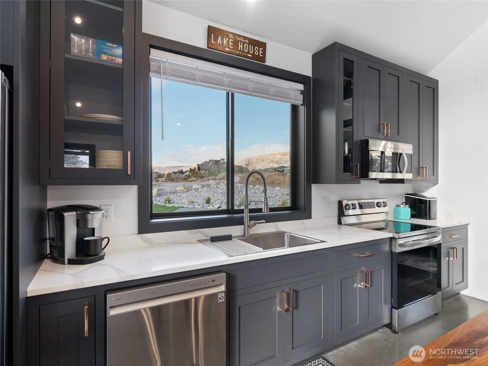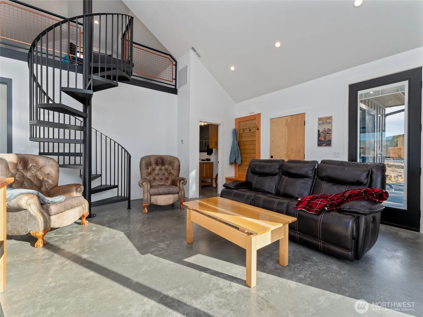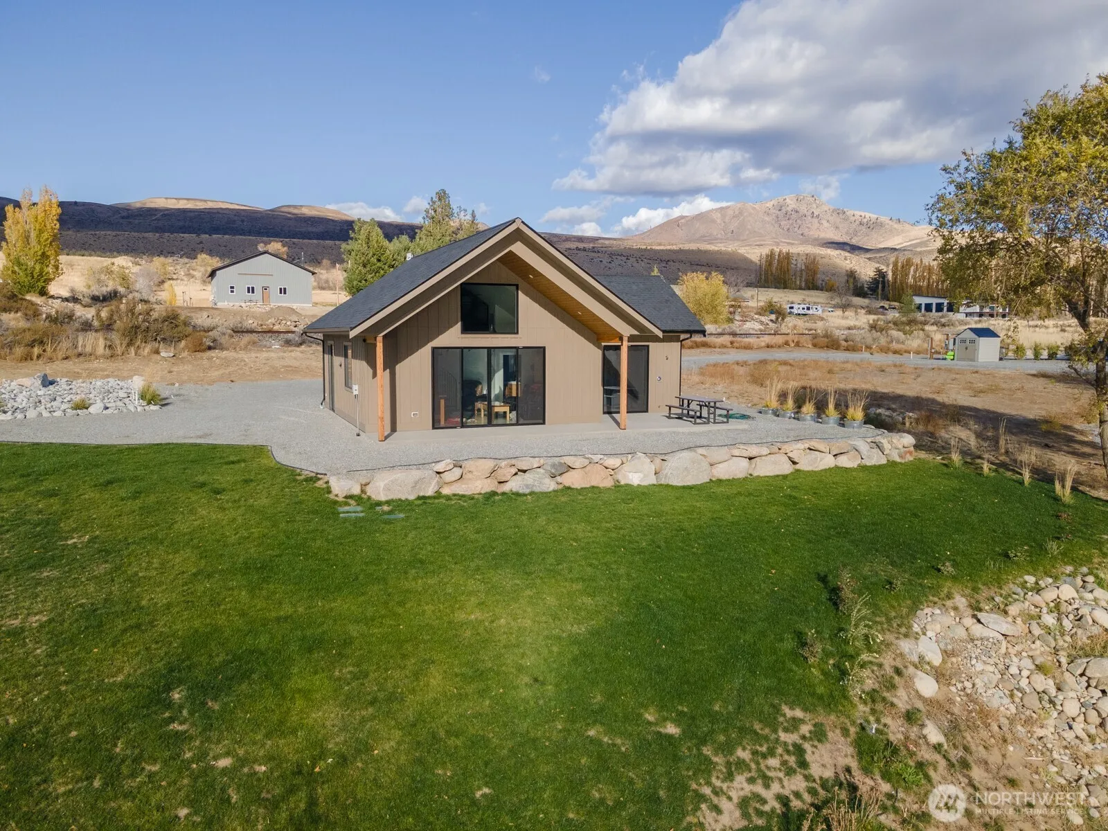 Riverfront retreat nestled on the Columbia River, perfectly situated between Chelan and Entiat. 874 sq ft home features an open layout, custom kitchen cabinetry, a beautiful walnut island, and expansive windows that capture stunning river views. Enjoy outdoor living on the covered patio, overlooking the landscaped .39-acre lot with a built-in sprinkler system, 3-bedroom septic, and an impressive 131 feet of low-bank riverfront.A permit for a private dock is expected soon, giving the next owner up to five years to build if desired. The home offers a main-floor bedroom and a custom-designed metal spiral staircase leading to a cozy sleeping loft. The garage includes laundry hookups and a sliding door facing the river.