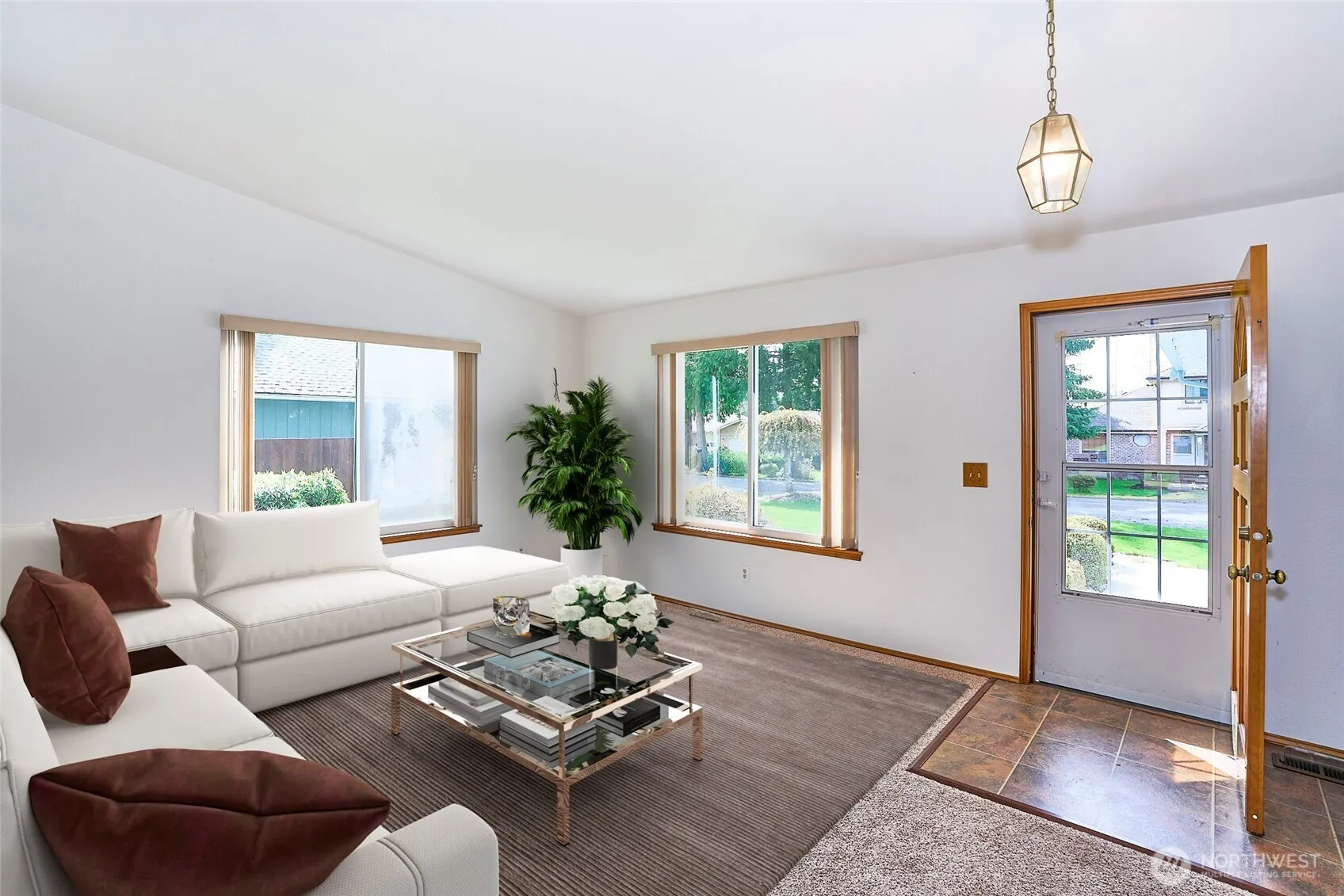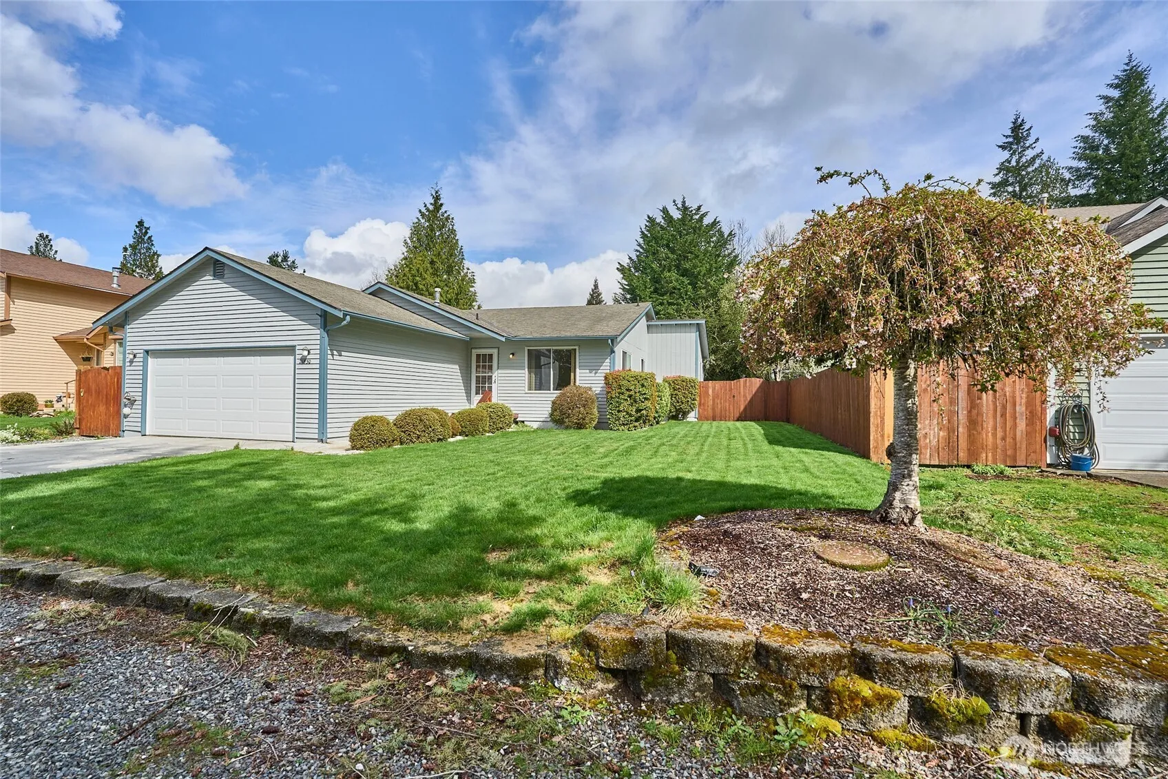 Cherokee Bay Rambler Delight! This cozy 3 bedroom, 2 bath, 2 car garage is ideal single level living. Open concept family room, kitchen and dining room with wood burning fireplace. Kitchen with new appliance and lots of cabinets and counter space. Granite countertops and breakfast bar. Vaulted ceilings and skylights make this home feel spacious and bright. Primary bedroom with full bath. Two additional bedrooms with full bathroom in hallway. Energy efficient home with gas furnace and insulated vinyl windows. Back deck is wonderful for outdoor entertaining. Patio brick pavers provide additional seating areas. Fully fenced backyard. Community offers Club House, Playground, Tennis Courts, Private Boat Launch, and Access to Lake & Dock.