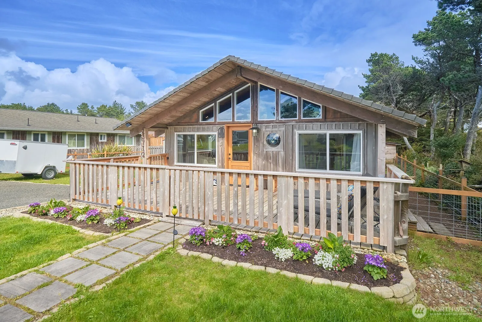 Discover your serene beach escape in this charming cottage at the end of a quiet lane just south of Ocean Park on the scenic Long Beach Peninsula. Steps from the ocean trail, enjoy panoramic dune views and 28 miles of shoreline perfect for clamming, beachcombing, and kite flying. You’ll love sitting in front of the cozy woodstove watching the abundant local wildlife that shares the space. This updated 3-bed, 1-bath retreat offers new 200-amp service, modern lighting, fresh flooring, RV hookup, and a whimsical “Pirate Ship” deck. Fully fenced with generator hookup, new powered shed, and sold fully furnished—turnkey and ready for beach lovers seeking peace, privacy, and a slice of Cool Coast paradise. Shopping and services just north in OP.