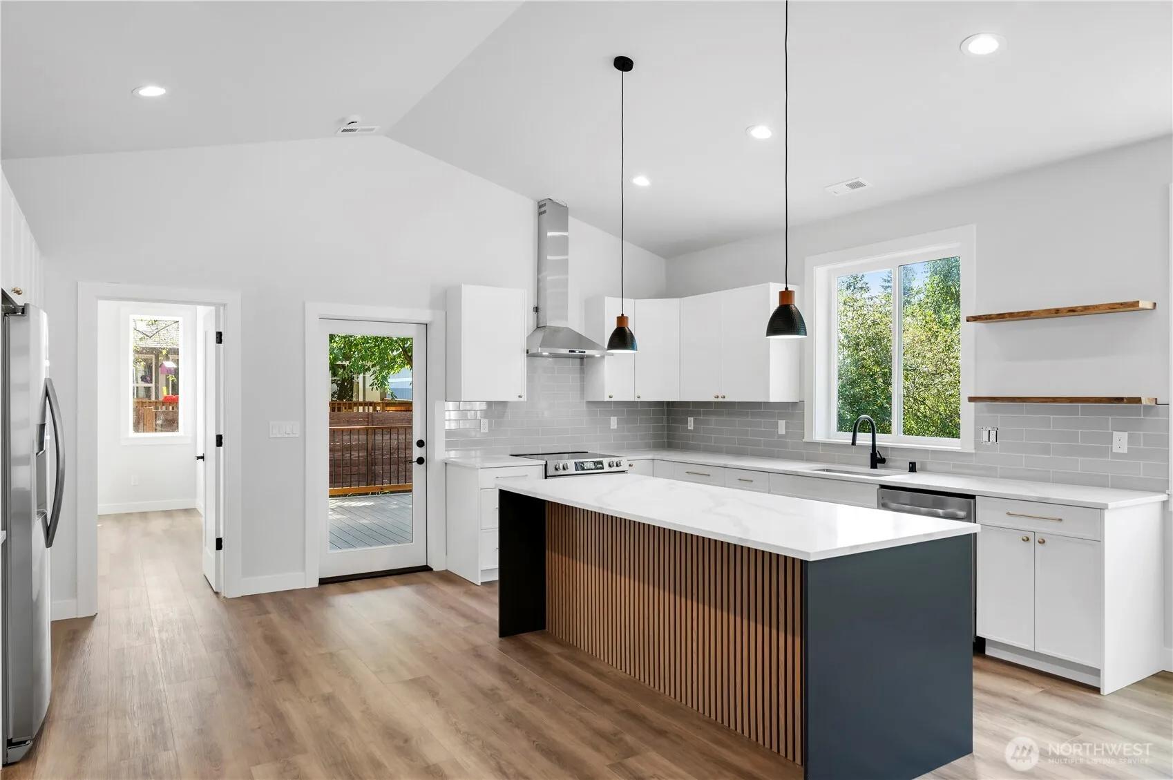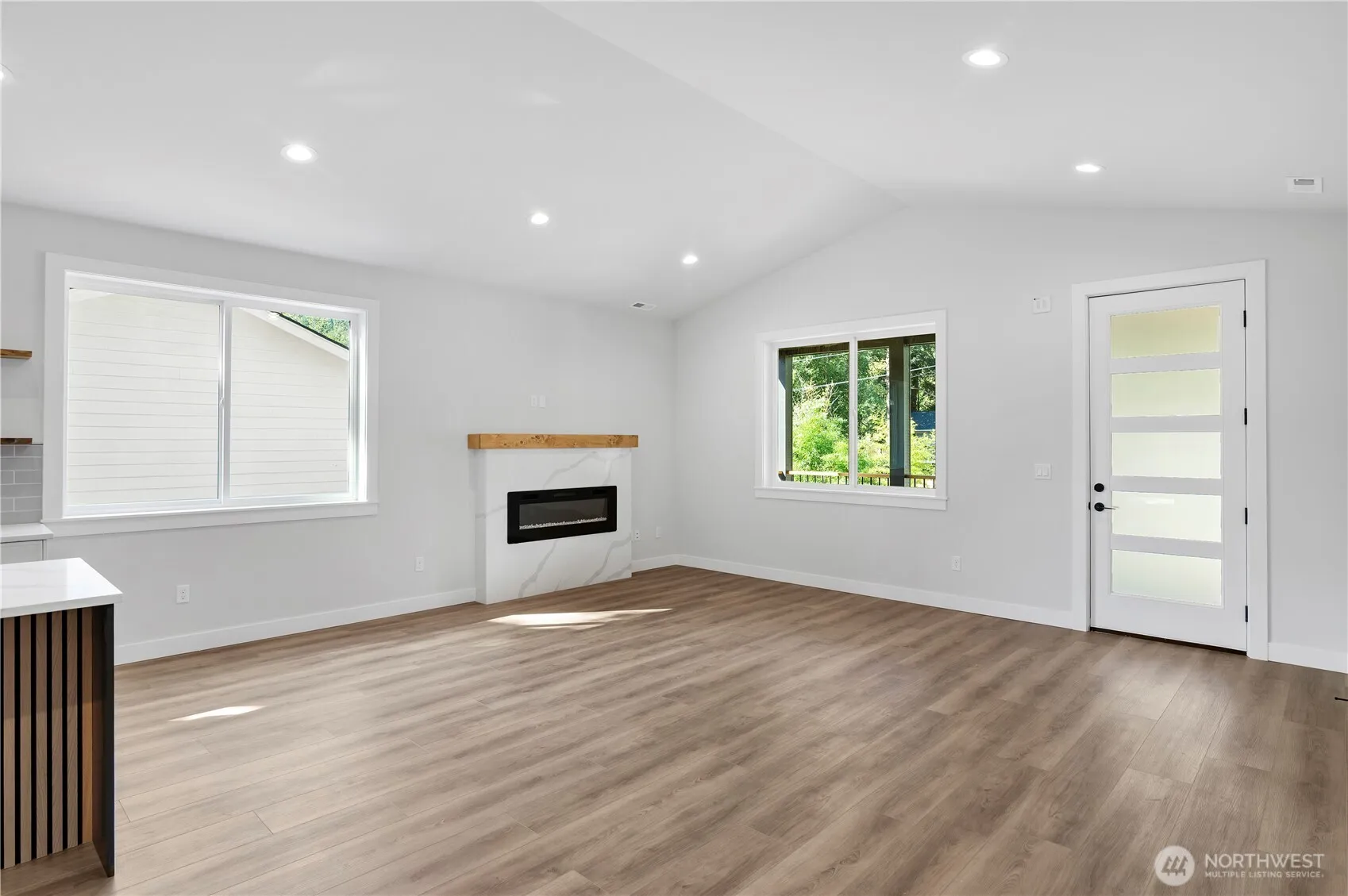Modern New Construction 3 bed, 1.75 bath home 2 blocks from Lake/Clubhouse in the beautiful Glenhaven Lakes Community w/private beaches, Islands, boat launches, playground, swimming pool, trails, sports courts and fun events scheduled throughout the year. Elegant Custom Soft Close Cabinetry w/underlighting, oversized Kitchen Island, quartz counters, durable LVP waterproof flooring, 9ft ceilings throughout, vaulted living room w/stunning fireplace, MAGNIFICENT Primary Spa bath w/luxury dual head tiled shower & composite entertainment decks. Big 2 car garage. Seller to hydroseed front lawn, fence-in the backyard, plant privacy trees & install privacy screens on back deck. Only 5 miles from Interstate 5 between Burlington and Bellingham.