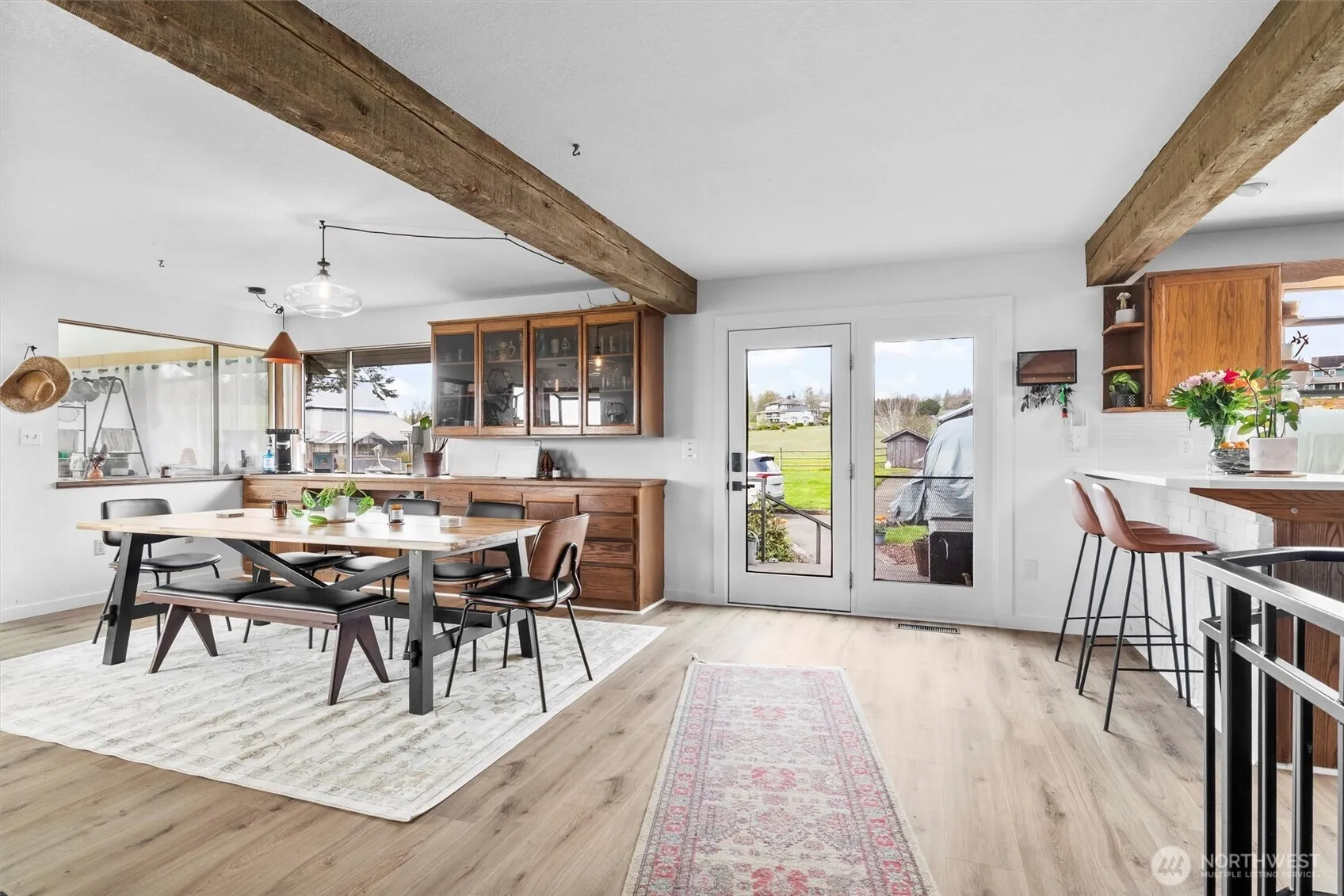 Experience country living in this beautifully maintained 3-bed, 2-bath farmhouse, nestled on a serene 8-acre estate with views of Mt. Baker. Thoughtfully designed with vaulted ceilings, cedar accents, and reclaimed wood beams, the home blends rustic elegance and comfort. The property features a large barn, 2 expansive shops (44’x23′ & 35’x40′), 13’x23′ storage room, and a chicken coop ideal for hobby farming or a self-sufficient lifestyle. Recent upgrades include new carpet & flooring, water filtration system, tankless water heater, heat pump w/mini splits, and remodeled kitchen & main bath. Enjoy outdoor living w/a sunny deck, firepit, RV parking, gardens, and more. This move-in ready retreat offers timeless charm and limitless potential.