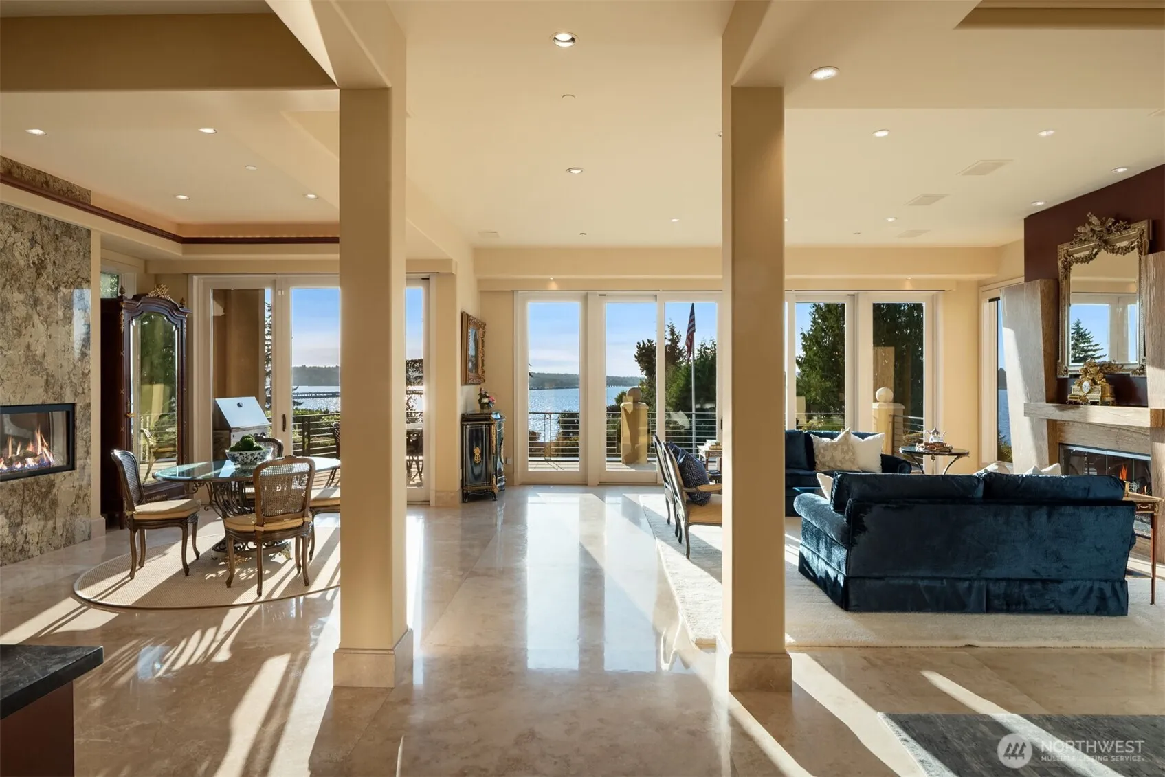 A timeless Italian Estate where extraordinary west-facing views of water, cityscape and mountains converge. Soaring ceilings and walls of glass pour in light and unforgettable sunsets. The elegant great room is enriched with grand travertine and African Mahogany that seamlessly connects a custom kitchen with priceless views. The primary suite is its own private retreat with an expansive stone bath and private terrace overlooking the lake and snow-capped Olympics. Equipped with two offices, a fitness room, sauna, and wine cellar. Custom design expressed throughout every floor with panoramic vistas of Lake Washington, Seattle’s Skyline, and the Olympic Mountains. A truly once-in-a-lifetime opportunity to own the most coveted views in Medina.