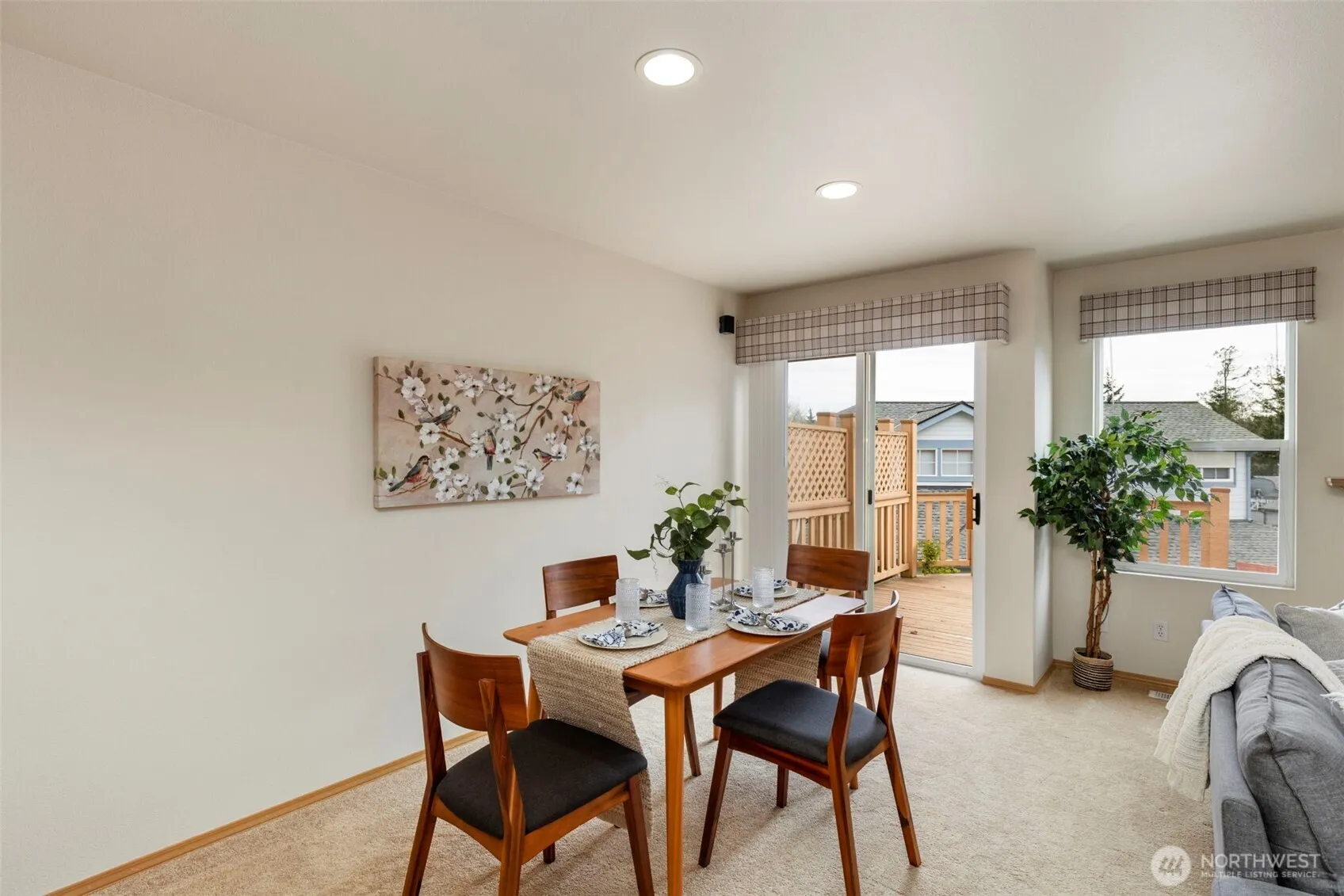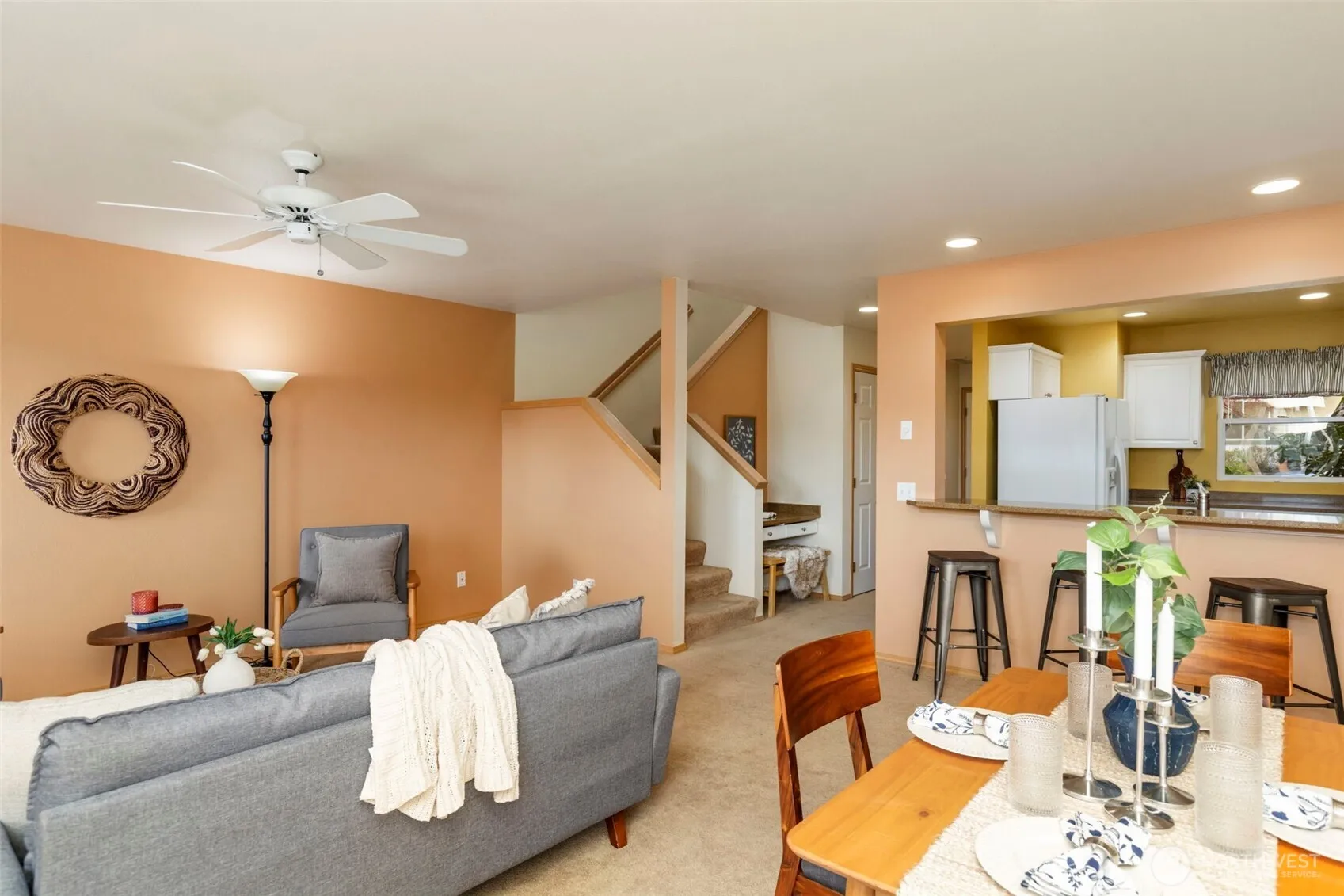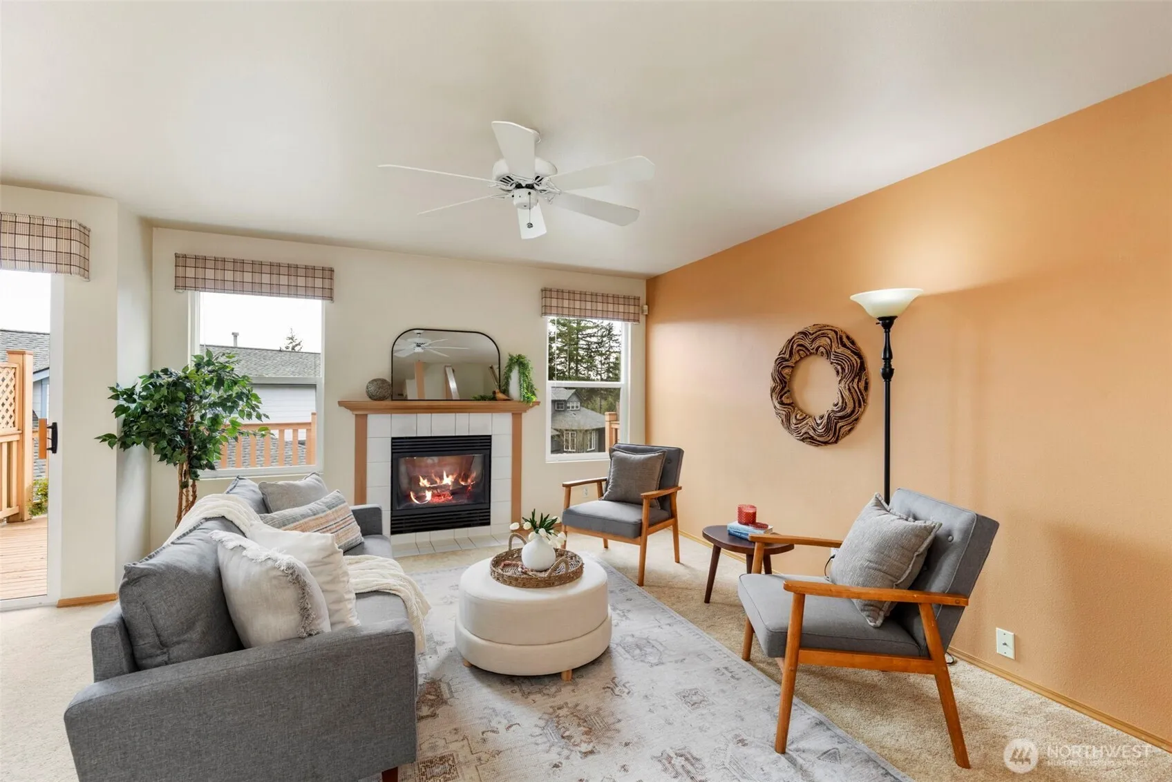 Beautiful Summerwind Townhouse! Easy living in the heart of Silverdale. Featuring a bright kitchen with white cabinets, a gas stove, granite countertops, & eat-up bar. Open-concept great room & attached dining room with a cozy gas fireplace. Spacious primary bedroom has an ensuite bath with walk-in closet. Convenient small den/office space also attached to the primary bedroom. The second bedroom includes built-in cabinets. Enjoy the summer on your back deck & hot tub. Or stay inside and enjoy the A/C during the hot summer months. HOA includes landscaping & some exterior maintenance. Guest parking spaces are available in the community. Near the community park. Quick commute to bases, hospital, & easy access to all Silverdale amenities.