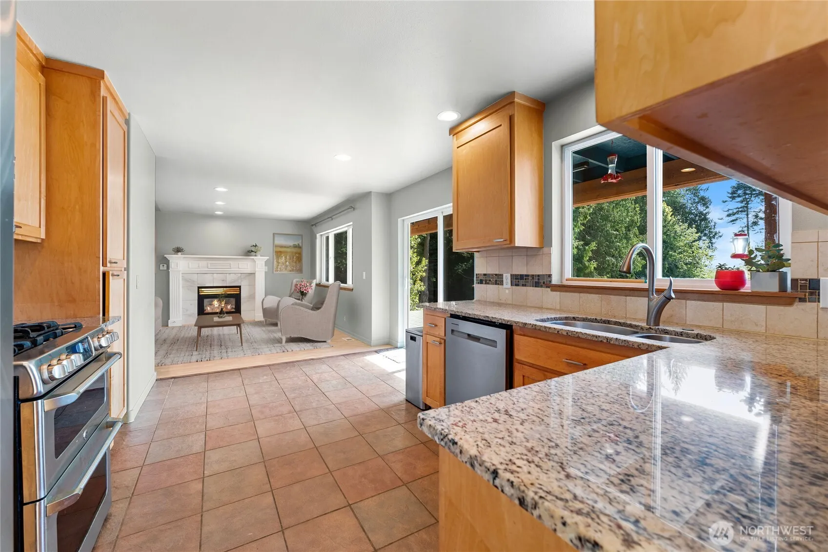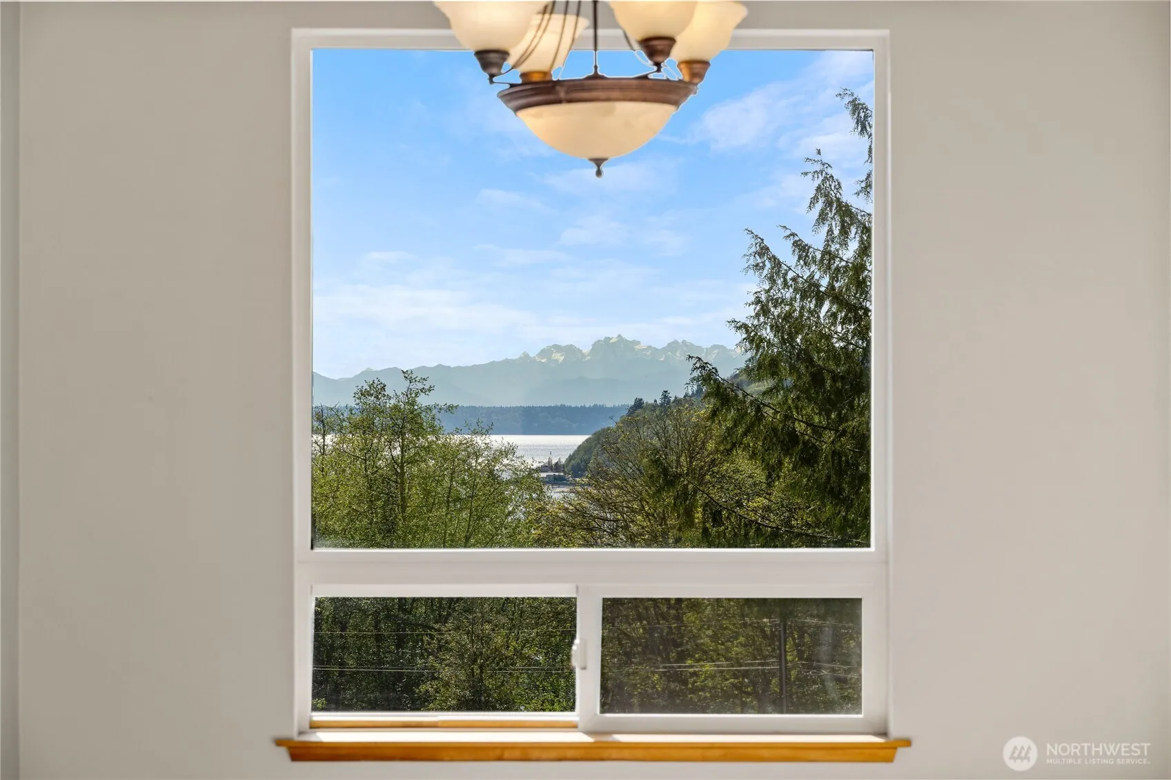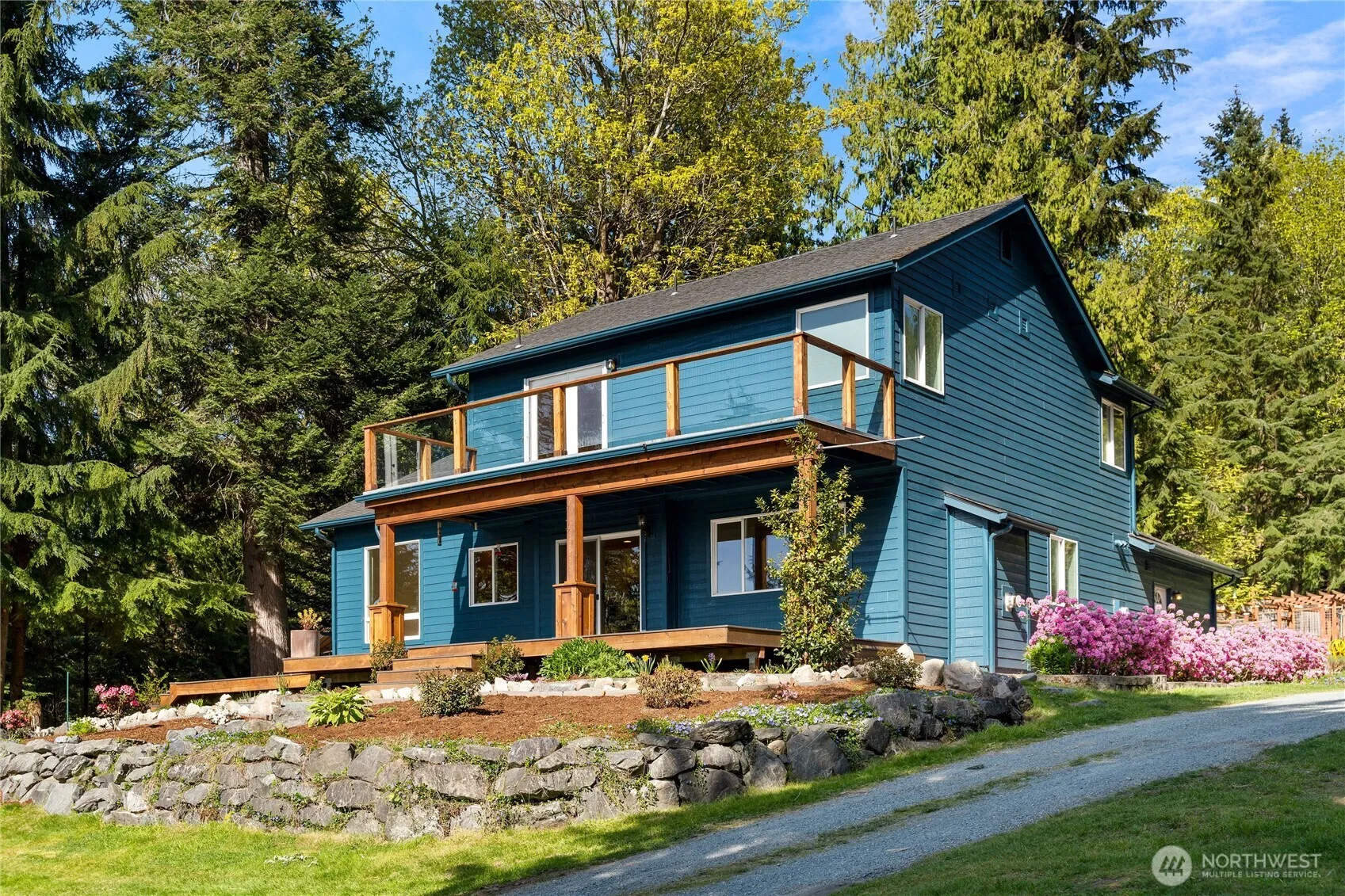 Perched on over 2 acres with sweeping views of the shipping lanes and Olympic Mountains, this sunlit two-story home is a perfect blend of comfort, privacy, and natural beauty. Spacious, light-filled interiors invite you to unwind by either of the two cozy fireplaces or step out onto the private primary suite deck to bask in the coastal sunshine. The chef’s kitchen features granite countertops, a gas range, solid maple cabinetry, and opens to an expansive covered deck—ideal for year-round entertaining. Impeccably landscaped grounds include a fully deer-fenced garden, thriving fruit trees, and plenty of space to explore and relax. Watch eagles soar overhead as you soak in the peaceful rhythm of Westside Whidbey life—you’ll feel a world away.