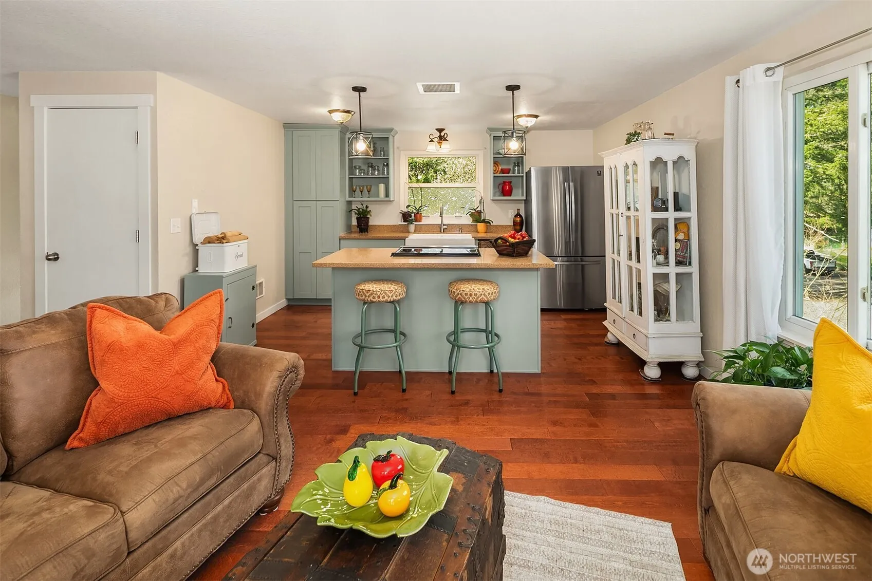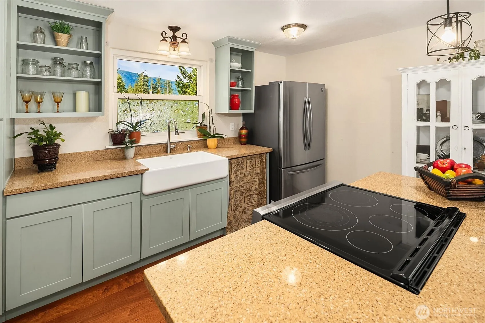 This gem is situated on a large, fenced lot with a sunny backyard & 2 decks for enjoying the wonderful outdoors. A large shed & a charming hen house, expansive lawn & a wooded perimiter make this a backyard you’ll want to enjoy! Inside, find a remodeled kitchen with newer appliances, a farmhouse sink and and island eating bar. The living rm faces south with a lovely attached deck-perfect for outdoor dining. Two bedrooms and a full bath round out the upstairs. Downstairs, the owner has removed a wall to combine 2 bedrooms to make a large bdrm or family room. A 1/2 bath/laundry area (with room to install a shower) are convenient to the backyard. The attached garage is great on rainy NW days! Minutes to I-90 & downtown N. Bend.