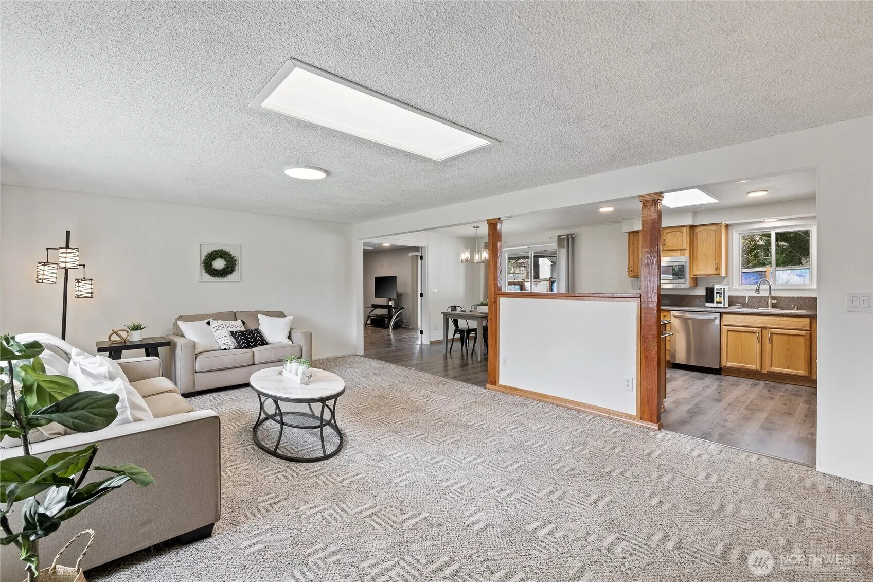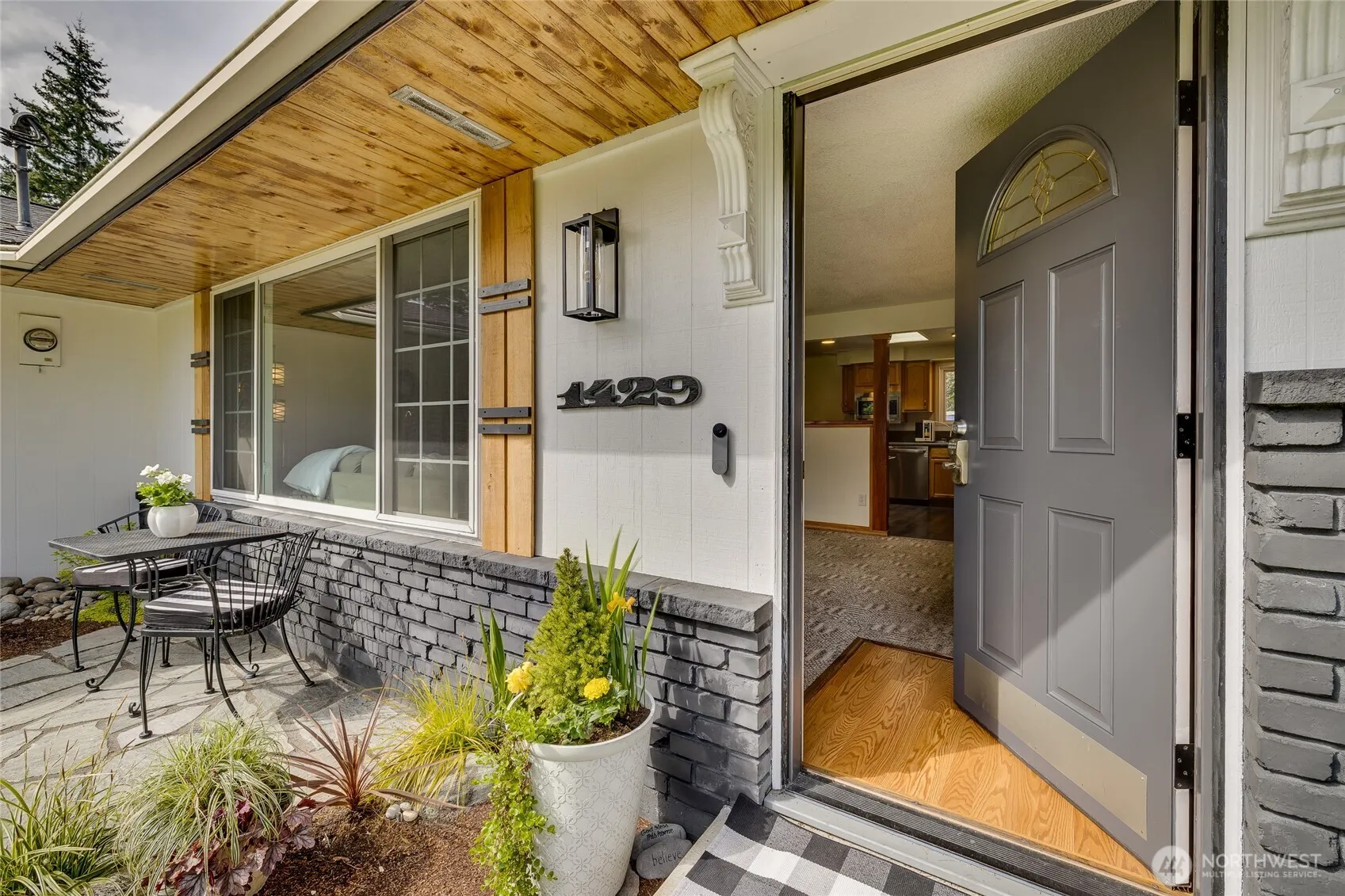 Updated 3-bed + bonus/office w/closet rambler sits on a large lot at the end of a quiet street- just a short walk to local schools & minutes from shopping, dining, & Mill Creek Town Center. Living room opens to kitchen & dining, w/a modernized updated space: granite countertops, stainless steel appliances, & island area. Family room off of Dining features gas fireplace + French doors to backyard. Outside, a large covered patio, fully fence fenced yard, & sport court add to the appeal. New interior & exterior paint, newer roof, leaf guard gutters, energy-efficient vinyl windows & A/C. Updated primary bath w/ on suite access. New Tile, walk in shower, stand alone tub, dual sinks- all in modern finishes. Large walk-in closet. Move in ready!