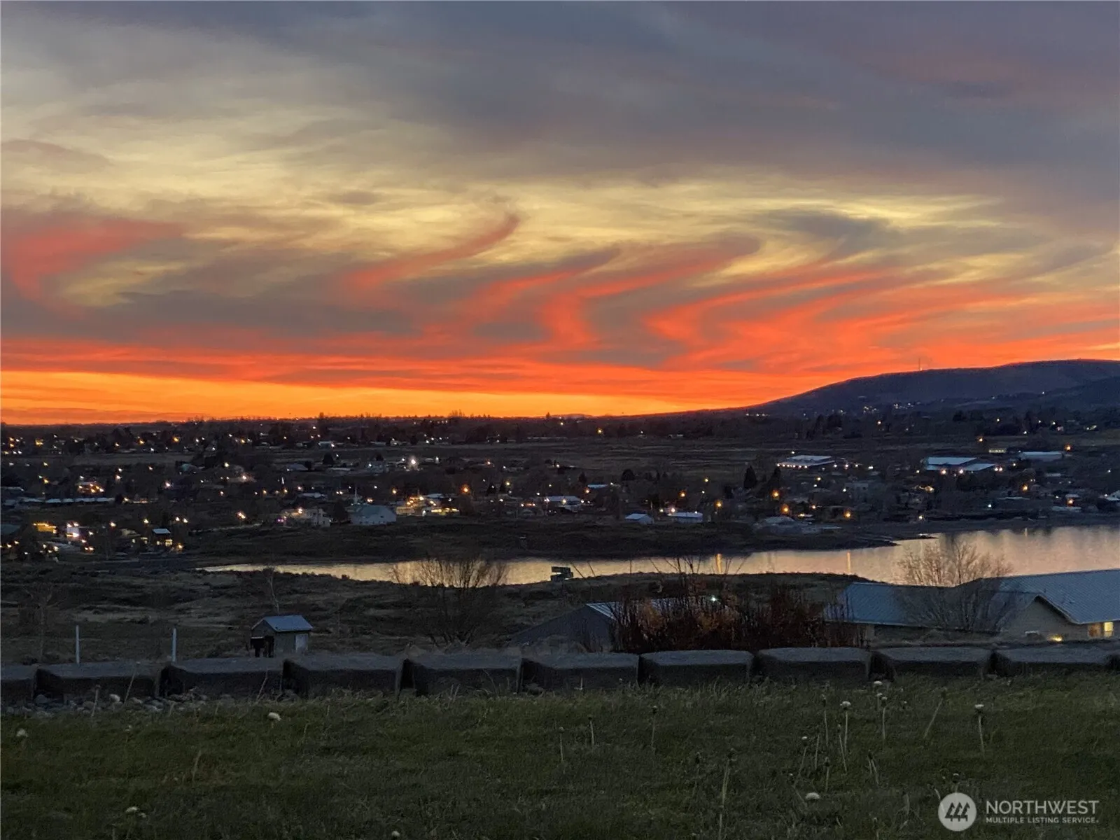 Stunning 2,540 sq ft custom home on 2.24 acres with captivating views of Soap Lake, the city, and striking basalt cliffs. Thoughtfully designed to showcase the scenery, features formal living and dining rooms, a spacious family room off the kitchen with an island, and a dramatic entry with a chandelier, curved banister, and tile flooring. The primary suite includes a walk-in closet and a luxurious bath with a jetted tub, separate shower, and double vanity. Finishes include tile, carpet, and laminate flooring. Enjoy landscaped grounds with underground sprinklers, decorative stone walls, partial fencing, and a 3-car attached garage. Located on a private, county-maintained dead-end road with covenants in place to protect your investment