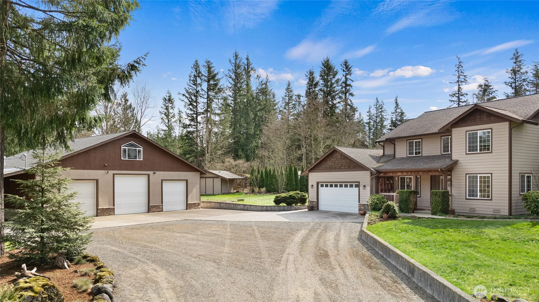 NEW PRICE!Step into your own serene retreat on fully fenced/gated 3.59 acres featuring a 4 bed, 2.5-bath residence equipped w/ A/C, a Primary suite offers walk-in closet & 5-piece ensuite PLUS Det. 2,700 sq ft SHOP w/carport/Accessory Dwelling w/ living & kitchen area, full bath/laundry + 600 s/f unfin area above!Fenced fields ideal for welcoming your horses home!Extra building for storage & a Kids’ Play Area as well!Stamped concrete patio in the backyard w/Gazebo—perfect for soaking in the PNW vibes!Just minutes away is Nolte State Park/Deep Lake one way, & the other brings you to King County Fair, hiking, & biking spots.RV parking & tons of space for your toys!Seller offering $20K towards new roof on detached shop OR off purchase price.