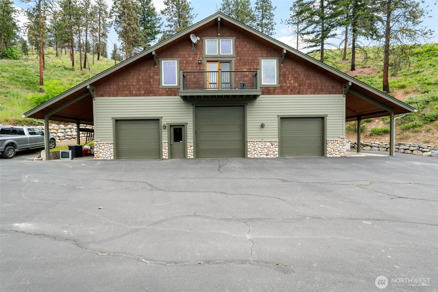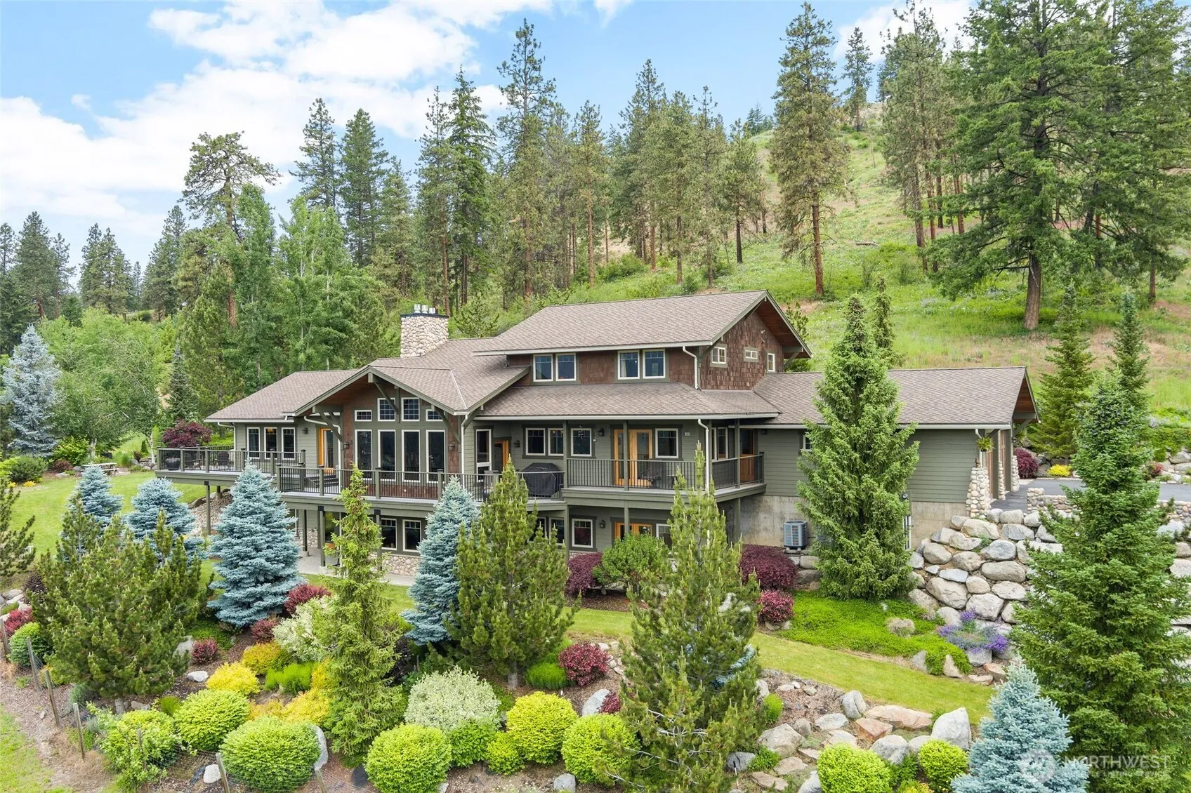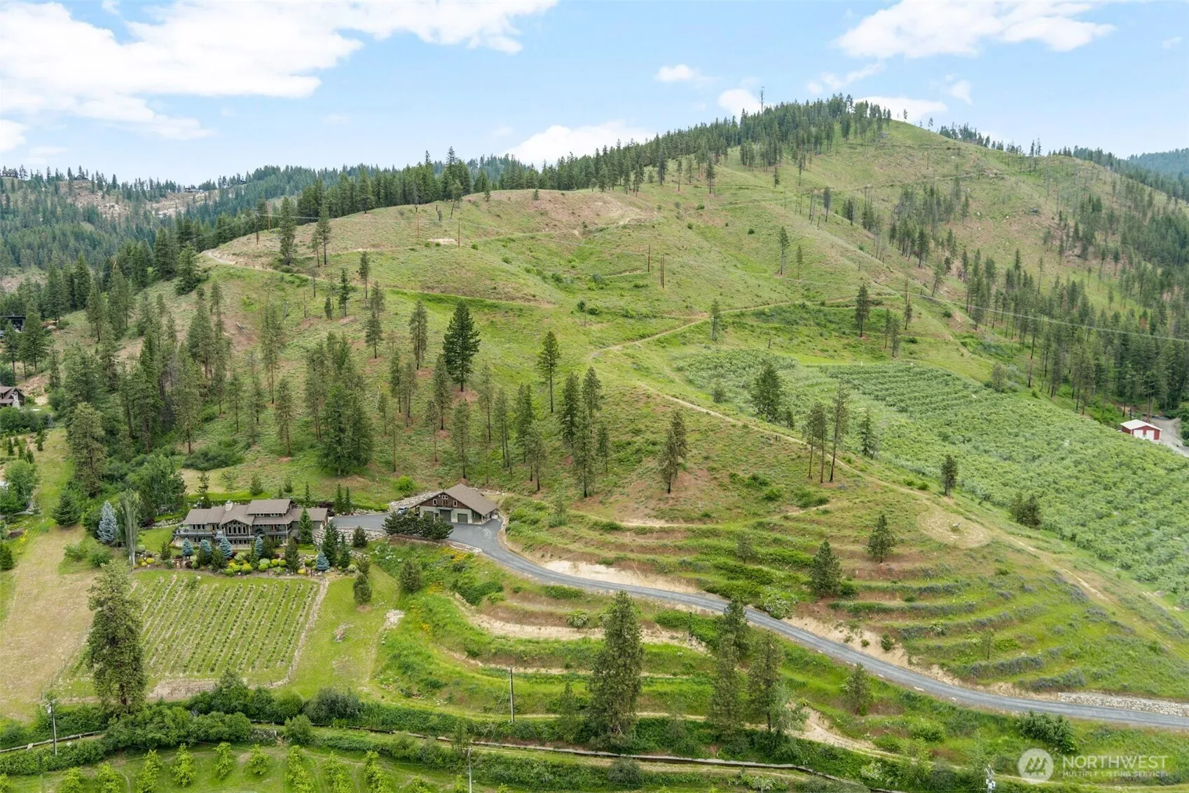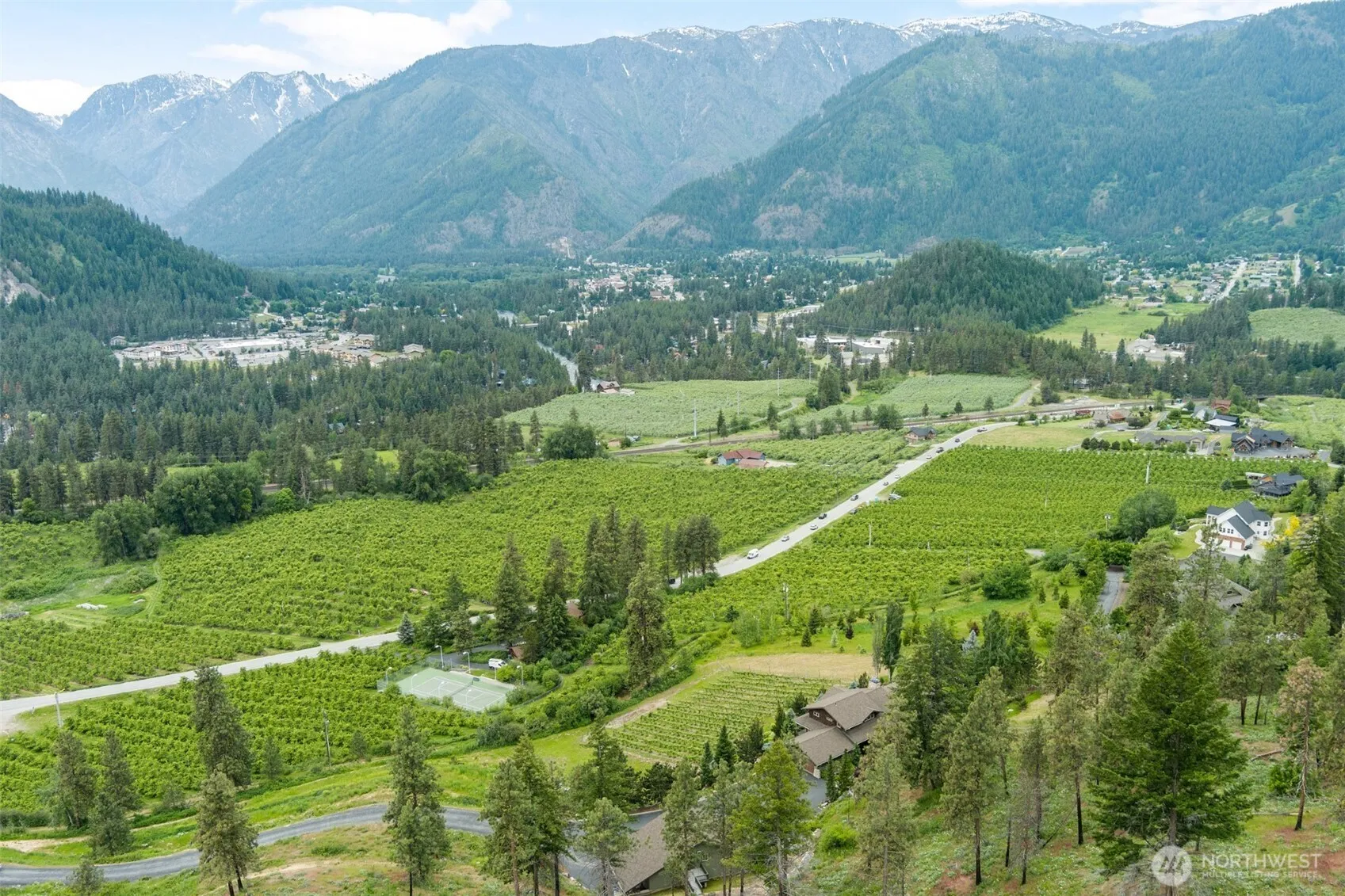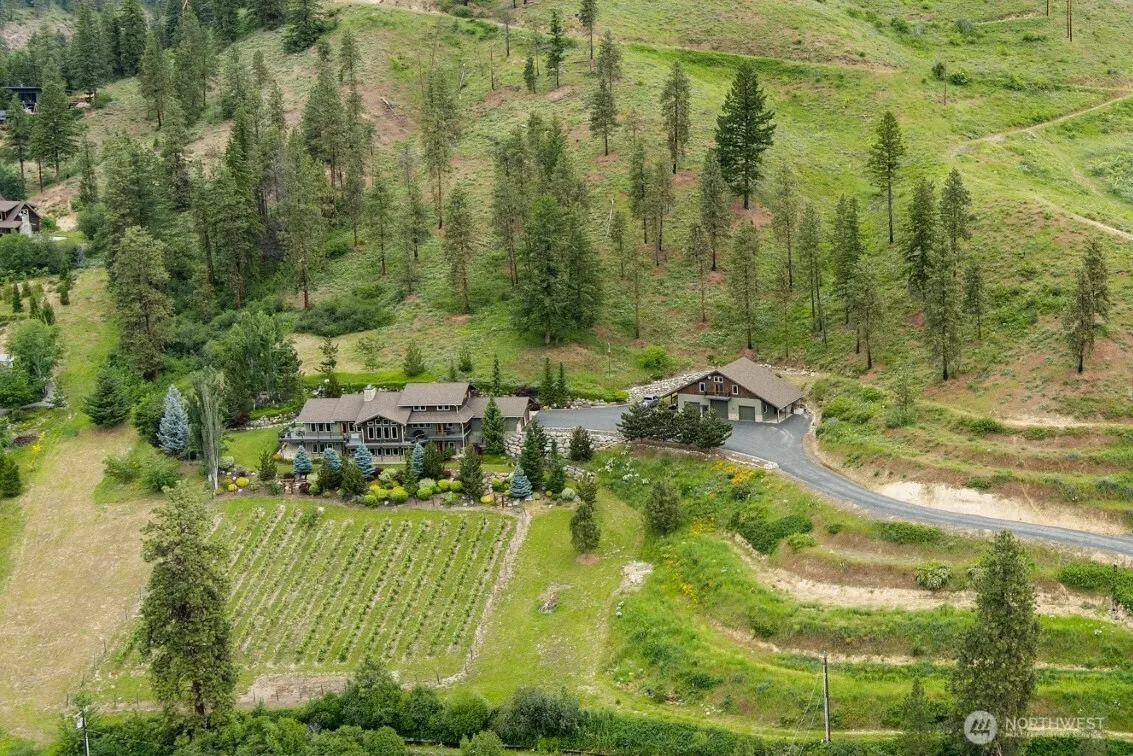 The most spectacular views in the Leavenworth area can be seen from this amazing home. From Tumwater Ridge to Mission Ridge with Leavenworth and the Enchantment Mountains showcased in the center. Custom built by John Zimmerman for the current owner, this place is truly incredible. Inside & out, the property speaks quality. Experience the presence and awe of this 5825 sq ft; 5-bedroom, 3.5 bath, NW Timber Framed beauty. Spacious 1300 sq ft guest house suite located over the three-car detached garage with covered RV storage. Enjoy exploring the spacious 14 plus acre property with private waterfall and vineyard. Then come inside and experience the inviting warmth and beauty this home has to offer.
