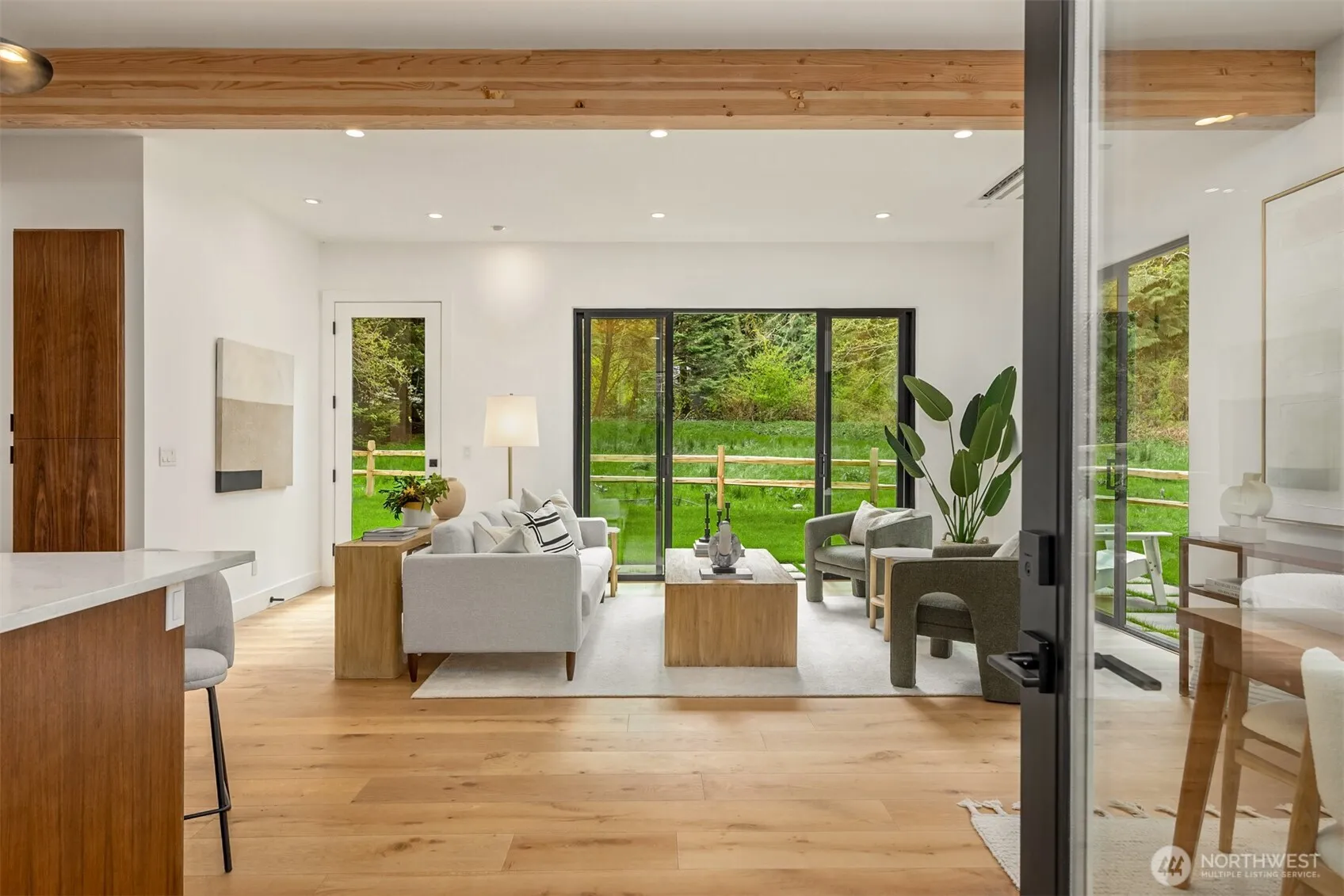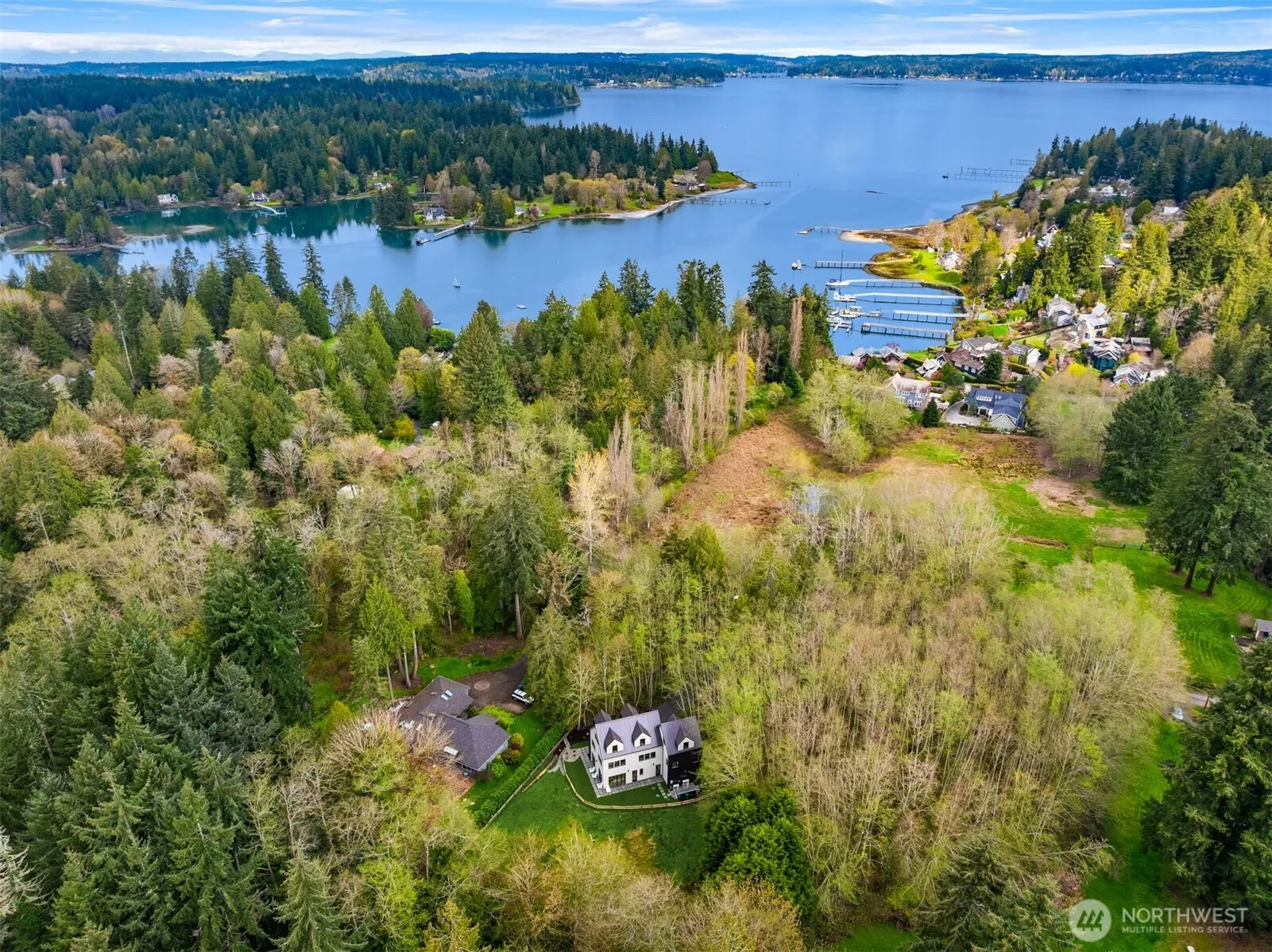 Prepare to be captivated by this striking urban design on coveted Spargur Loop in Port Madison. Sited on 1.03 acres, the dramatic column of windows, richly toned exterior colors & modern, clean design are hallmarks of this special home. The main level flows between living & dining spaces & chef’s kitchen, featuring walnut cabinetry, calcatta premata quartz counters, artfully designed lighting & 3 sets of sliding doors offering indoor/outdoor living. 2nd floor dedicated to primary ensuite w/heated bath floors, walk-in closet, generous sized 2nd bedroom, laundry & sitting room. The light filled 1200 sq ft 3rd level has many options; guest suite, bonus room-your choice! Professionally landscaped low-maintenance yard is private & serene.