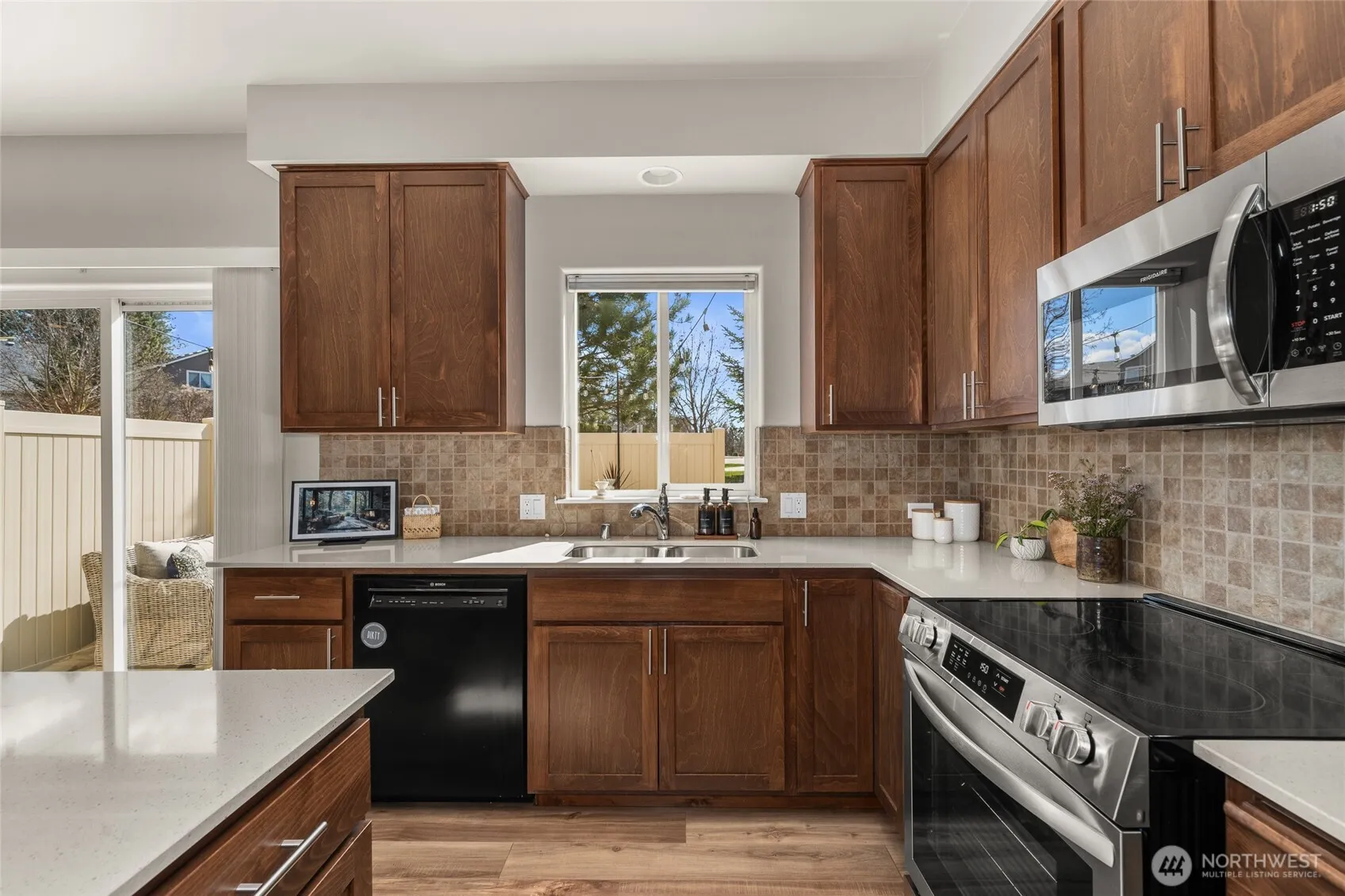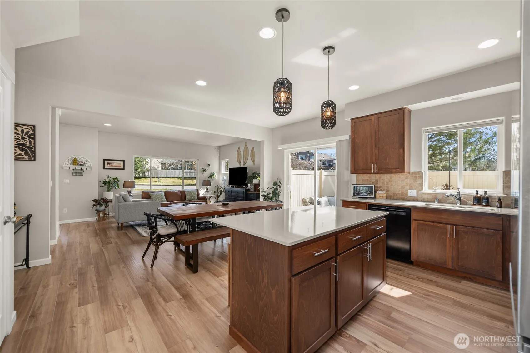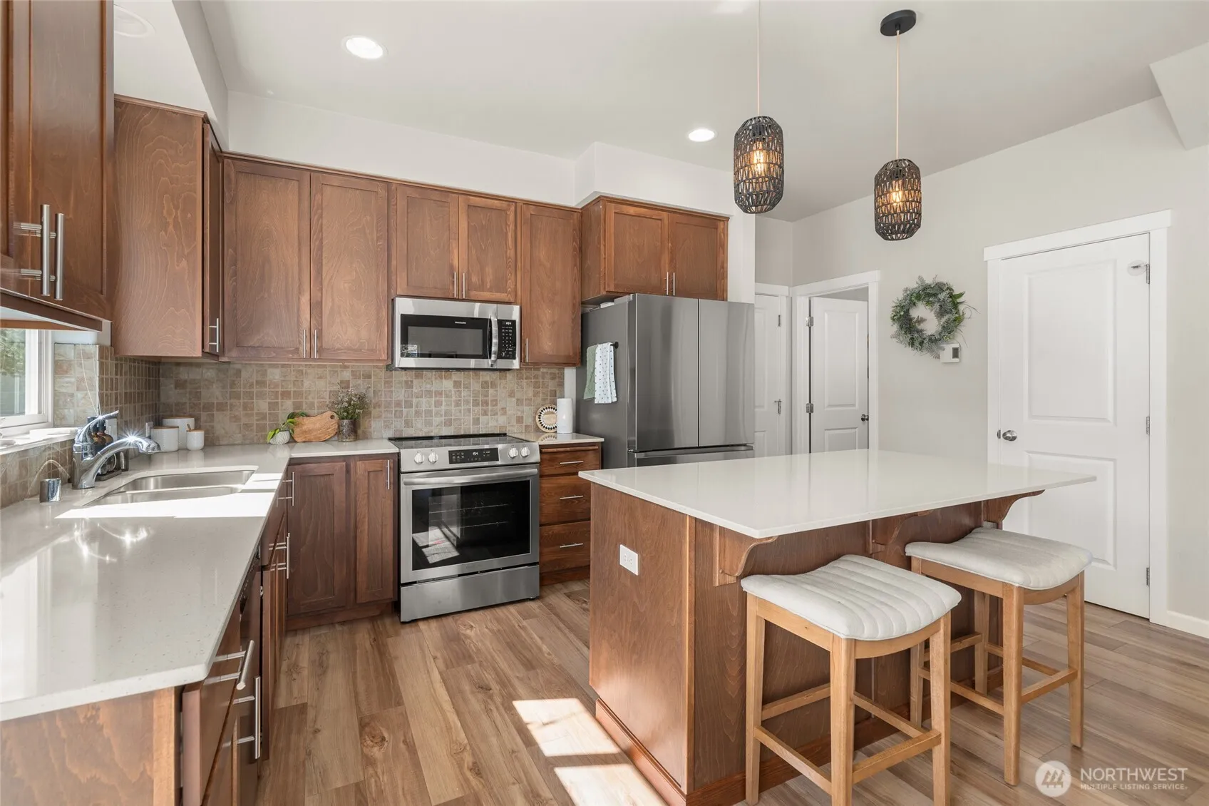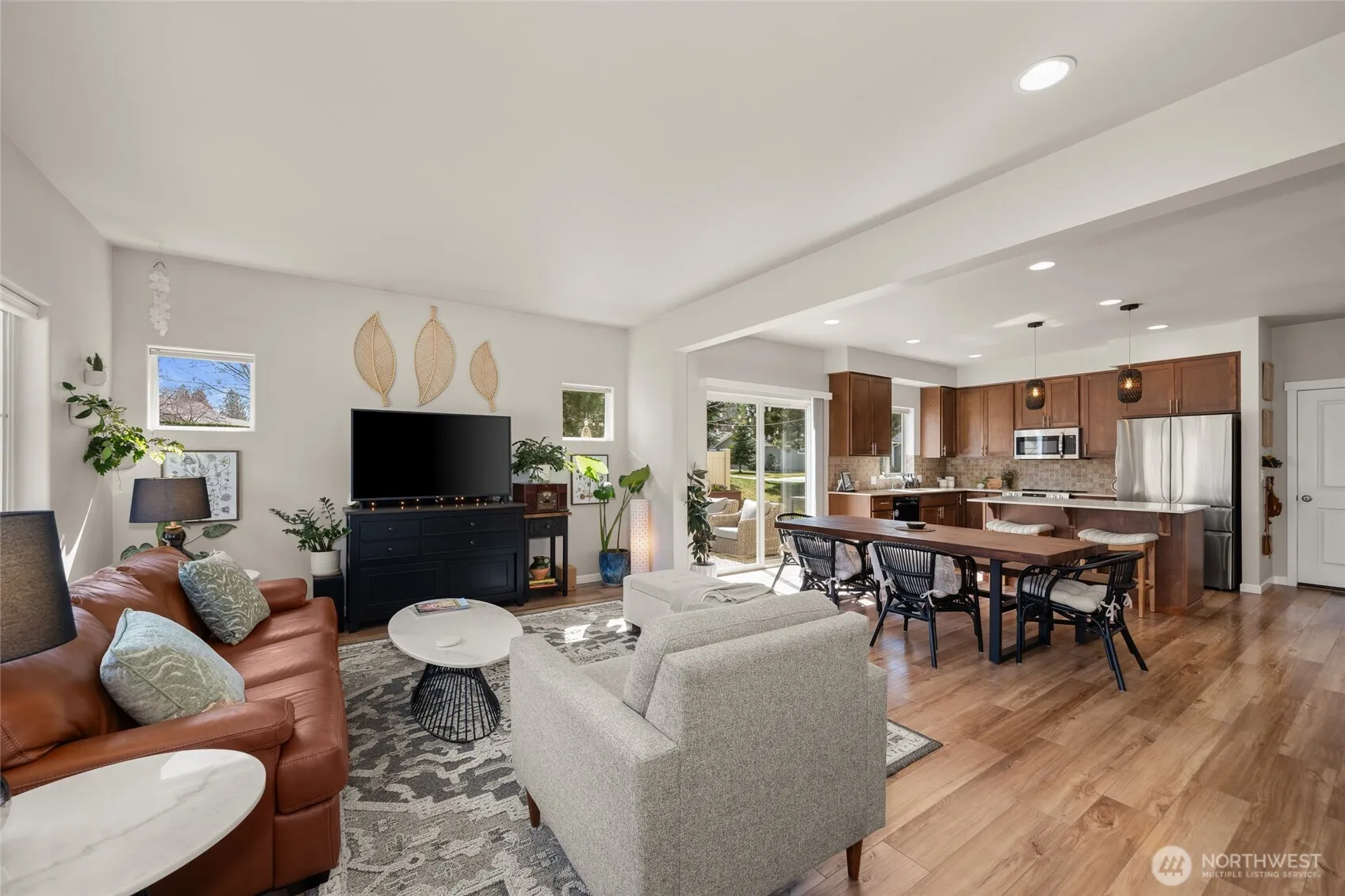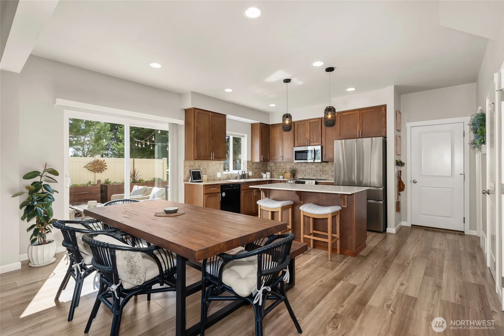 Enjoy low-maintenance living in this 3 bedroom, 3 bathroom luxury townhouse in Ponderosa Ridge with a 2-car attached garage! The main floor boasts an open floor plan w/a light & bright living room that flows seamlessly through the dining room into the spacious kitchen featuring SS appliances, hard surface counters, island, & large pantry complemented w/a main floor bath w/high ceilings & abundant natural light throughout. Upstairs, find a spacious primary suite w/a double vanity & walk-in closet, 2 addtn’l beds, full bath & a convenient desk nook. Step outside & spend your upcoming summer nights relaxing on your stunnning private patio. Conveniently located near schools, restaurants, shopping w/easy access to the bus route & dwntwn Spokane.