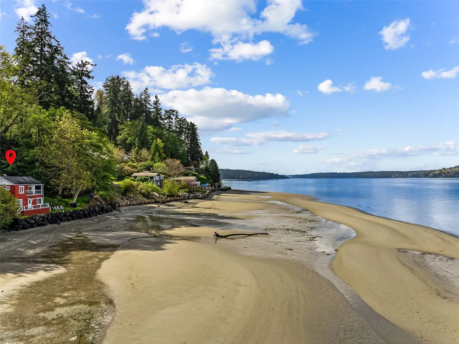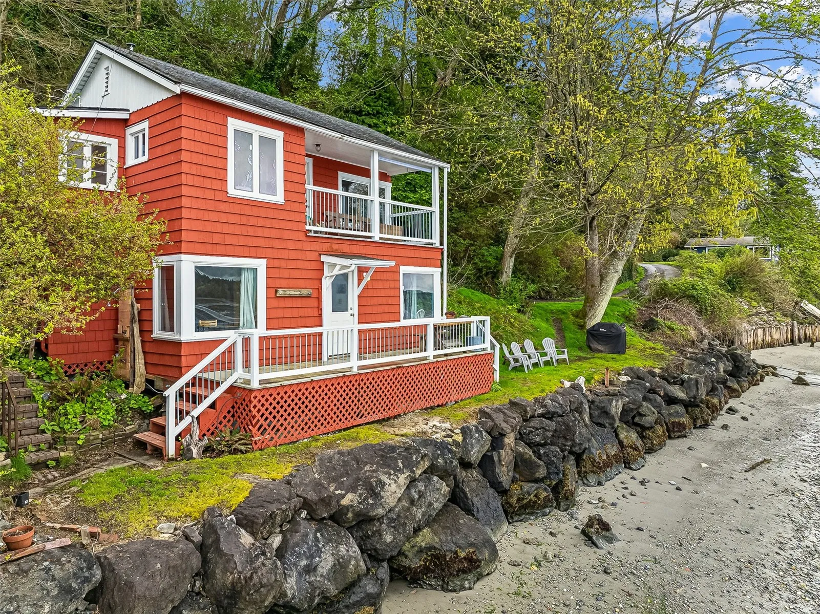 Wonderful 2 bedroom, 1 bath cabin with a spectacular 140′ of low bank, Puget Sound waterfront! Beautiful western exposure sand beach when the tide is out and a plethora of interesting views! Blake Island, Southworth ferry terminal, Olympic Mountains & more. Very private 1/3+ acre lot. NO STAIRS on the driveway side! I cannot overstate how gorgeous the sandy beach & views are. Main level features an updated kitchen, gas stove & eating area. Large living room with a freestanding gas stove + access to the view deck. Full bath with a tile enclosure & a washer/dryer combo unit. 2 bedrooms on the lower level and more decking to enjoy the views. Rock bulkhead! Renovated post & block foundation looks great. 3 minutes to the Vashon ferry!