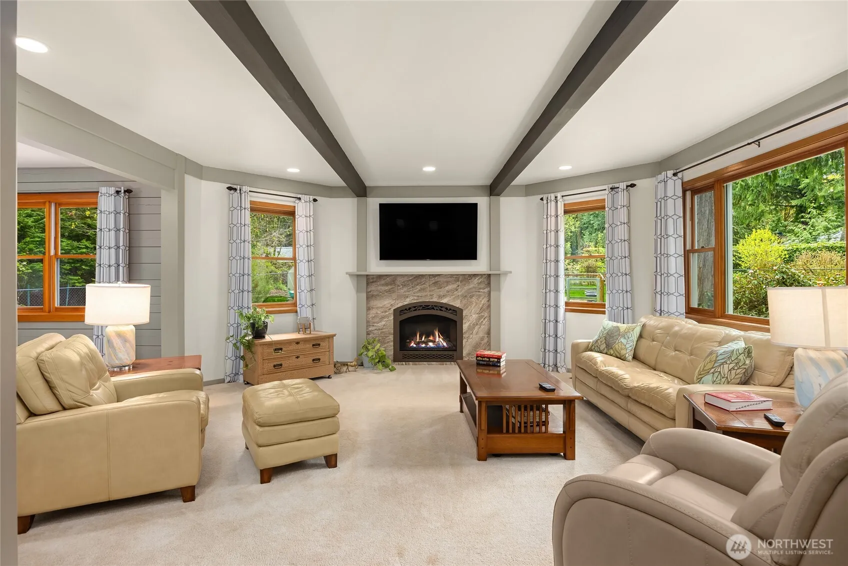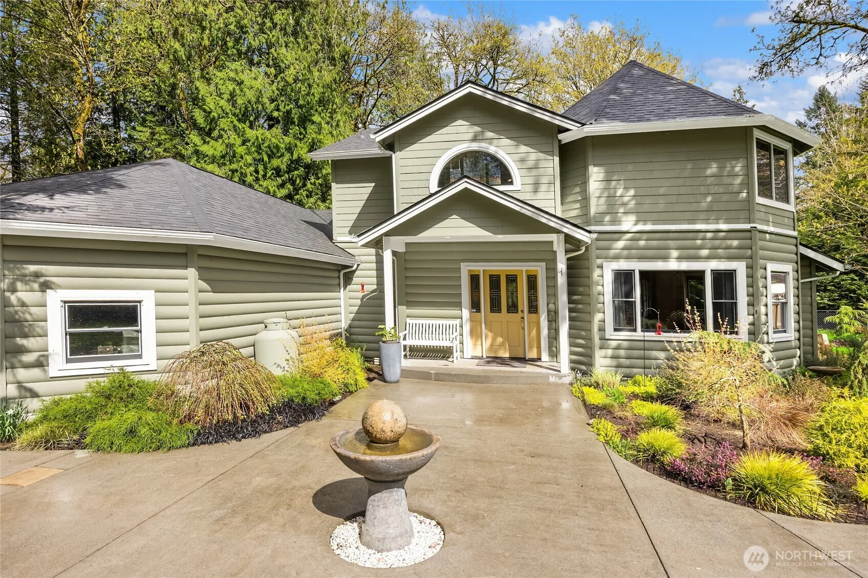 Exceptional home near the ferry and Winslow, set on a fully fenced, sunny, level, and private lot. Beautifully maintained with well-designed indoor and outdoor living spaces. Remodeled kitchen boasts luxurious finishes with generous counter space, high-end appliances, and a walk-in pantry sure to delight any chef. Spacious laundry room on main plus a bedroom and full bath. Upstairs, the ensuite primary includes a private balcony and walk-in closet. The oversized garage includes room for a shop, parking for 2 cars, and an upper level for storage. Expansive deck invites al fresco dining, while fenced raised gardens and a greenhouse await your green thumb. A perfect blend of comfort, elegance, and convenience in a prime Bainbridge location.