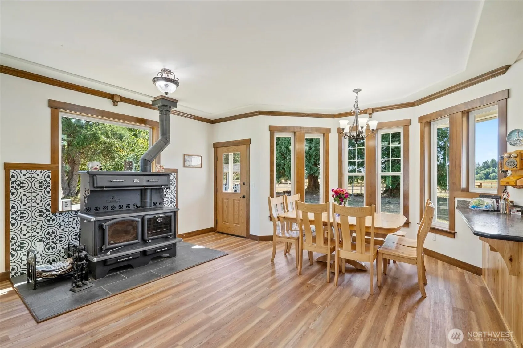 Dreamy Equestrian Property & Home .Newer Victorian Style home w 3 bedrooms & 3 bathrooms, New Vinyl Plank flooring & interior paint. Lg great room w wood cookstove, recessed Ceiling & crown molding. Kitchen w Hickory cabinets, Lg walk in pantry ,Pendant & under cabinet lighting. Dining with a pasture view. Family room/library with oodles of beautiful shelving & Library ladder, Built-in window seat door to back covered patio. Lg Primary bedroom with Lg walk-in closet, En-Suite with tile floor, claw foot tub & DBL Shower. Auxiliary building with kitchen, bathroom & utility great for guests or game rm. Large Pond w waterfall & eating area, gazebo for BBQs, Covered hot tub, Tree house & play house Detached garage, Shop, Barn 8 Stalls Tack room