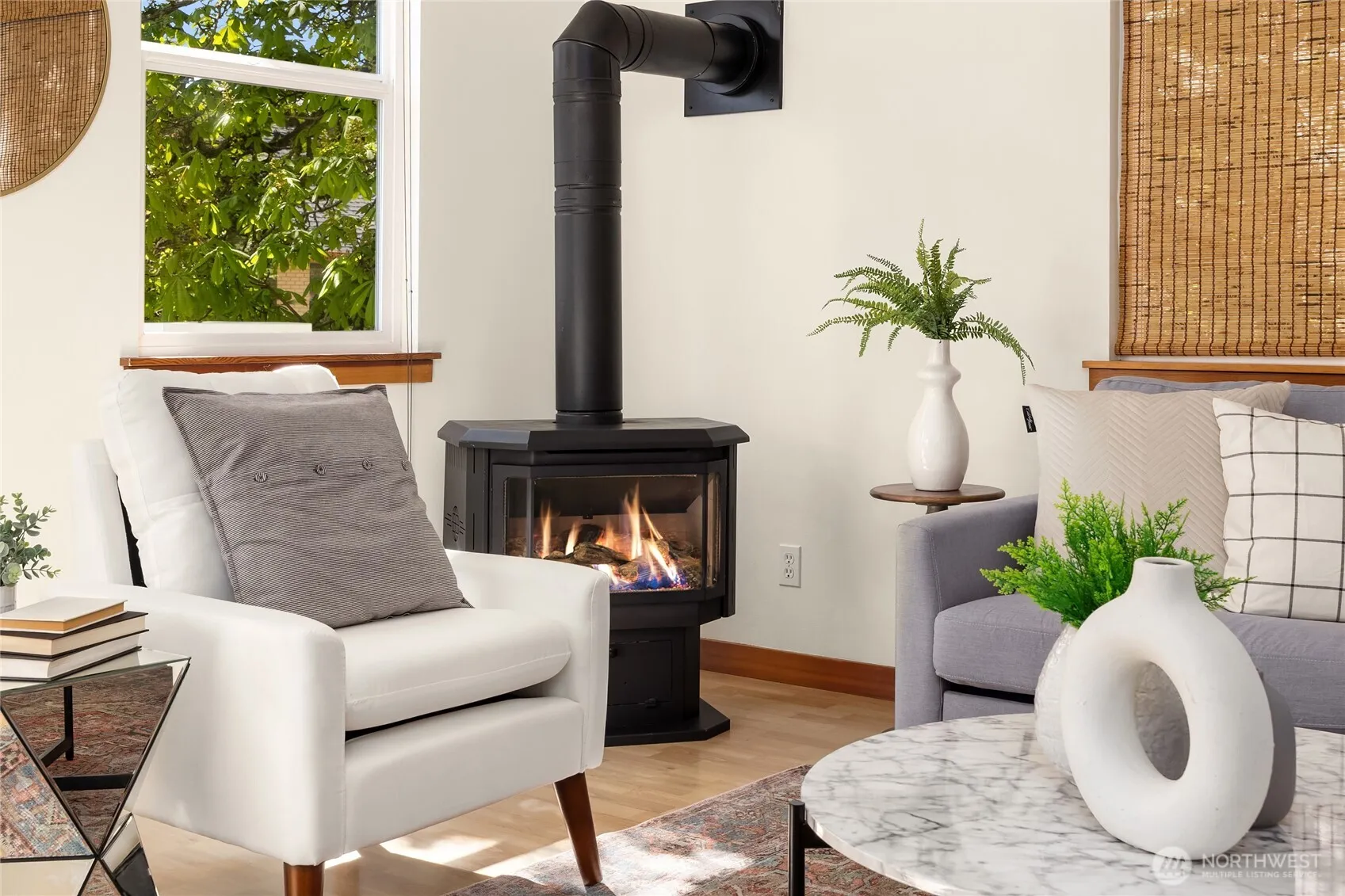 Imagine yourself living close to downtown Winslow: restaurants, shops, ferry, theater, gym, museums, schools & library are all a short distance away. If this sounds like your dream property then this free-standing Winslow Mews townhome is for you! This 2BR, den/flex space, 2.25 baths, with an attached 2 car garage and side yard is lightly lived-in and well-maintained. Natural light streams into the main floor from both S and W. Sit outside on the balcony deck while sipping your favorite beverage. On cooler days/evenings congregate around the propane fireplace. Gather in the kitchen (with large pantry) and adjacent eating area. Shared generator. Space for a potential elevator. Dogs/cats allowed. Rental cap currently below maximum.
