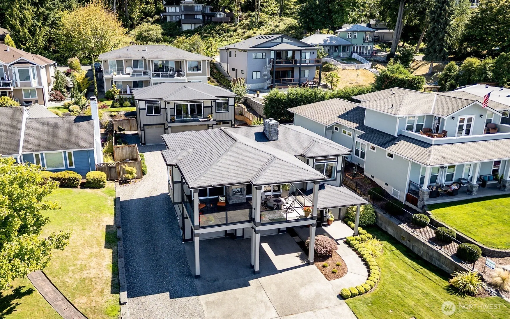This architectural gem commands panoramic views of Puget Sound, Olympic Mountains & Narrows Bridge. Main residence showcases sophisticated design elements & recent renovations that enhance its contemporary appeal. The expansive view deck featuring dual entrances & cozy fireplace is perfect for enjoying breathtaking sunsets. Behind the primary residence you’ll find a 4-car garage with a convenient 1/2 bath. Above the garage showcases a flex space including 1 bed, 1 bath, kitchenette, great room & private deck with a scenic view. Embrace the tranquil lifestyle of Washington’s oldest incorporated town. Enjoy Sunnyside Beach, world-renowned Chambers Bay Golf Course, quaint downtown district & the intimate charm of small-town coastal living.