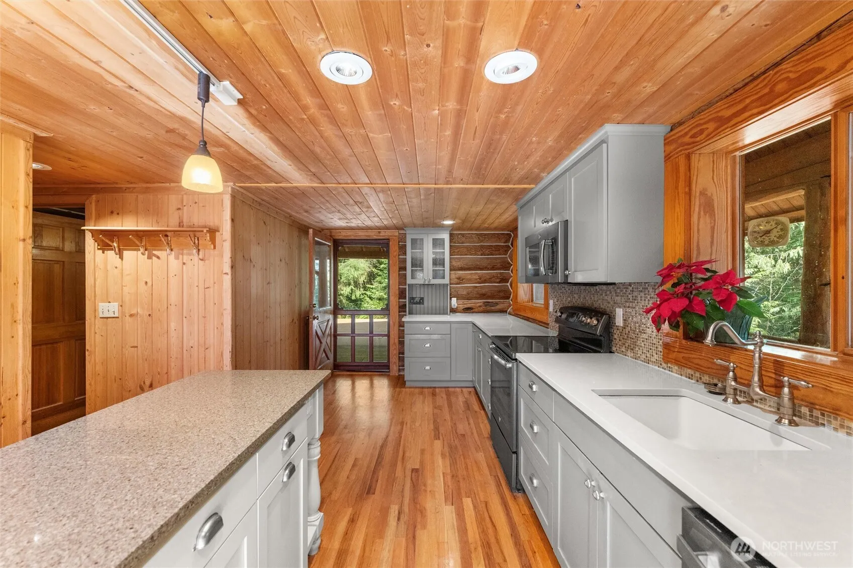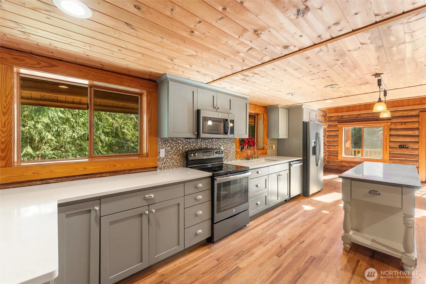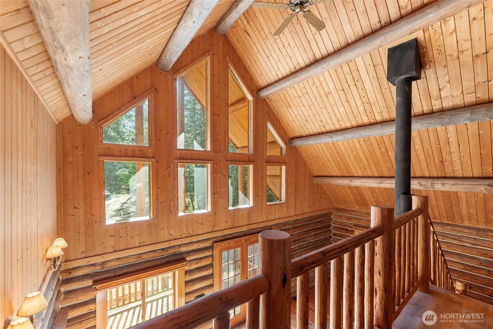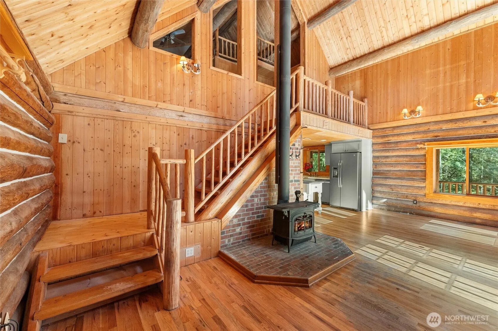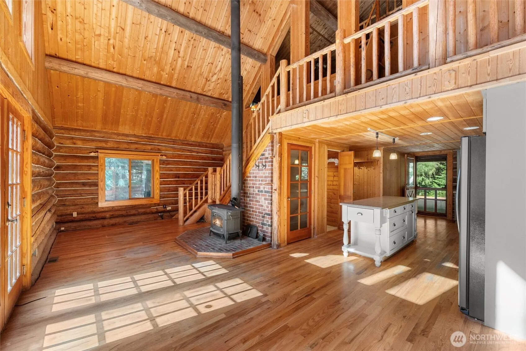 Discover the charm of this custom-built, one-owner log cabin nestled among hemlock & cedar trees on 2.4 acres. Inside, you’ll find a main-floor bedroom & bathroom, updated kitchen, a master suite loft with its own full bathroom and a hidden book nook/loft. A large daylight basement offers a functional workshop & ample storage throughout. Cozy up by the fireplace or enjoy the serene beauty of nature from the expansive 3/4 wraparound deck and an additional multi-level deck near the peaceful pond. Also featuring a whole-home water filtration system, heat pump and AC. A true retreat you’ll love to call home!