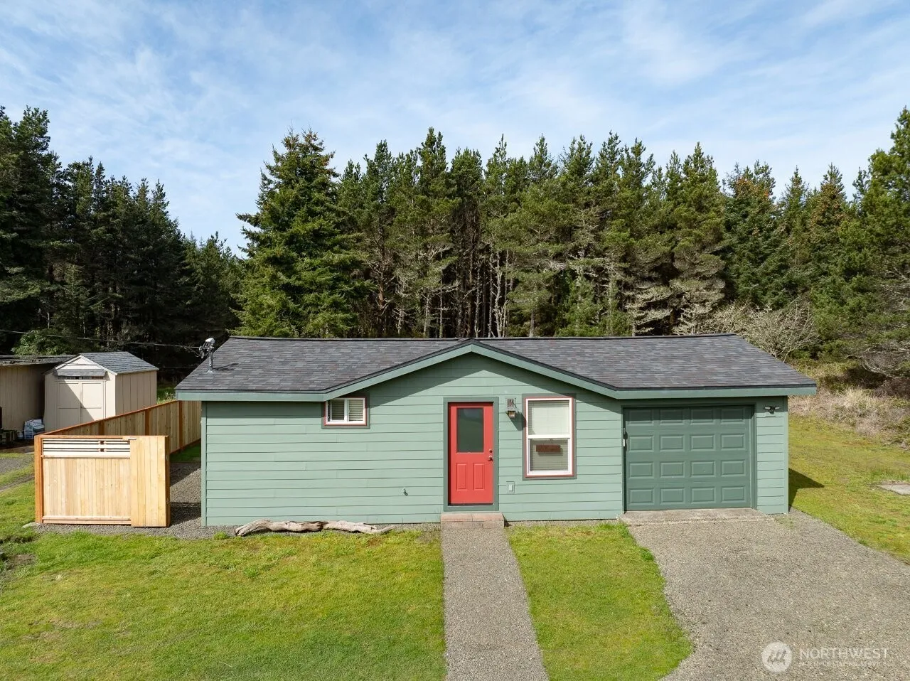 1.2 Acre ocean view property containing a 1-bedroom 1-bath 520-square foot home that has been completely rebuilt from the studs out, including flooring, wiring, plumbing, insulation, walls, roof, cabinets, fixtures, appliances, exterior siding paint, and fencing. This recently surveyed property has a second building site on the extreme western edge of the property. Use the existing home until your ocean view dream home can be built, then turn it into a guest cottage. Pacific County Rural Residential Zoning allows for a second home, short-term rental and horses. Walk out the beach trail to see the Ocean View Home Site.