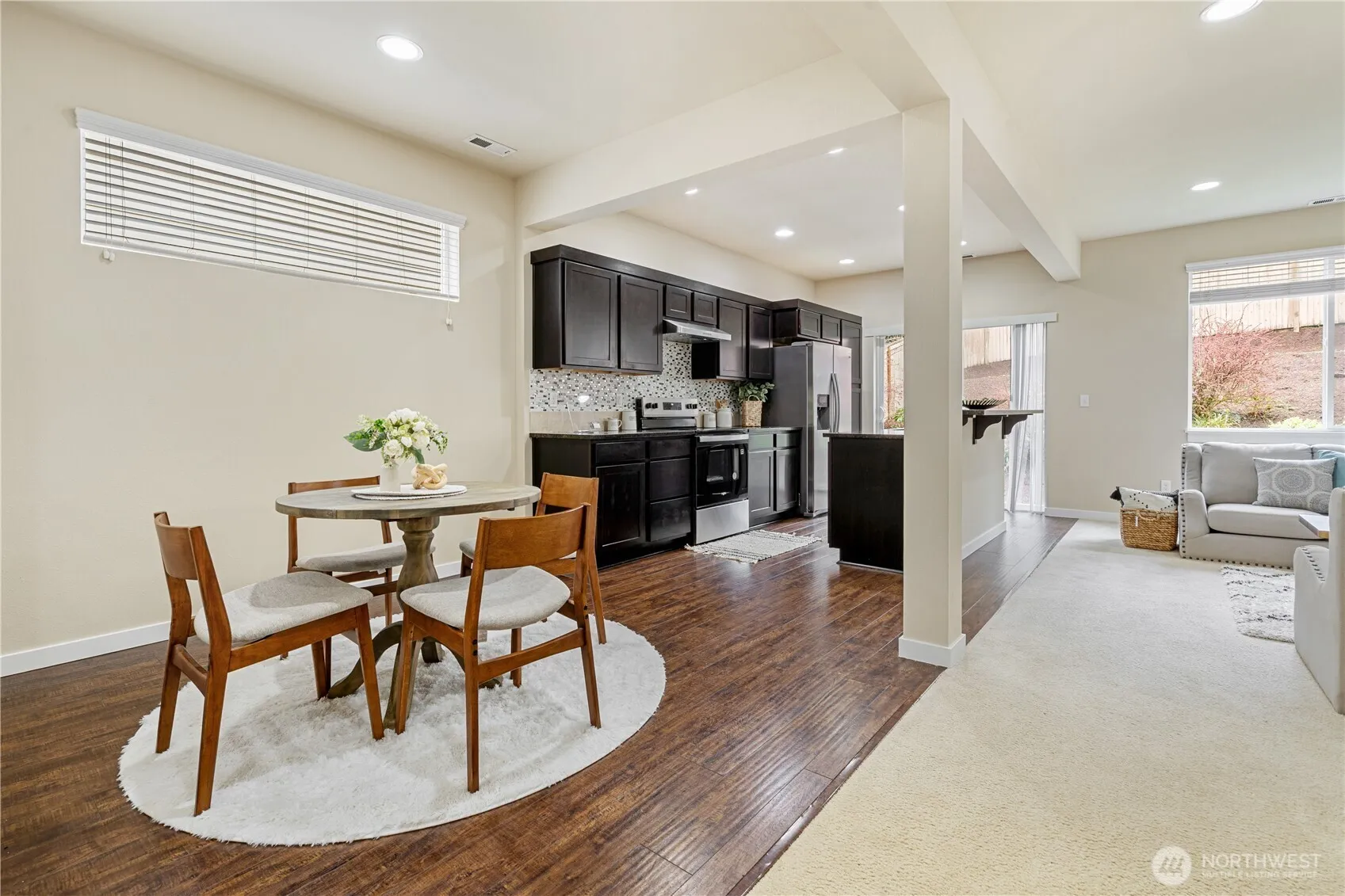 Beautiful and better than new, this move-in ready home offers breathtaking Cascade Mountain views. Located in the desirable Mountain View community, it features thoughtfully designed interiors with granite slab countertops, elegant laminate hardwood floors, and new interior paint. The kitchen includes a new range and stainless-steel appliances. The spacious primary suite offers a luxurious 5-piece bath. Includes a new washer and dryer, and a beautifully landscaped backyard with a spacious patio—ideal for both relaxation and entertaining. All within the highly rated Tahoma School District. Pre-inspection report available upon request after showing.