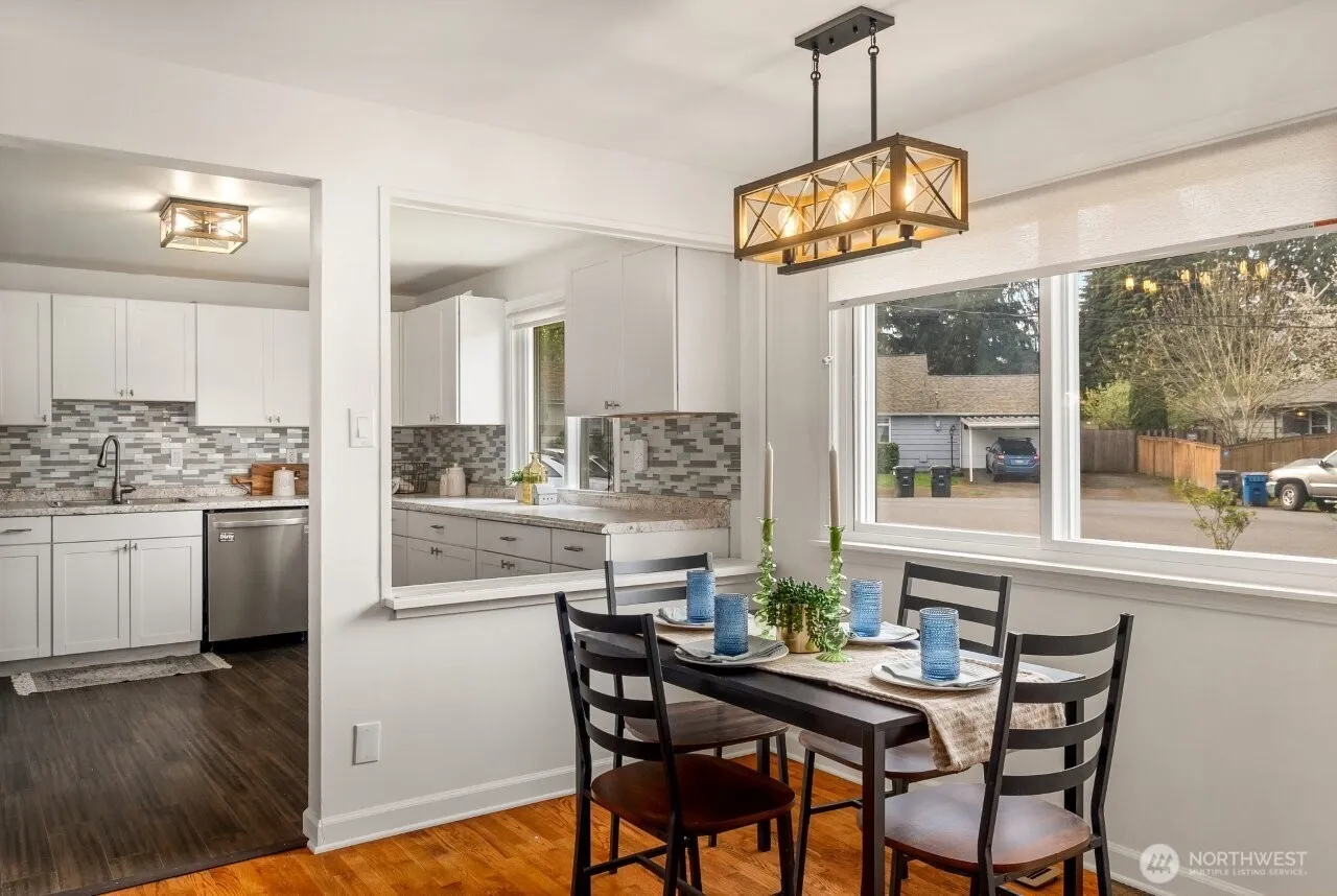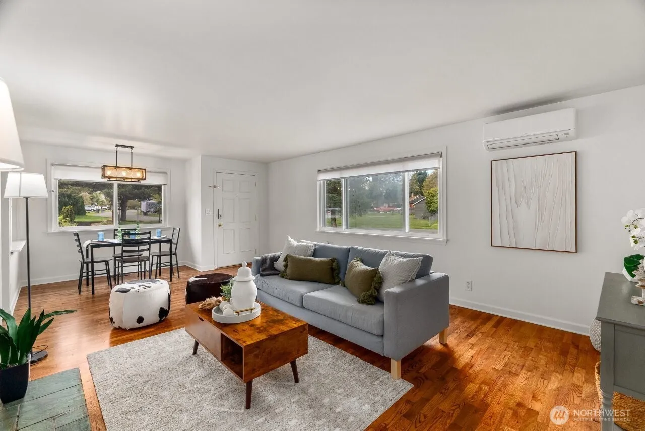 Perfectly located for easy commuting to Seattle, the Eastside or Tacoma, this charming 3 bedroom + den (or 4 bedroom) home offers 1,280 sq ft of comfort on a spacious fenced lot–ideal for play, pets, gardening & BBQs. Featuring beautifully refinished hardwood floors, fresh interior paint, new light fixtures plus a large updated kitchen you will absolutely love, updated bathroom, & a 3 head ductless heating/cooling system. The newer roof adds peace of mind, while the garage w/ shop area is perfect as a workshop, exercise room, or for hobbies or storage. Walking distance to Angle Lake Light Rail! Catching a flight? An amazing just 10 minutes to the airport—but still not in the Sea-Tac flight path. A true gem in a prime location!