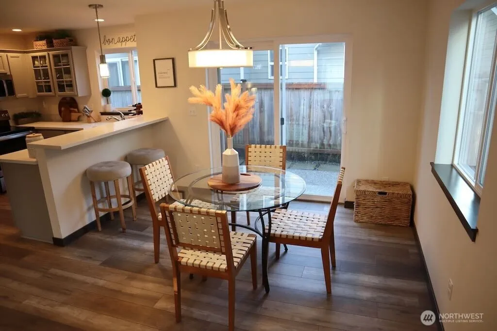 Welcome to this stunning 3-bedroom, 2.5-bath home in the highly sought-after Braidwood Village II. Step inside to find elegant Luxury Vinyl Plank flooring that flows seamlessly throughout the open-concept main level. The stylish kitchen boasts sleek quartz countertops, stainless steel appliances, and a modern design perfect for everyday living and entertaining. Comfort year-round with energy-efficient ductless mini-splits. The spacious primary suite with vaulted ceilings offers a private en suite bath and a generous walk-in closet. Two additional well-sized bedrooms provide comfort for guests or a home office. Enjoy the charm of a fully fenced backyard with a cozy patio and secure pet area—ideal for relaxing or entertaining.
