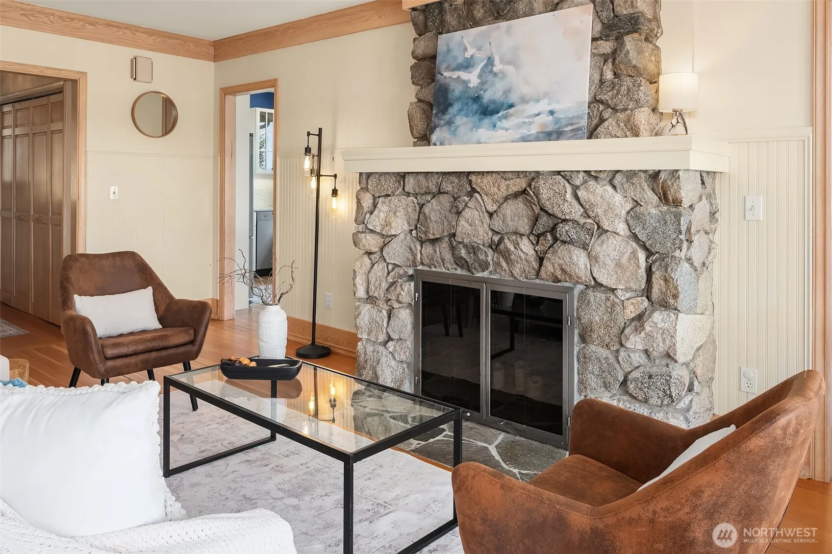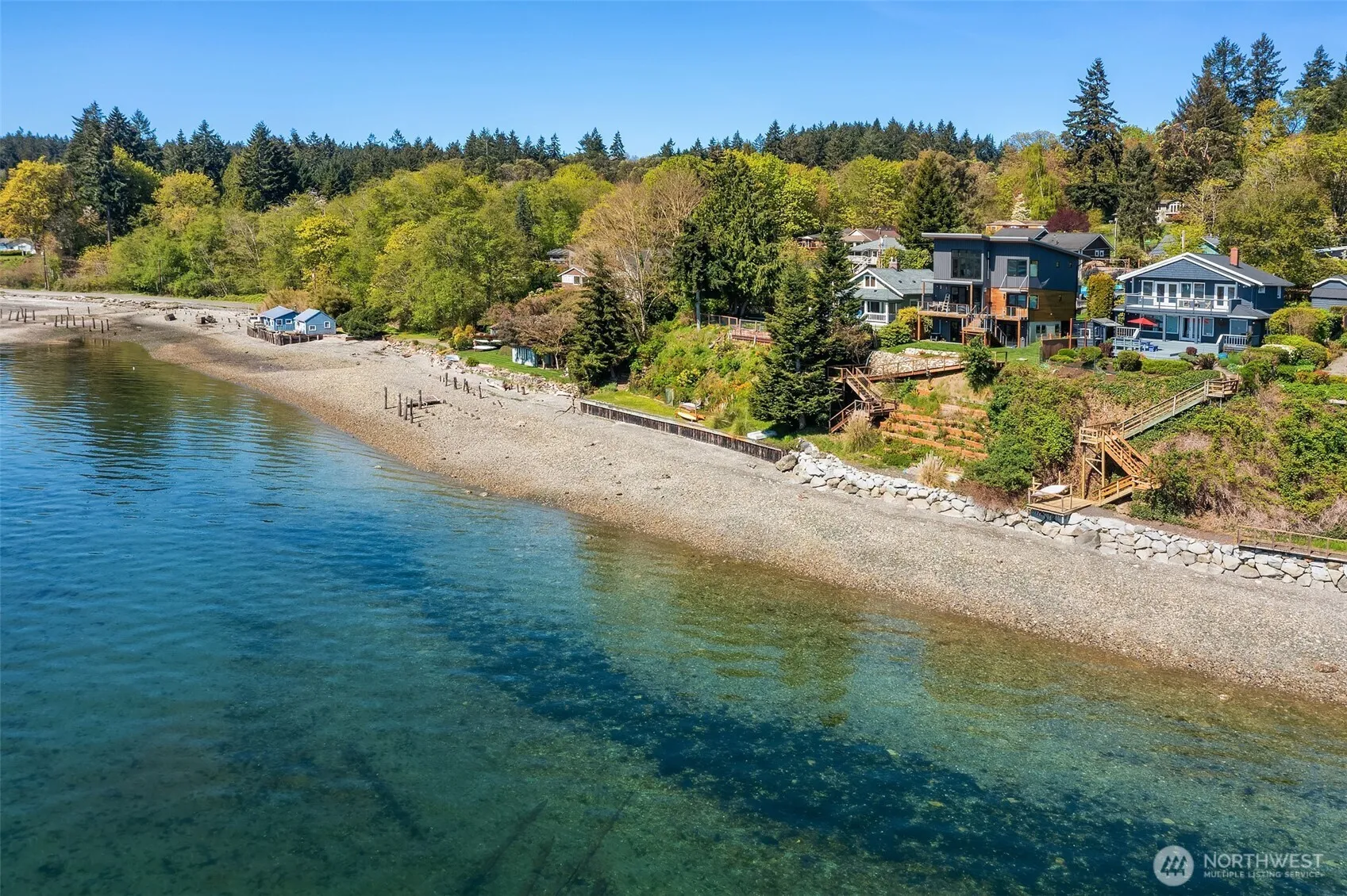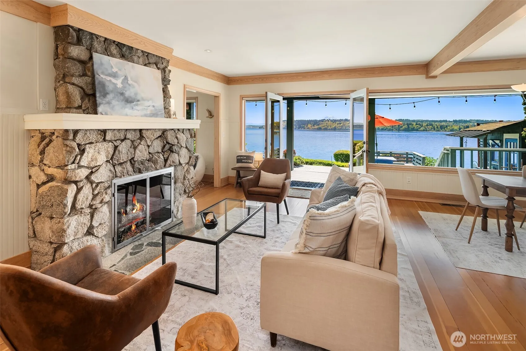 This completely reimagined 1917 beach cabin blends timeless charm with modern comforts, offering some of the best light and most expansive views on the island—spanning Puget Sound with Mount Rainier front and center. Set above 55 feet of medium-bank waterfront in one of Vashon’s most treasured beach enclaves, it’s just steps from the island’s finest sandy beach at KVI. Thoughtfully restored, it features fir floors, a brick fireplace, cozy library or office, and a designer kitchen with Carrara marble and Dacor appliances. The primary suite features a soaking tub and walk-in closet. Master gardener-designed grounds, fruit trees, a shop, and serene outdoor living spaces complete this soulful, sun-filled retreat—close to town, yet a world away.
