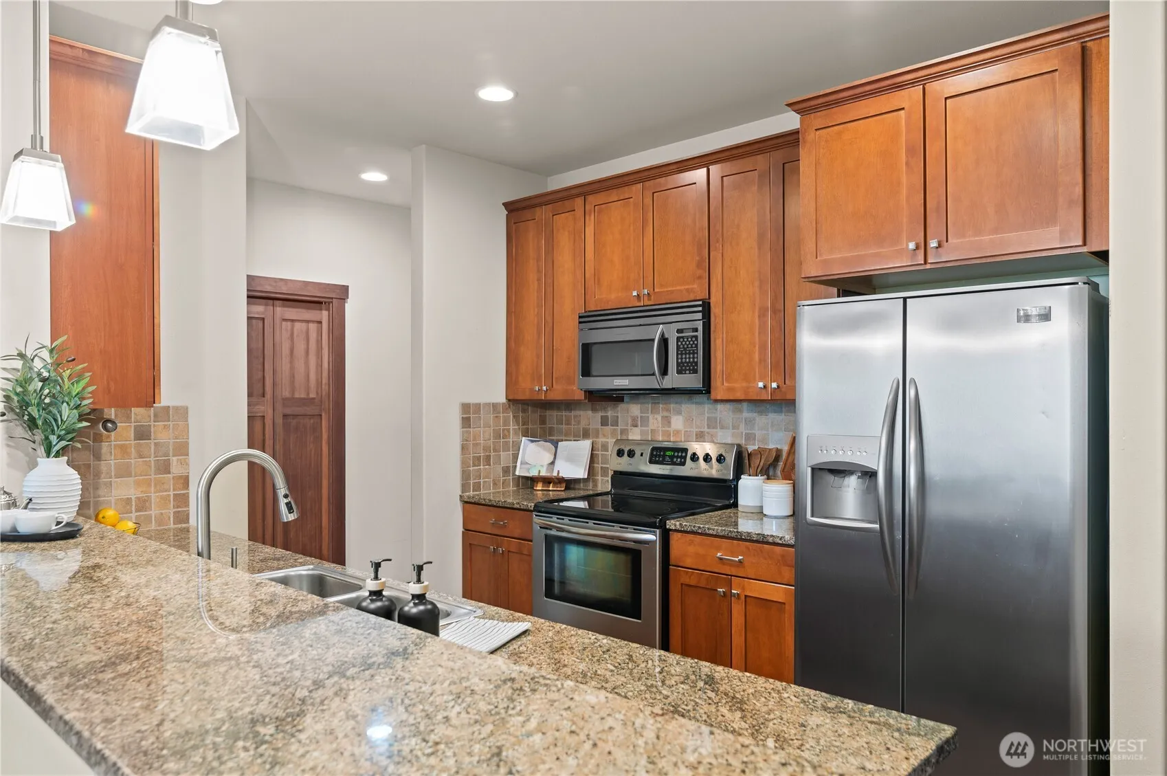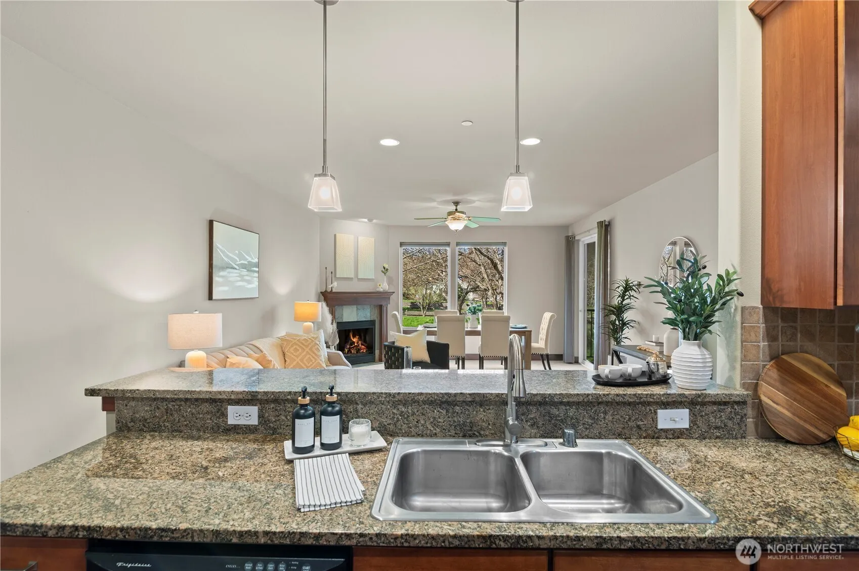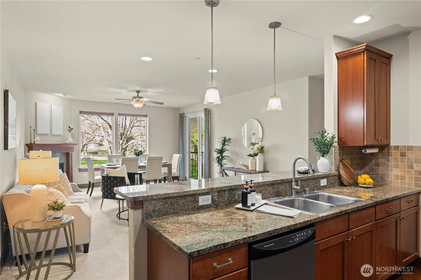 Charming condo living in the heart of Anacortes. Beautifully maintained 2-bedroom, 1.75-bath condo offering comfort, convenience, and coastal charm. Nestled in a peaceful, well-kept community, this home features open-concept living with high ceilings bringing abundant natural light, a cozy fireplace, and a private balcony—perfect for relaxing or entertaining. The spacious primary suite includes a walk-in closet and attached 3/4 bath, while the second bedroom is ideal for guests or a home office. Enjoy in-unit laundry, ample storage, and dedicated parking. Complex has elevator for easy access. Located just minutes from downtown shops, restaurants, parks, and the ferry terminal, this is your gateway to island living & the best of Anacortes!