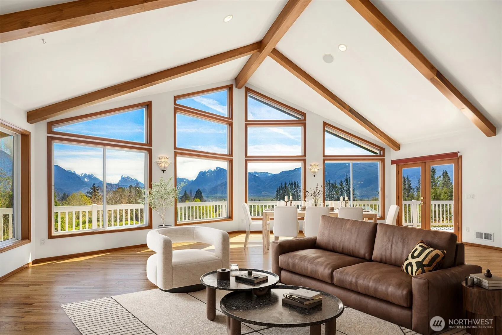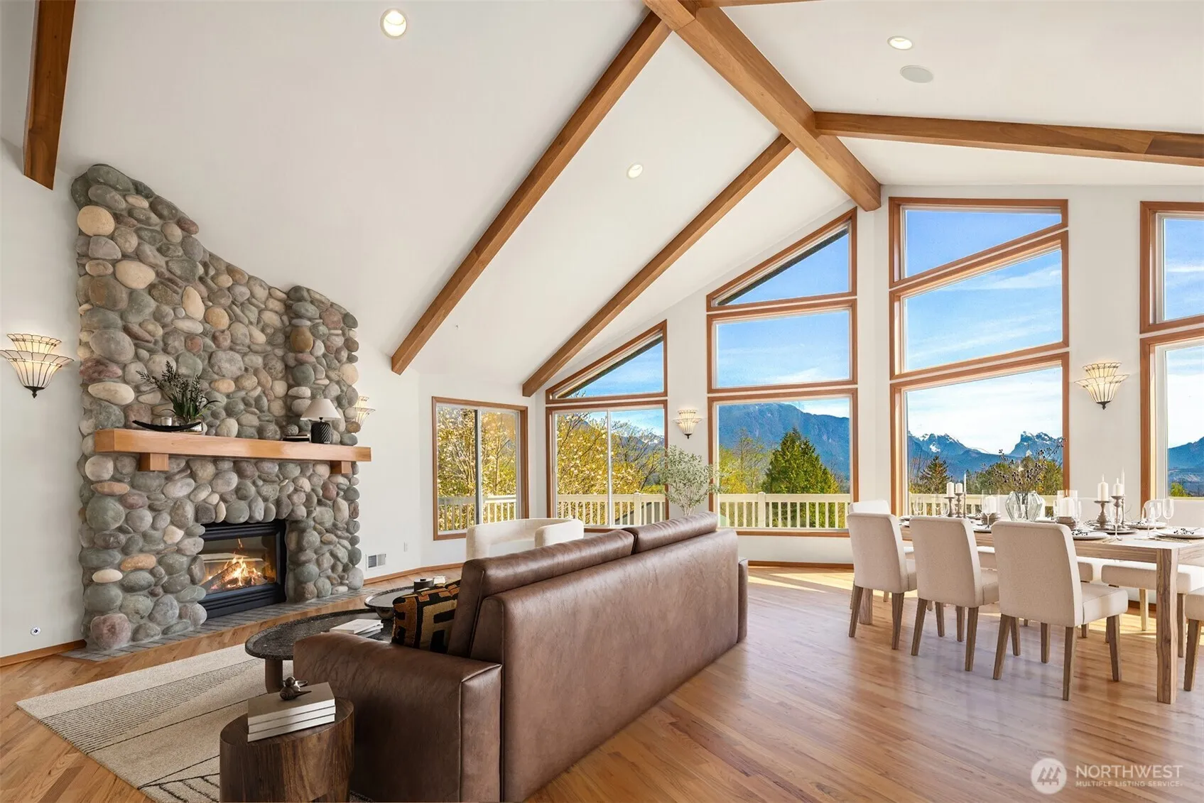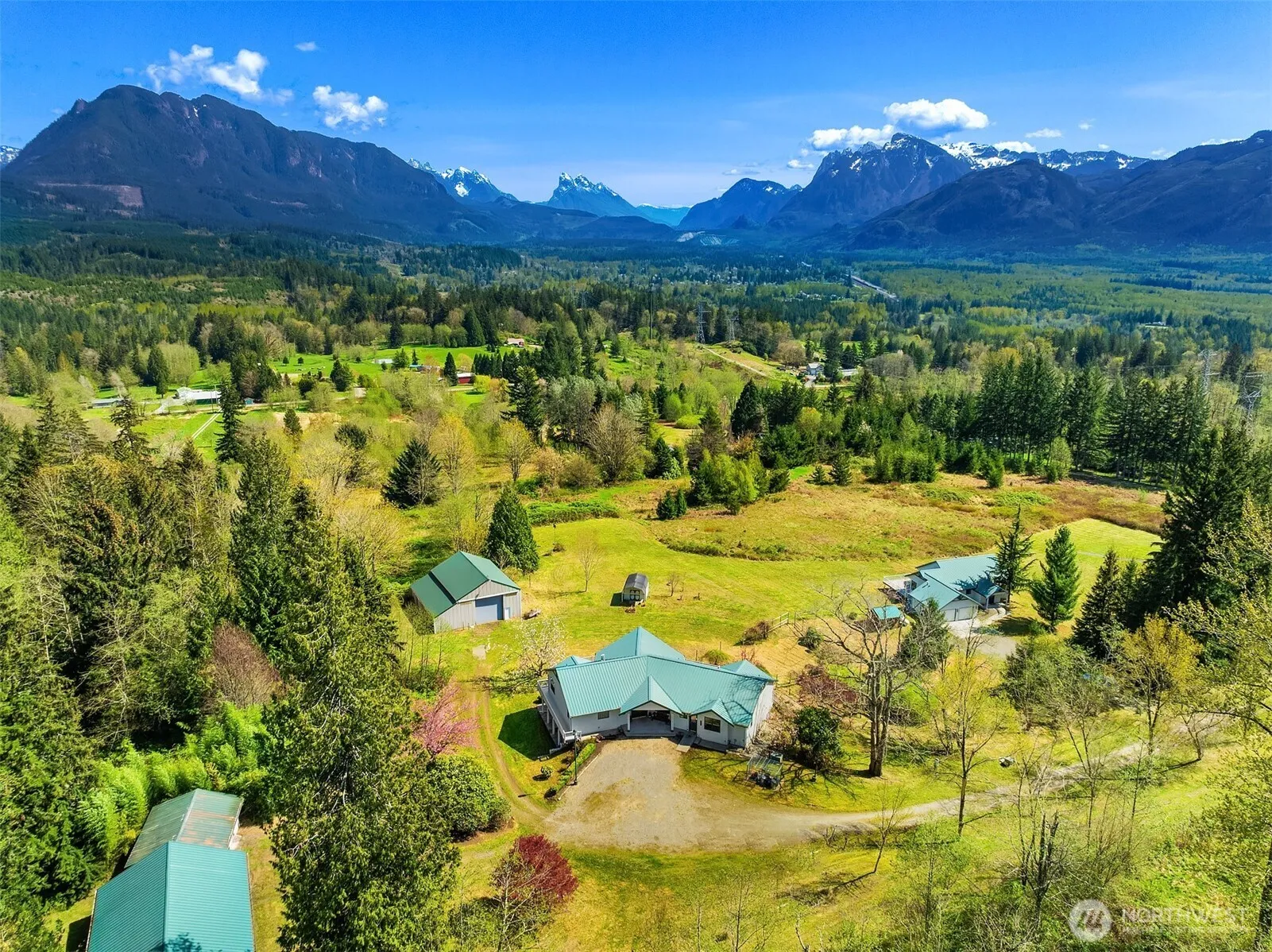 This property is a Pacific Northwest dream come true! Privacy, fresh air and stunning Cascade mountain views on 16+ acres. Perfect setting for various uses such as co-op homesteading, retreat center/venue or multigenerational living. There are two homes, multiple garages and a large shop with car lift and barn stalls. The main house has 4 beds + den, 3.5 baths with kitchens and laundry on each floor. The smaller cabin has 2 beds, 2 baths and a 2 car garage. Both homes have waterproof decks, metal roofs and breathtaking views. Invite your friends to explore the trails and gardens, fish in the ponds and stay all week with RV hookups. This is truly a remarkable property filled with wildlife and the opportunity to relax or indulge your hobbies.