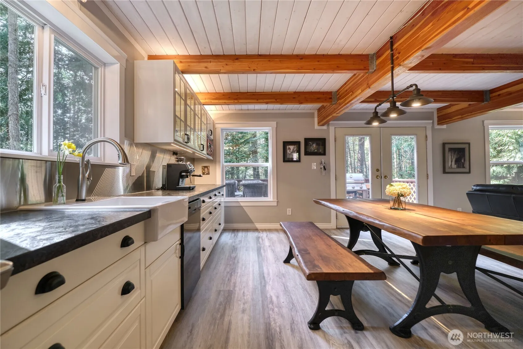 Introducing one of Point Roberts’s unique gems, a sensational PNW picturesque cabin nestled amongst the trees on tranquil Claire Ln. This turn-key property offers high-quality finishes throughout and features 2 beds and 2 baths. This home has recent upgrades including a metal roof, an open concept kitchen with custom granite countertops, and luxury waterproof vinyl flooring on the main with heated floors. The striking exterior highlights cedar siding, a covered front porch to enjoy the morning sun, and a deck with western exposure to take in the sunset and peek-a-boo ocean views. Private yard that was professionally landscaped and has two storage sheds. The perfect retreat or full-time residence just across the road from Lily Point Park.