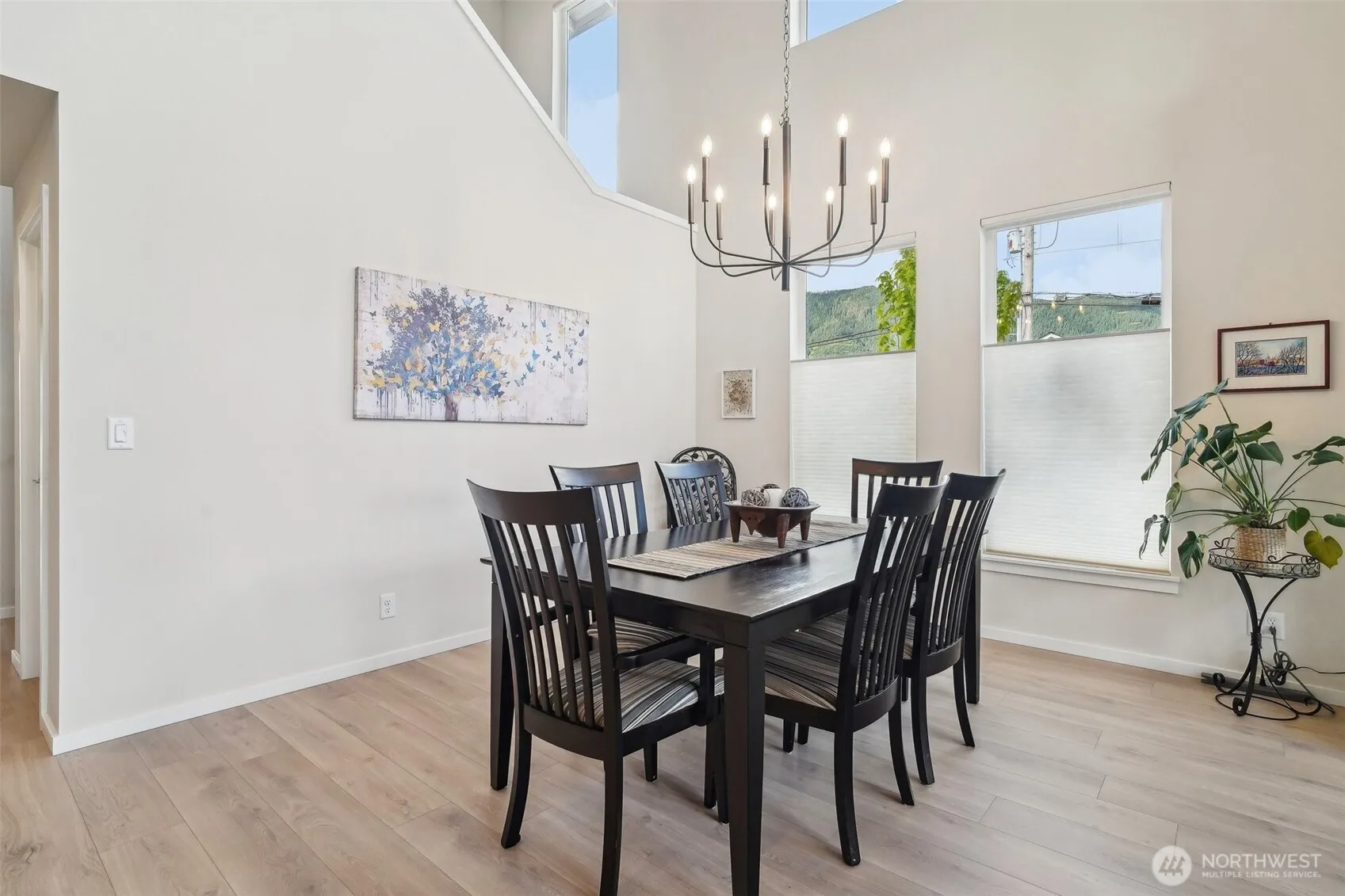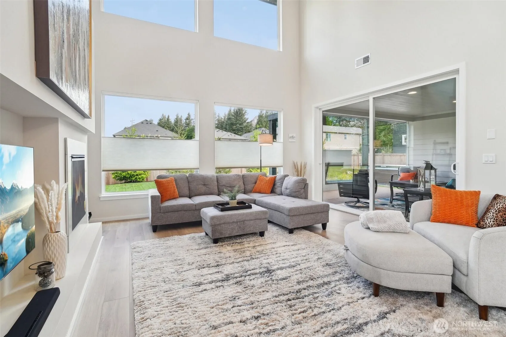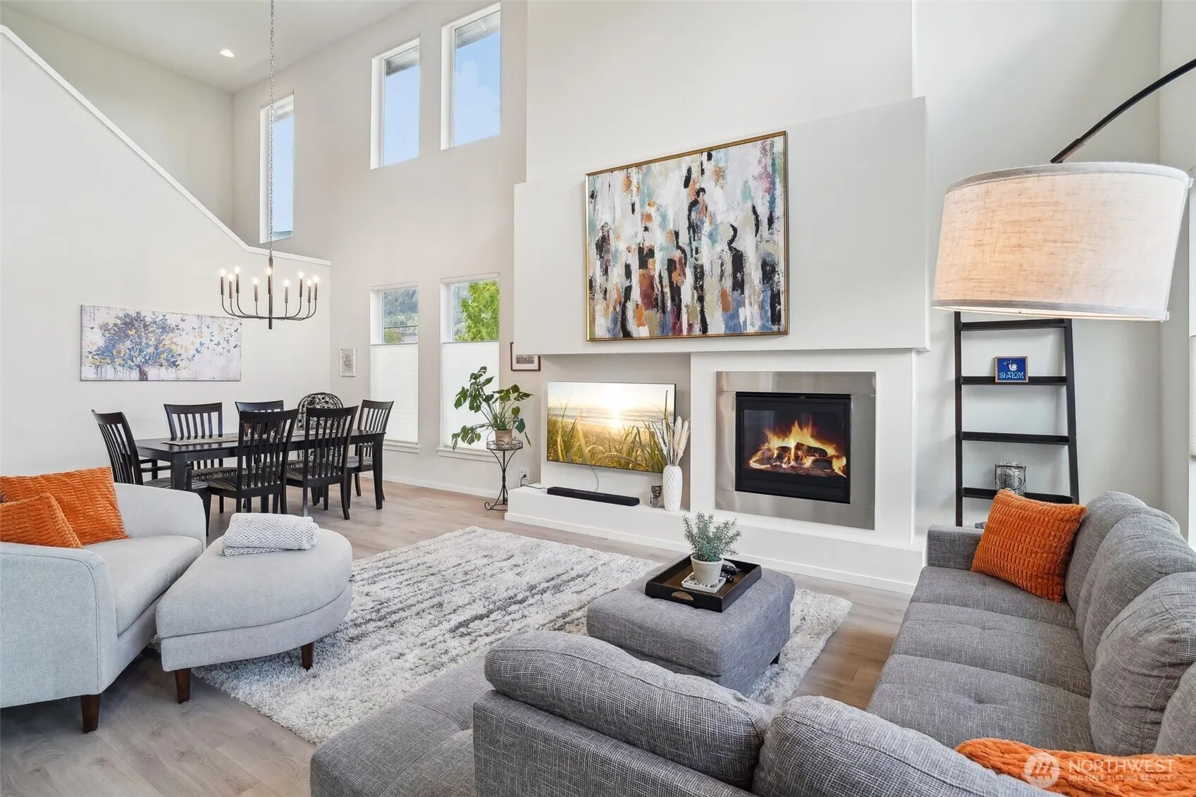 Experience modern luxury in the Ivy model by MainVue Homes, just minutes from downtown North Bend. Surrounded by breathtaking mountain views, this exceptional home features a vaulted great room filled with natural light. The main-floor primary suite offers a peaceful retreat, ideal for multigenerational living. Designed for seamless indoor-outdoor enjoyment, the Trex deck includes a fireplace, Infratech heater, and Sundance Maxxus hot tub beneath a Covana cover. Thoughtful upgrades include Hunter Douglas electric blinds, Closet Factory built-ins with LED lighting, generator ready + EV charger.