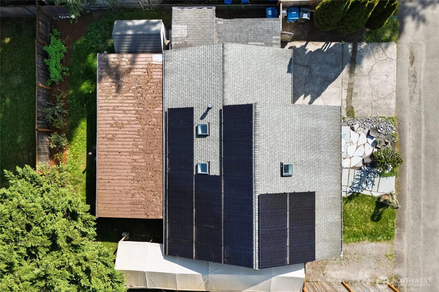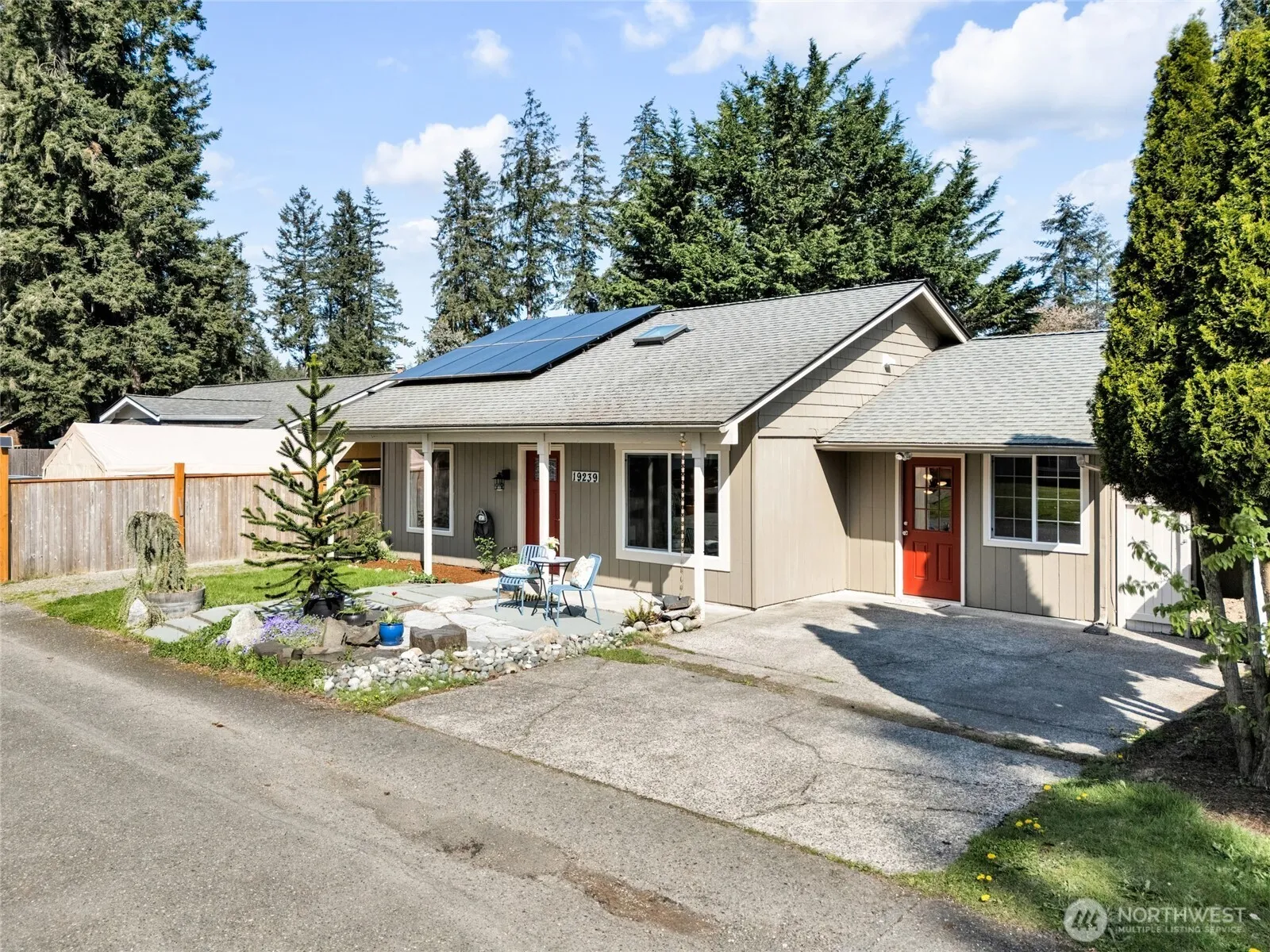 Charming rambler (with solar!) in the Timberlane community of Covington. Inviting living room with vaulted ceiling & large picture windows welcomes you in. The spacious kitchen features newer cabinets, butcher block countertops & high-end stainless appliances, including gas range. Three bedrooms plus a beautifully renovated bath with walk-in shower. Generous family room with private entry offers bonus, media or play space + storage. Low maintenance wood laminate floors throughout. Energy efficient solar panels with battery backup keep utility costs low. Fully fenced yard surrounds a large covered patio area & garden shed. Plenty of off street parking. Enjoy nearby community clubhouse with private outdoor pool, playground & basketball court!