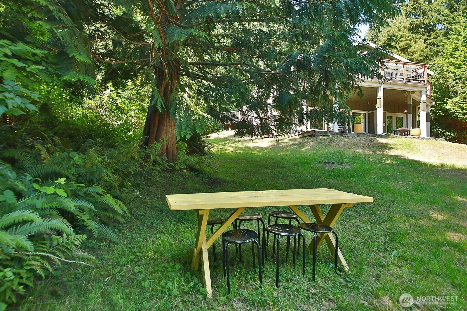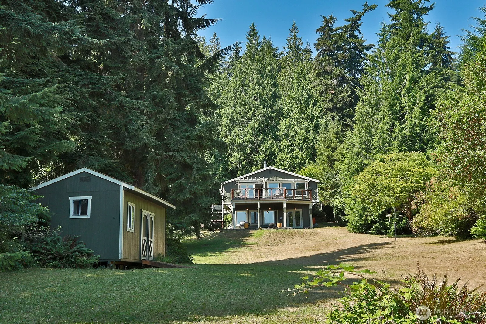 Escape to your private oasis and experience tranquillity on 2+ acres, close to the ferry, winery and downtown Langley. The elevated building captures a partial view of the sound and mountains. A composite view deck for relaxing and a large private deck with a hot tub in the back. An open concept floor plan, slate floors, skylights and a new Lopi fireplace with slate surround. Spacious kitchen for the cook. Downstairs is a small living room with a kitchen, bathroom, king-size bed and fireplace. Possible MIL. French doors lead you to a patio and an expansive yard with a garden shed. The yard is partially fenced.