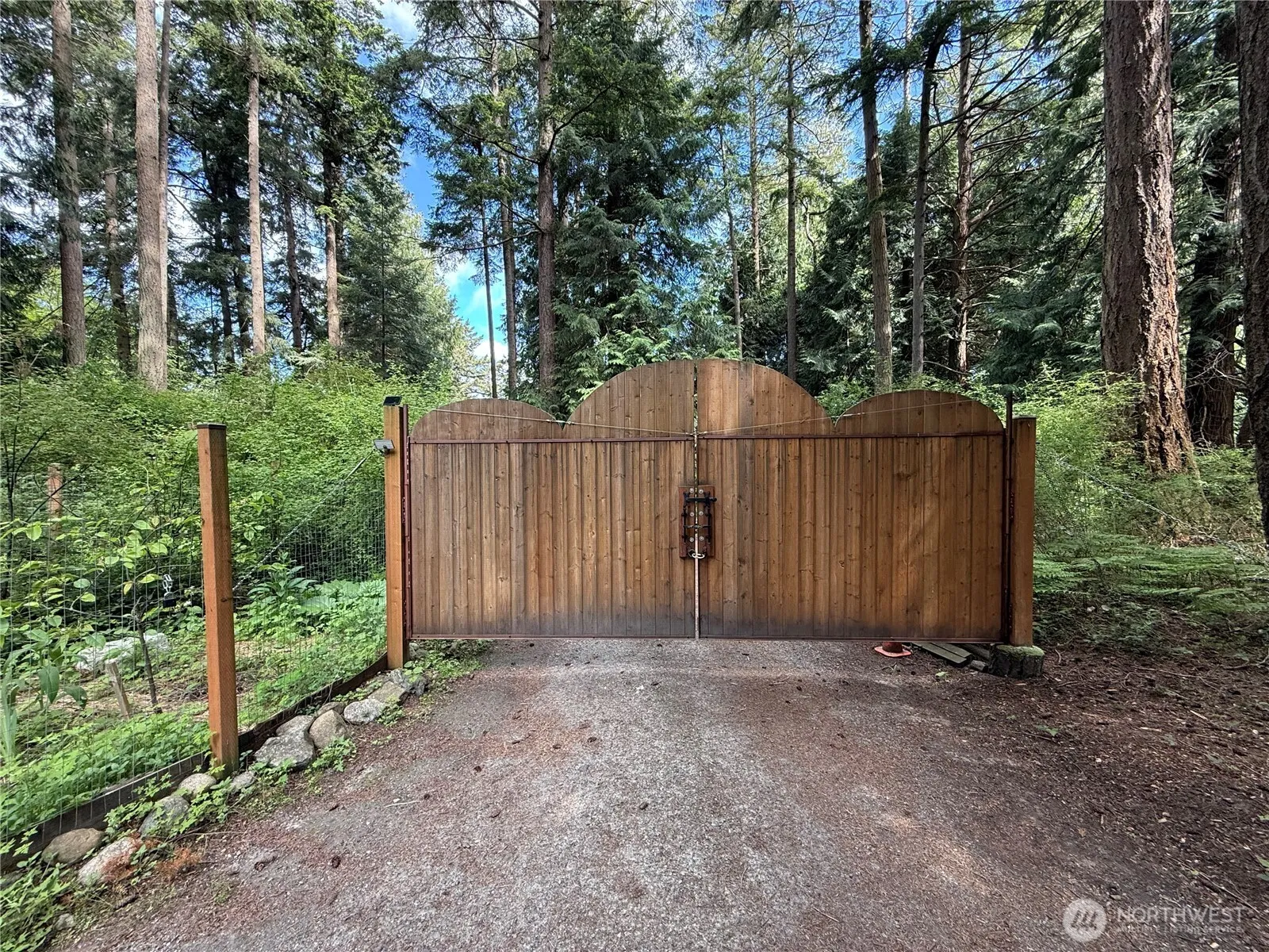 Nestled among the cedars just one lot from the shoreline lies a very special 3BD/2BA retreat. Situated on 1.5 acres of mature forest near Eastsound is a home with nature paths, a pond, water feature, garden & orchard. This private & gated oasis features multiple outbuildings, including a music studio, meditation library, workshop/carport, garden shed & water tanks with pump for gardening. Beautiful engineered hickory flooring, knotty pine interior doors, pine moldings & trim bring warmth & richness to the homes interior. Expansive decks allow appreciation of nature to its fullest. From the 40′ deck built atop the workshop you will enjoy views of Sucia Island by day and stargazing at night. New roof 2022. Deeded access to cliff/shoreline.