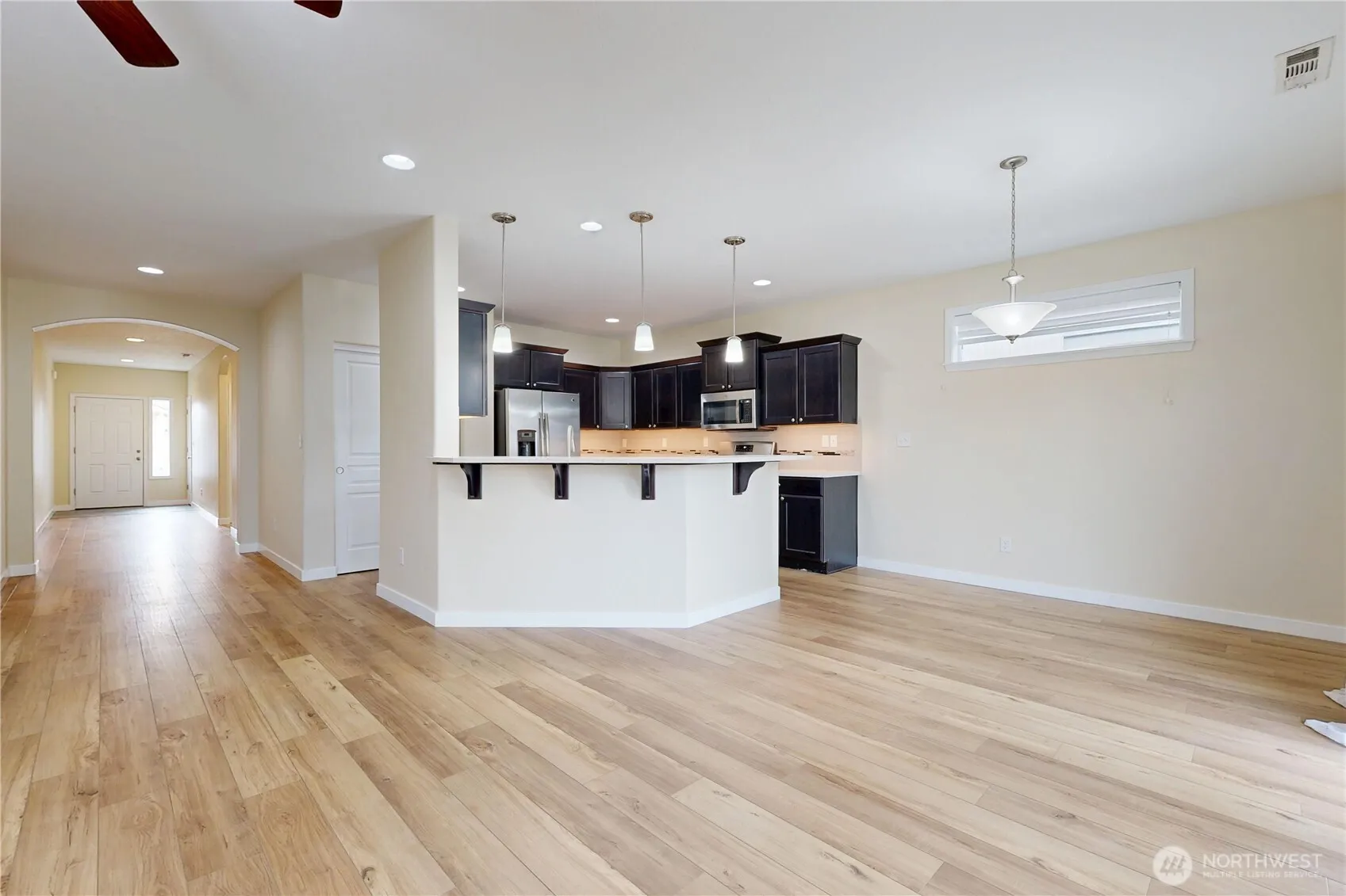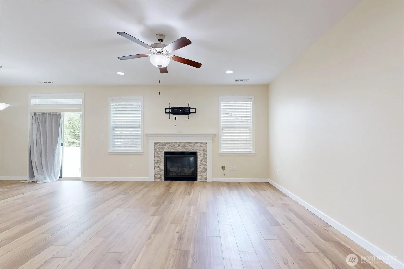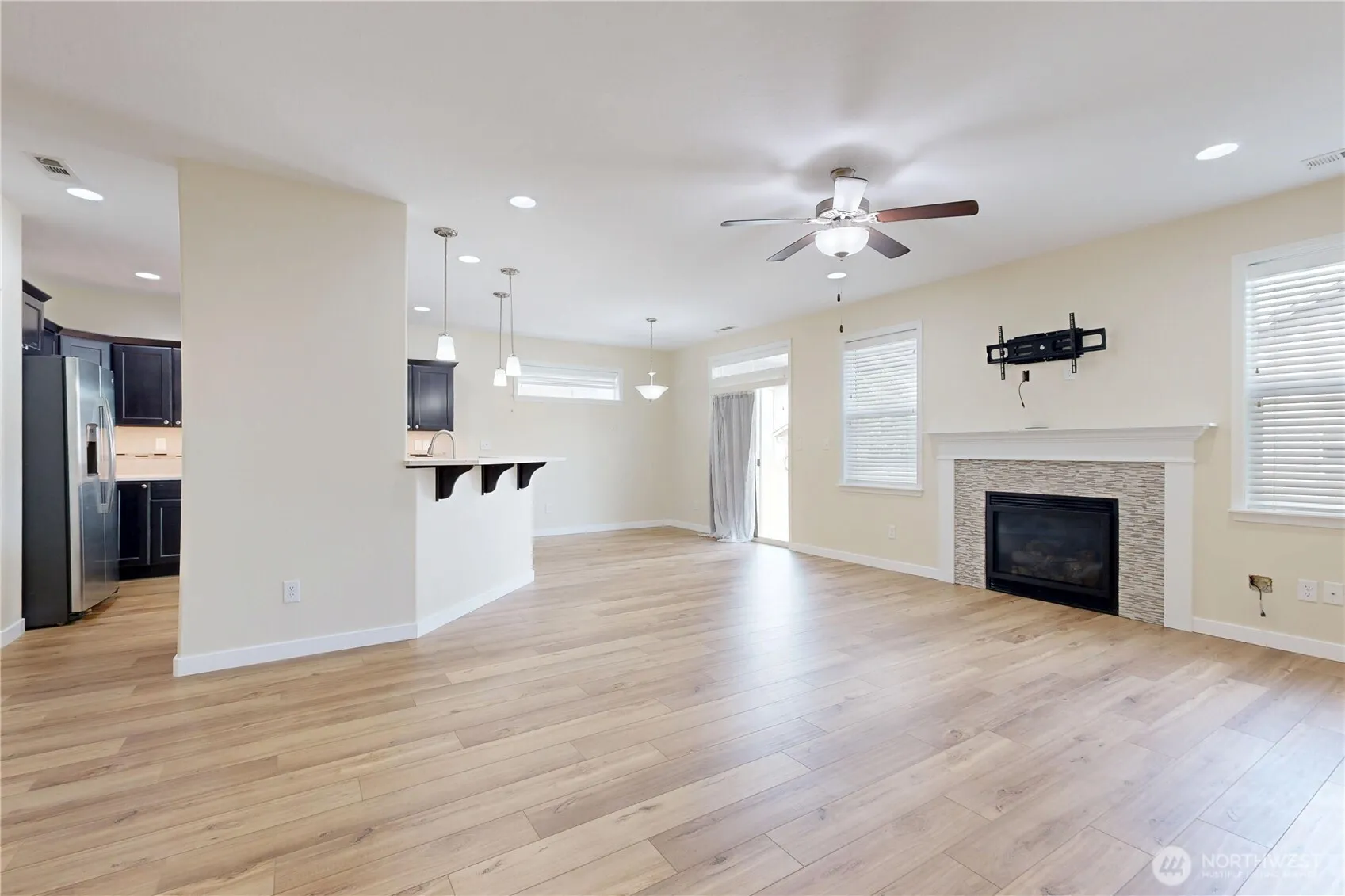 Welcome to The Homestead community. This is one of the larger three bedroom, two bathroom homes in this completely established neighborhood. Enjoy the walking trails and nearby schools. Light wood floors and solid surface countertops in the kitchen make for easy cleaning. Primary bedroom with ensuite bathroom and walk in closet on one end of the home and two bedrooms and full bathroom on the other end of the home. Cozy up in the living room with gas fireplace. The fully fenced backyard and covered patio make it a great place for a BBQ or to keep your furry ones safe.