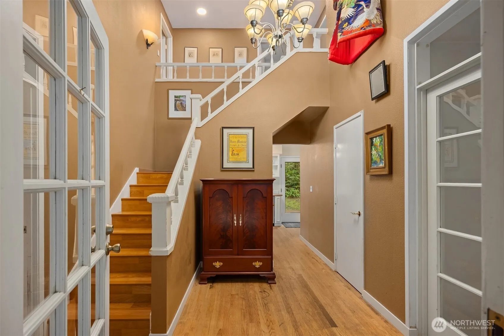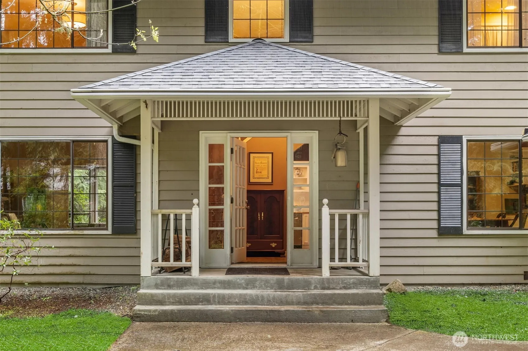 This is the home you have been waiting for! Traditional layout with circular floor plan, oversized family/living room, and three bedrooms on the second floor including one with ensuite bathroom. Large laundry room includes plenty of storage and deep sink. In addition to a powder room, there is a ¾ bathroom on the main floor adjoining a 600 square foot studio with French doors to back yard. The house is sited on a 0.53-acre level lot and is one of five properties that share 3.43 acres of open space, making for great privacy for each home. Less than a mile to 90-acre Battle Point Park and access to an amazing trail system, plus nearby shoreline access off Olympus Beach.