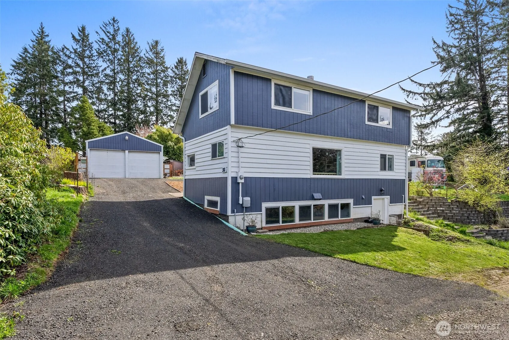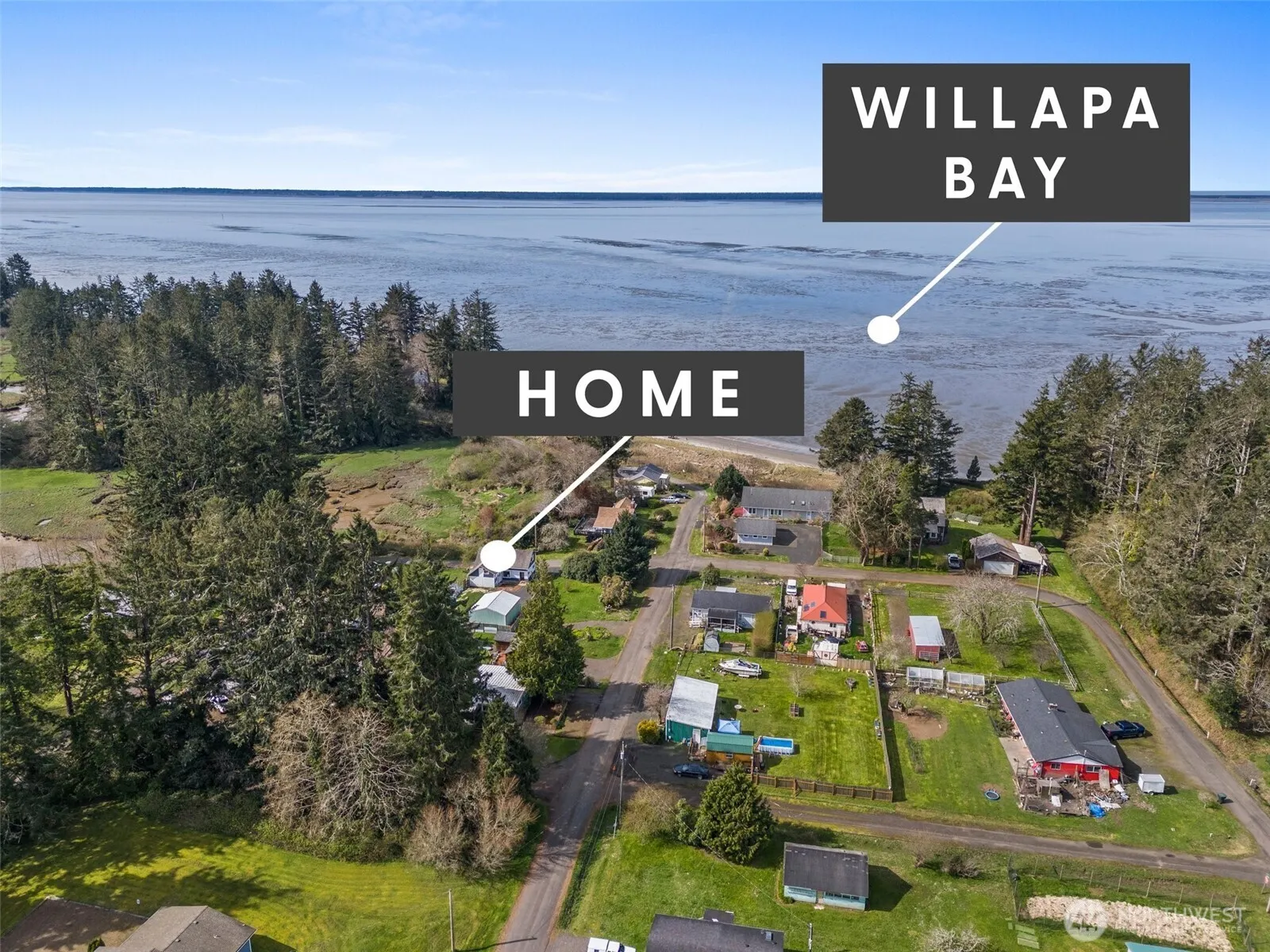 Discover this inviting two-story home nestled in Bay Center, just moments from the water. A block away enjoy walking to trails directly to the beach. Partial bay views and peaceful surroundings. The main floor features a bedroom, full bath with shower/tub combo, and a kitchen with abundant storage and breakfast nook. A cozy wood stove warms the living area with rustic charm. Upstairs offers a second bedroom, and a bonus room with plumbing for a potential half bath, and a large storage area. The unfinished basement adds flexible space for storage or future plans. A detached two-car garage and brand-new septic system complete the package. Ideal as a full-time residence or a peaceful coastal escape.