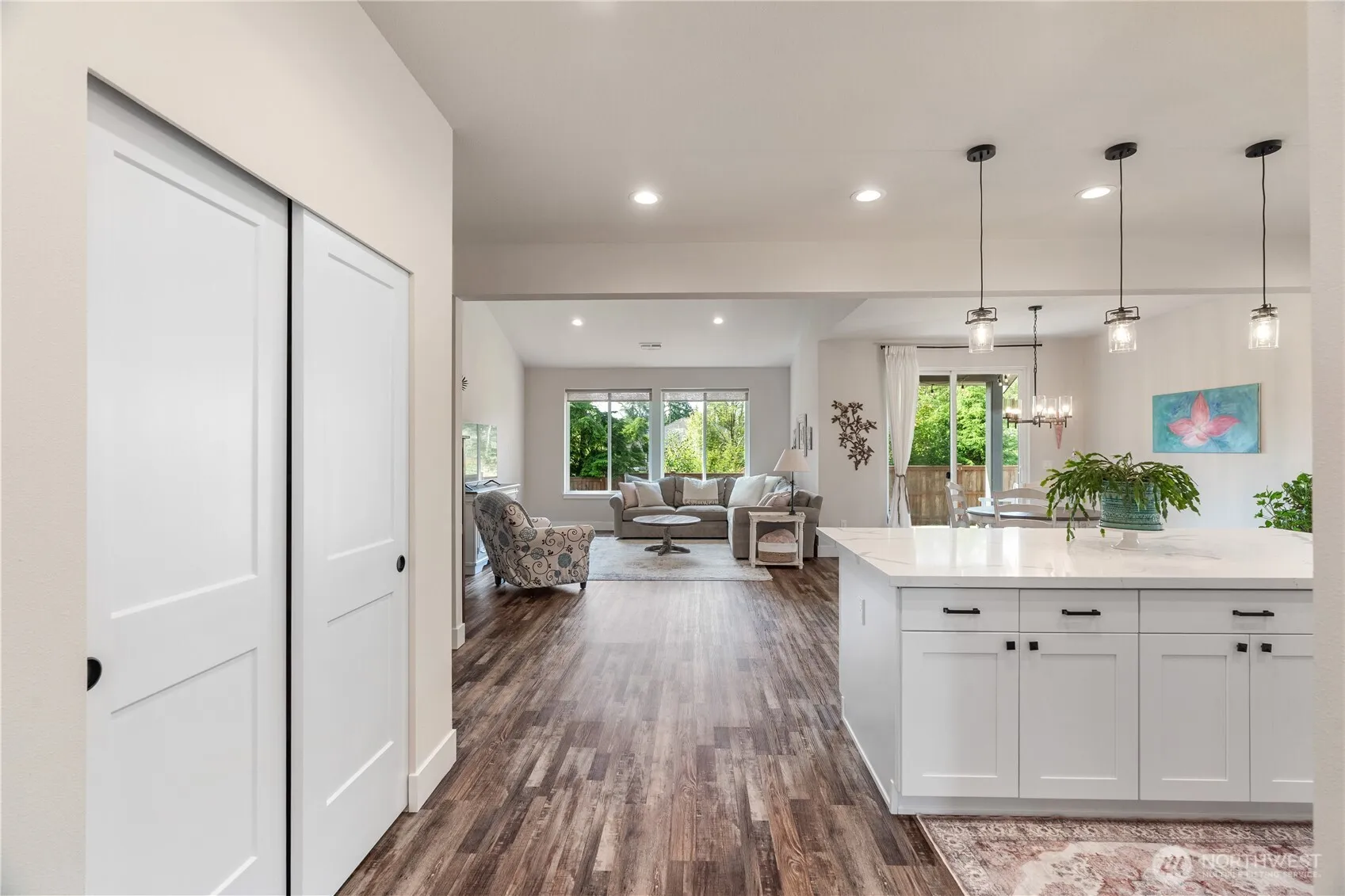 Your perfect home awaits! This stunning 3-bed, 2-bath residence offers 1,732 sq. ft. of beautifully designed living space on a spacious 11,761 sq. ft. lot. 8 ft doors welcome you into the open-concept layout, that flow seamlessly from the spacious living area with LVP Flooring, to the beautiful kitchen, complete with quartz countertops, SS appliances, soft-close white cabinetry, pantry and a generous island perfect for entertaining. Retreat to the expansive primary bedroom, complete with an en-suite featuring a separate soaking tub, walk-in shower, and spacious walk-in closet. Enjoy outdoor living on the patio overlooking a fully fenced backyard, ideal for pets or quiet evenings. With modern comfort, timeless finishes, and spacious layout!