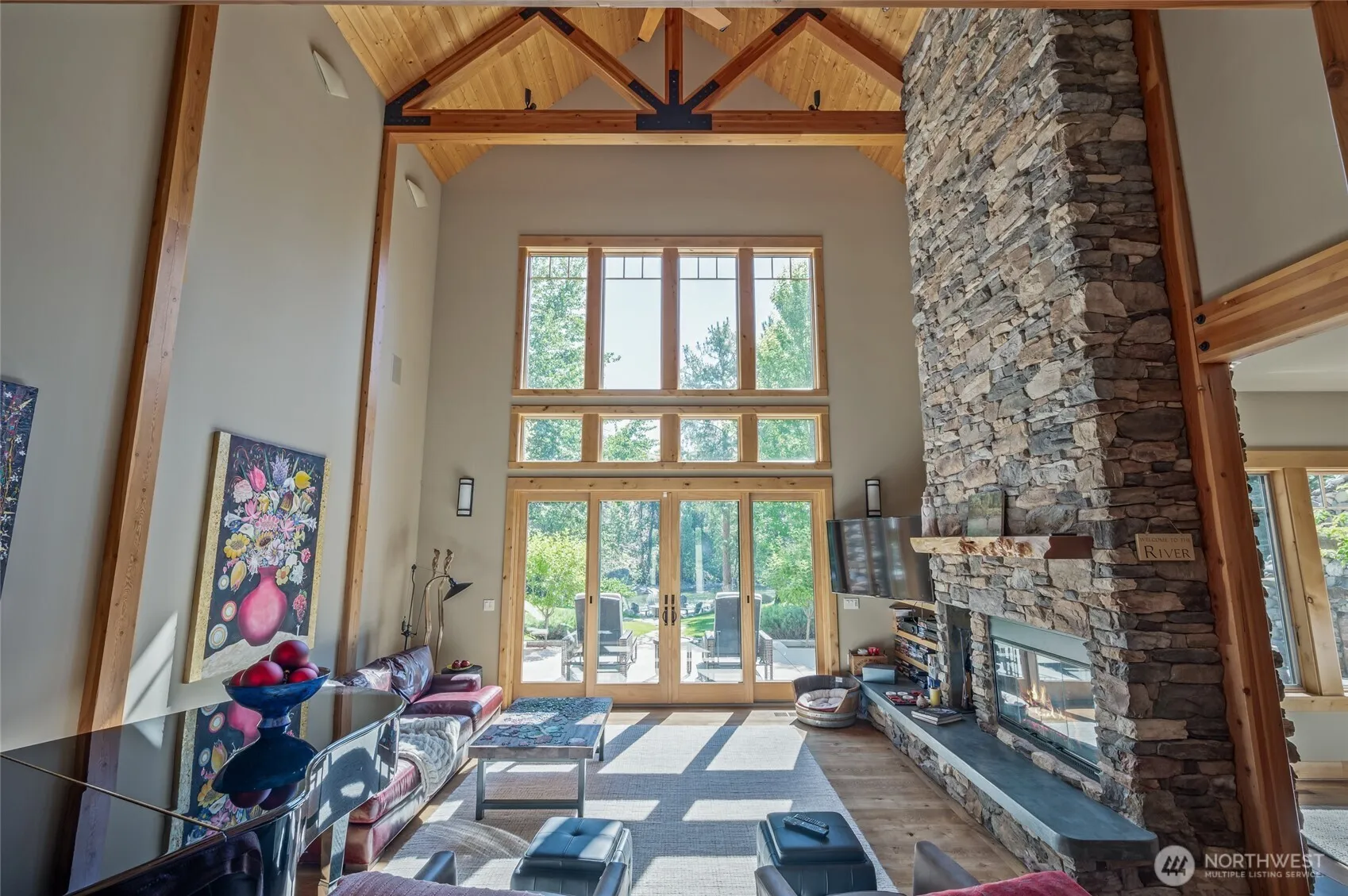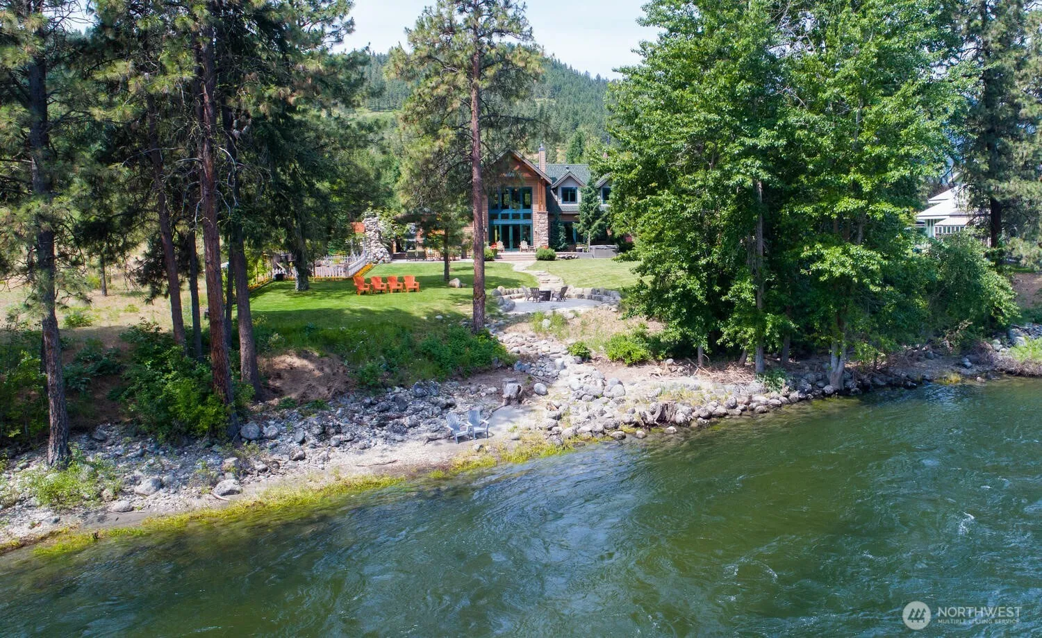Situated along the serene Wenatchee River, this exceptional retreat offers timeless elegance and natural beauty. Soaring 28′ vaulted beams and a stunning floor-to-ceiling rock fireplace anchor the great room, accompanied by a dramatic wall of windows that invite in breathtaking river views. The custom gourmet kitchen is a chef’s dream, while the loft den provides a peaceful perch overlooking the water. Outdoors, enjoy a rare peony garden, organic grapes, blueberries, and raised beds for herbs and tomatoes. Gather around the stunning outside stone and basalt fireplace or the riverside firepit, perfect for entertaining. 2 full-service RV pads. 1040′ garage for your projects. A true sanctuary where refined living meets riverfront charm.