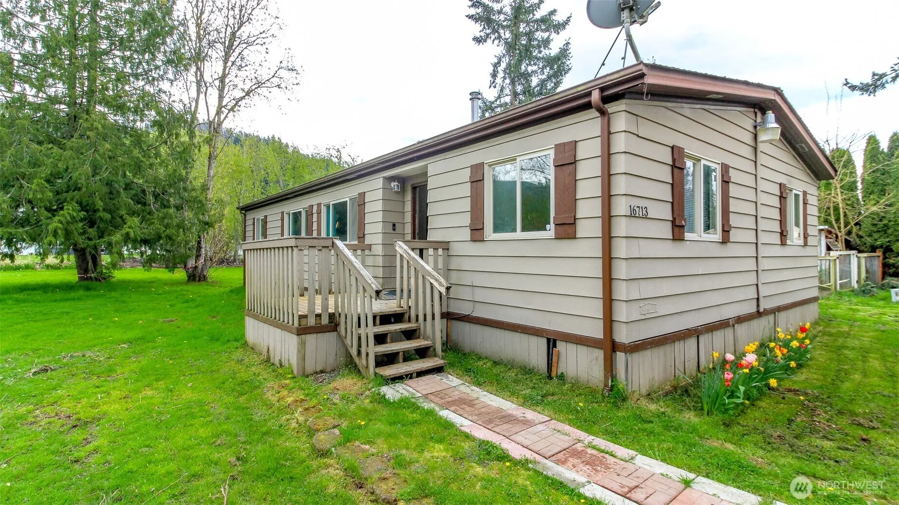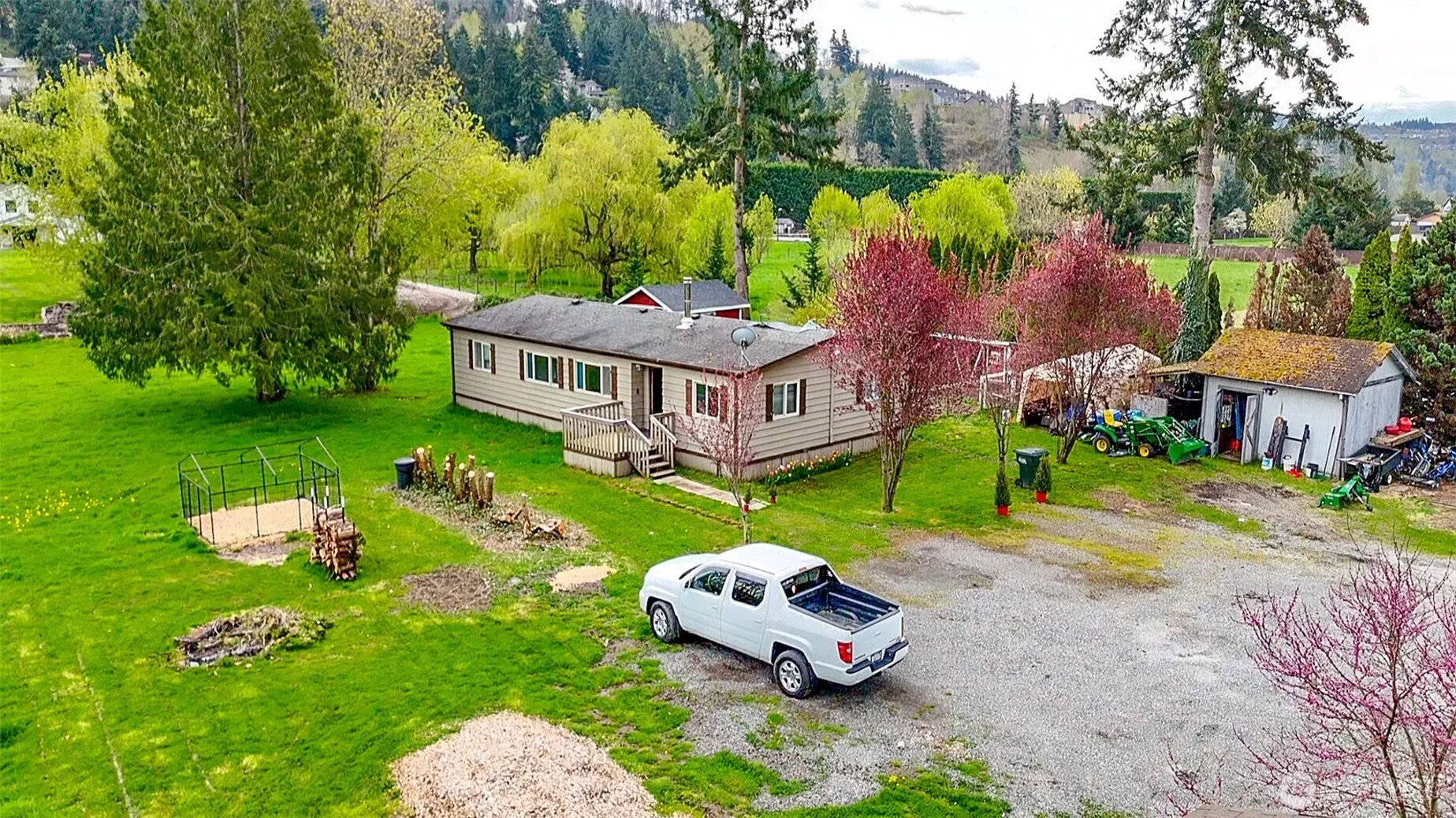 RARE FIND – Double Wide Mobile Home On It’s Own Valley Level Land Of 1+ Acre. Located Minutes From Downtown Sumner, Hwy’s 410, 167, & Sounder Transit. Features Include A Detached Lighted Studio / Hobbyist Bldg, Peek A View Of Mt Rainier, Partially Fenced, Fruit Trees, Garden & RV Parking Spaces Plus External Storage Sheds. Thinking ADU, A Large Shop, Or Building A New Home? Build While Living In The Mobile. Buyers Urged To Confirm Any New Construction Plans With Pierce County Before Building. Relax in a Rural Setting, Around a Fire Pit with Pastures, Fields With Tulips & Daffodils For Neighbors. “Gem” Quality Potential In This Land. Offered As Is !This Is An Opportunity You Need To See ! The John Deere Tractor Is Not A Part Of This Offering